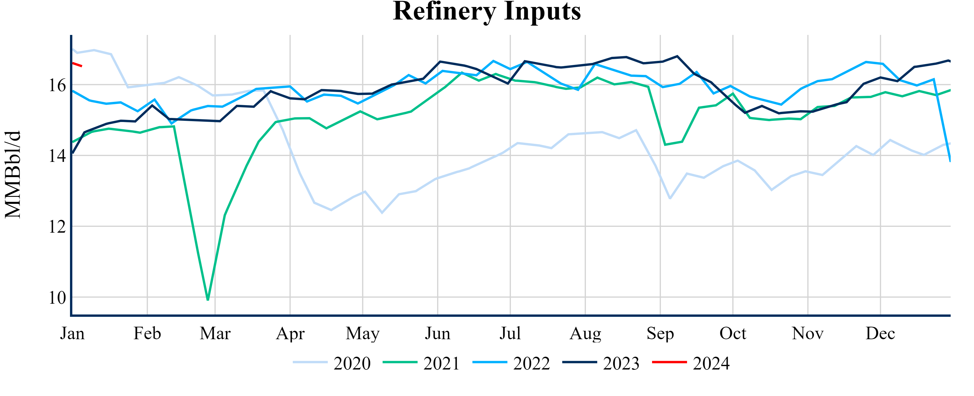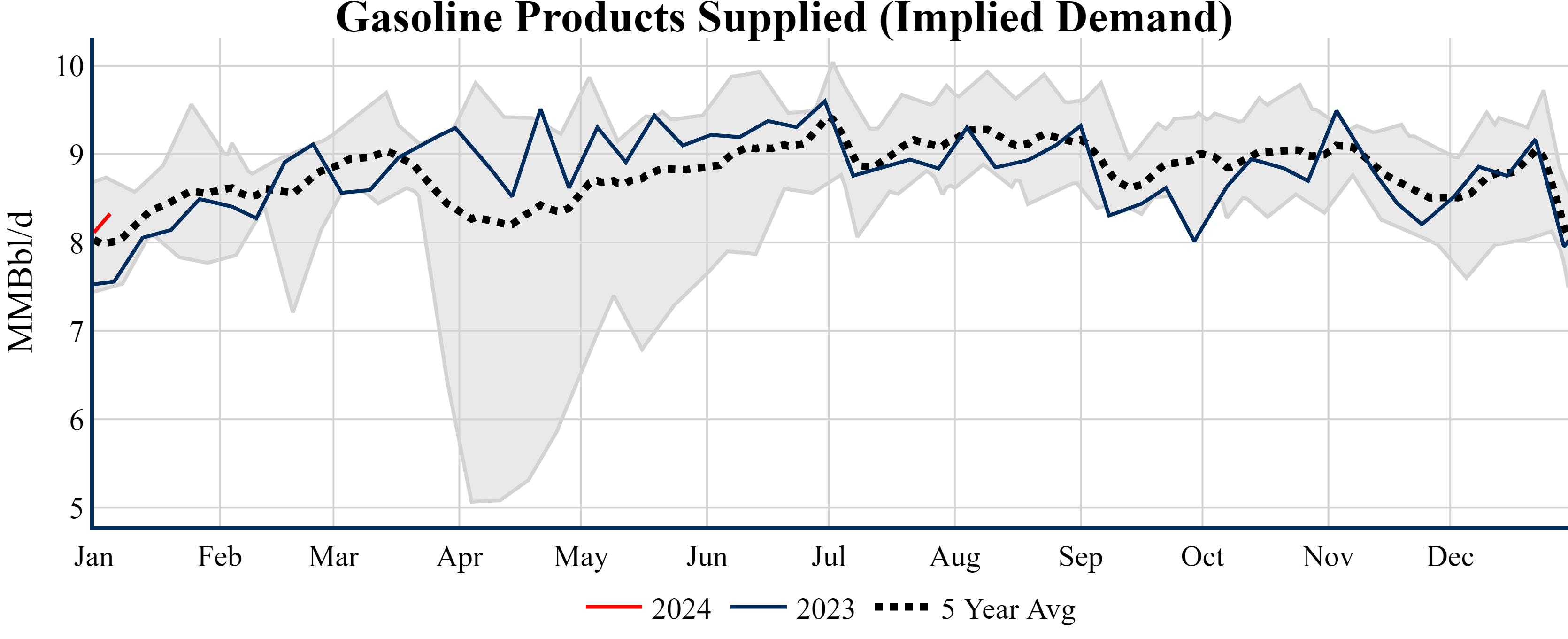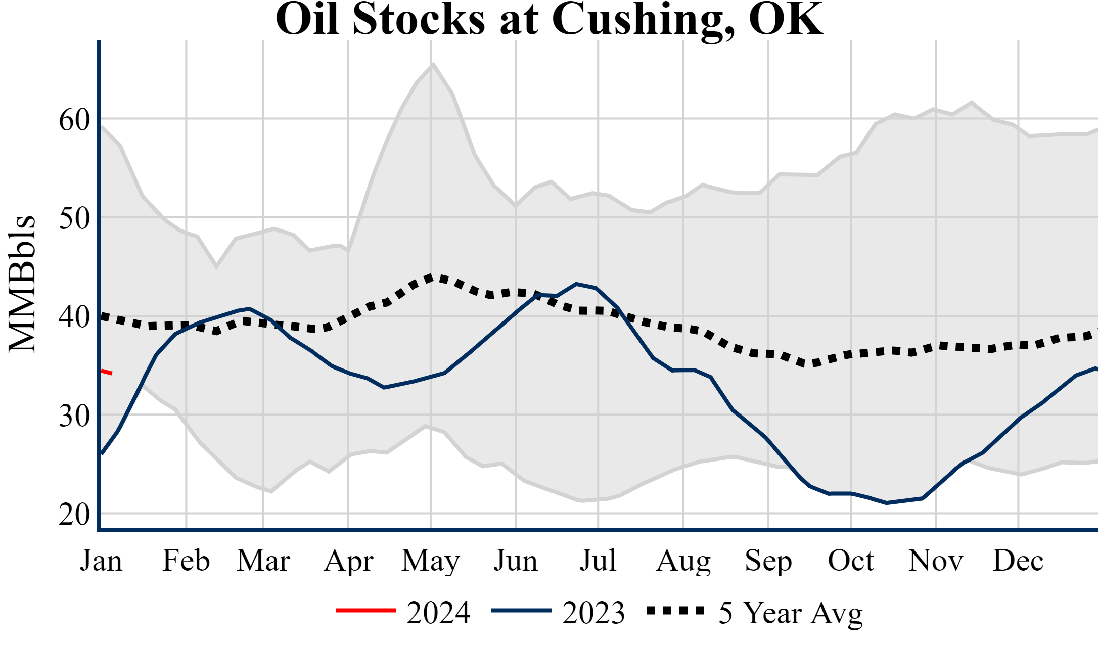 Inventories for the U.S. are now at a deficit of 4.50 MMBbls (-1.0%) to last year, and a deficit of 8.60 MMBbls (-1.9%) to the five-year average.