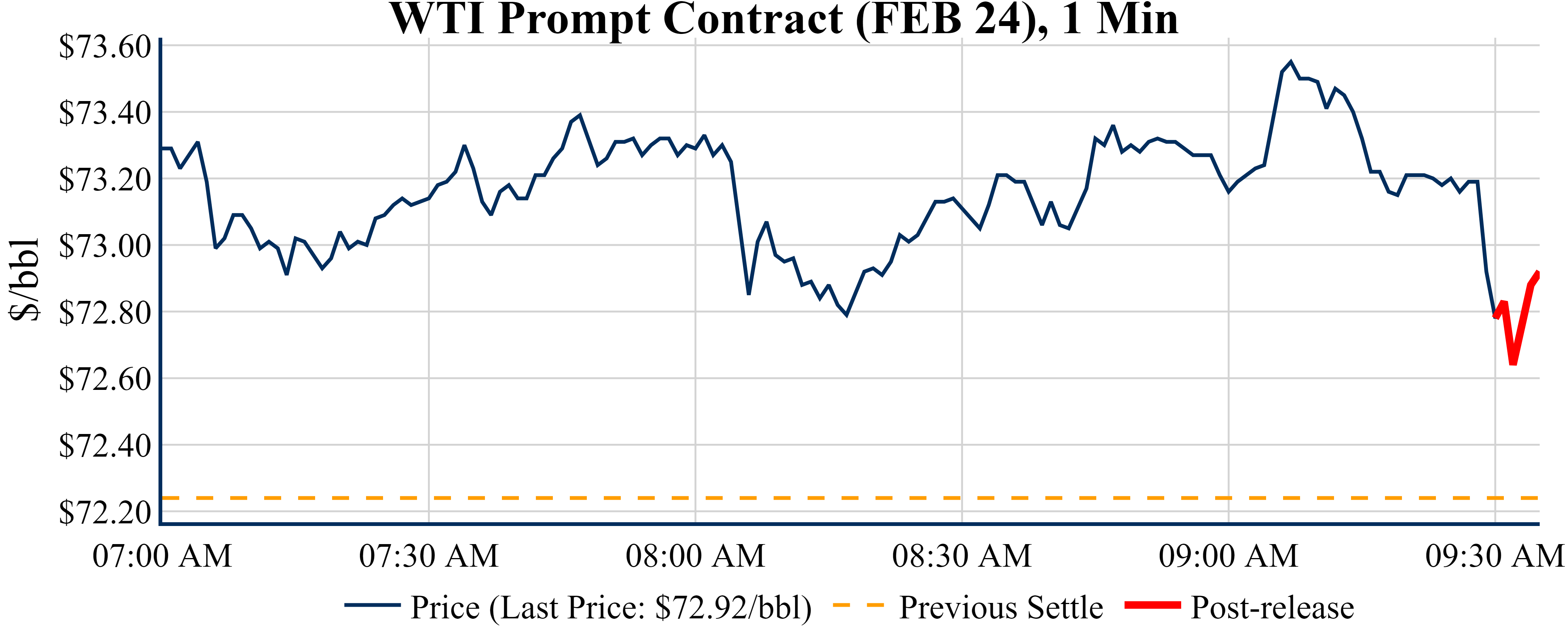 Prices were up in the five minutes following the announcement, to $72.92 from $72.78 just before 09:30 AM.