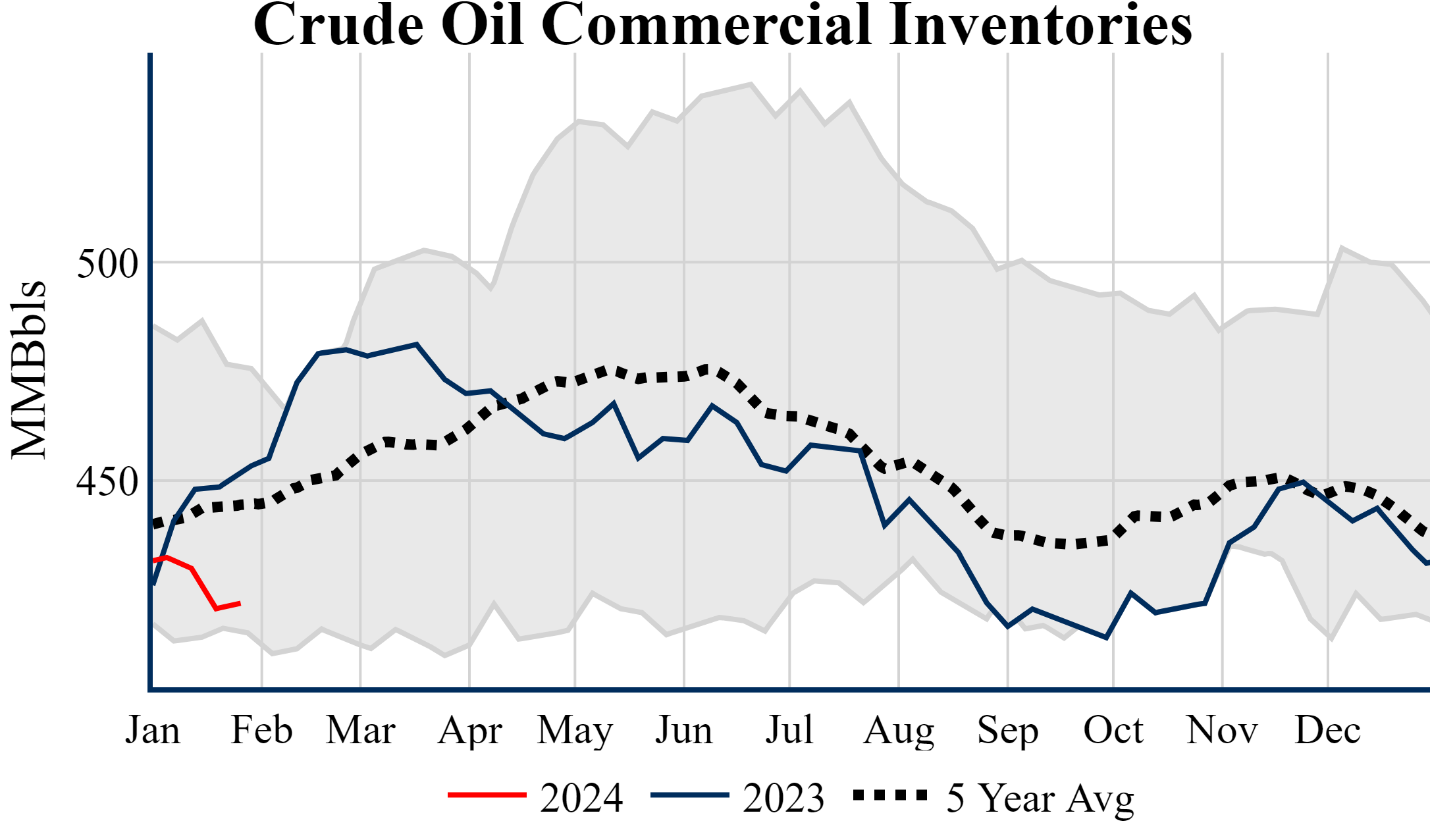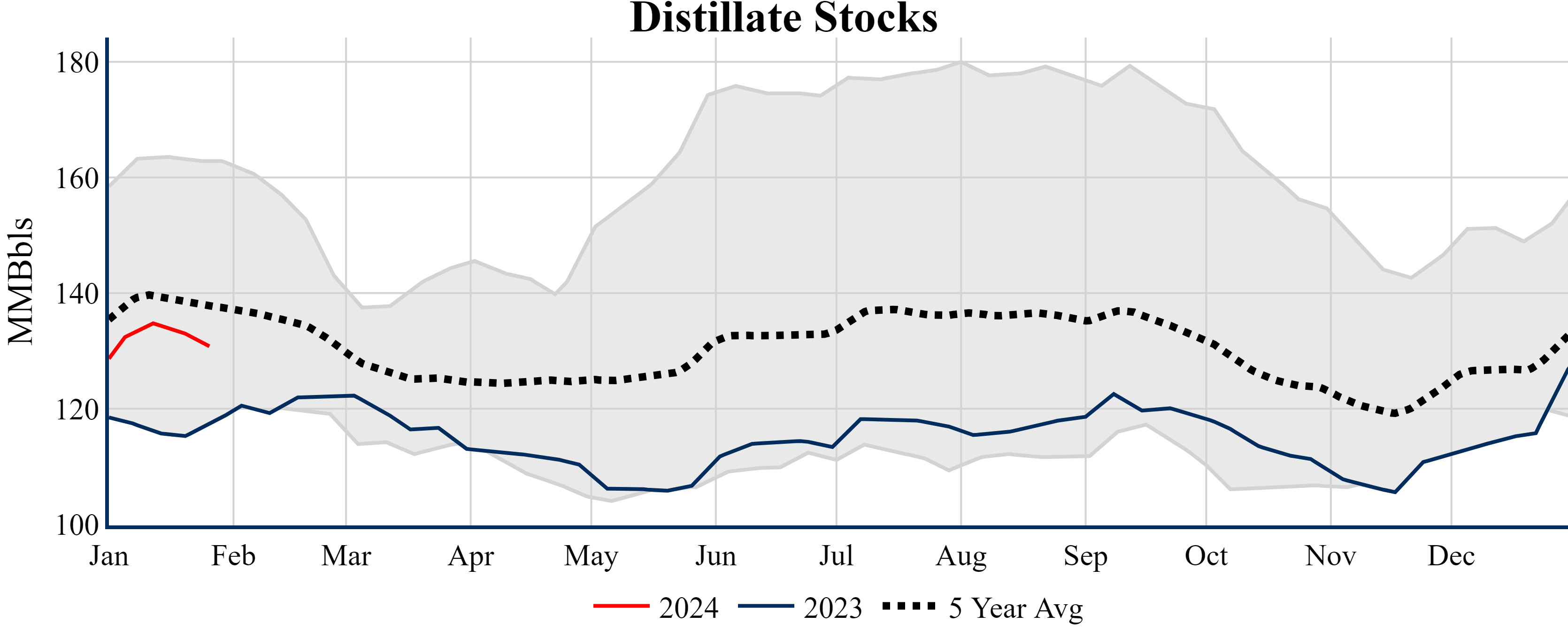 Inventories for the U.S. are now at a deficit of 30.20 MMBbls (-6.7%) to last year, and a deficit of 22.60 MMBbls (-5.1%) to the five-year average.