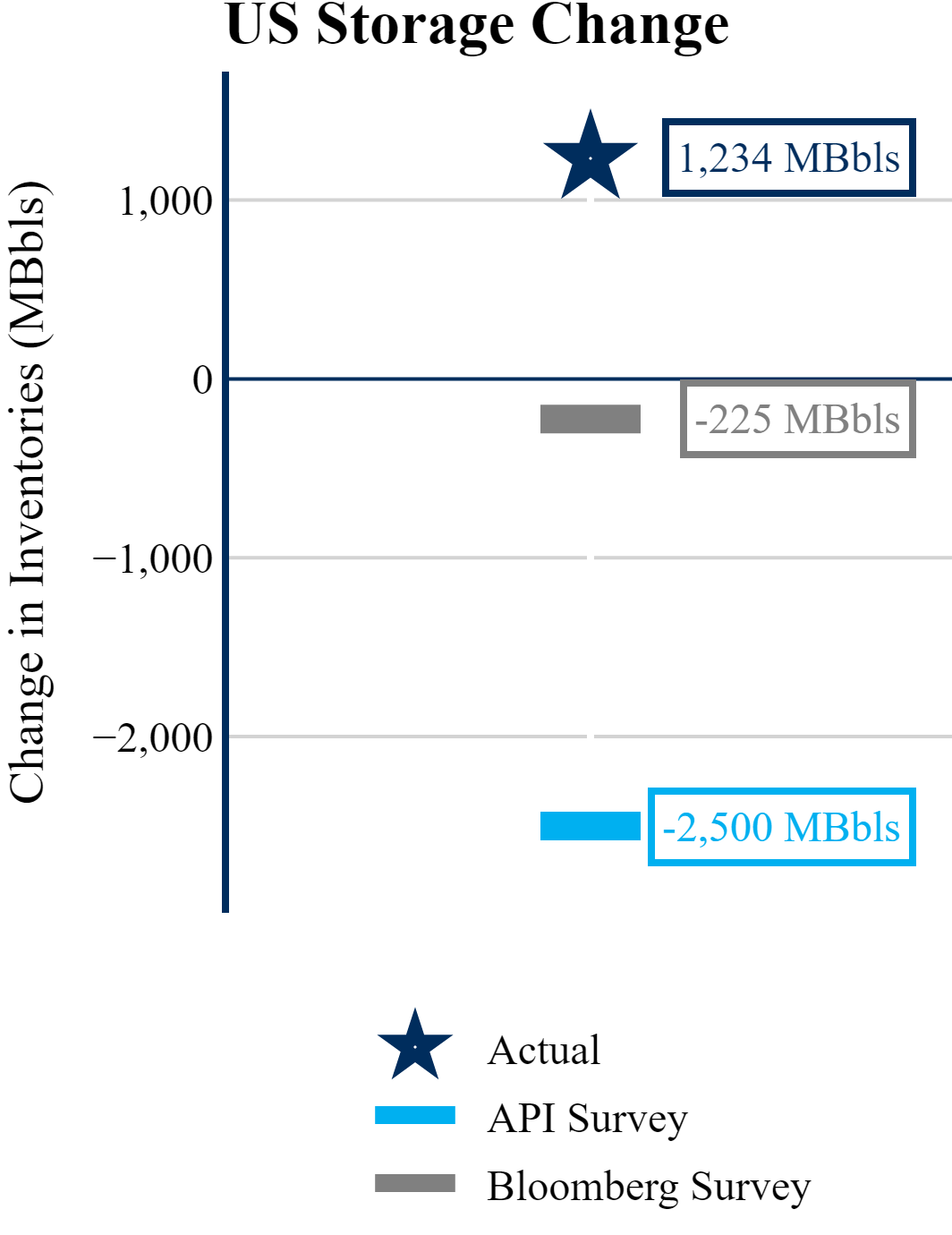 The EIA reported a build of +1,234 MBbls in U.S. crude-oil inventories. In contrast, the market expected a draw of -225 MBbls as reported by Bloomberg.