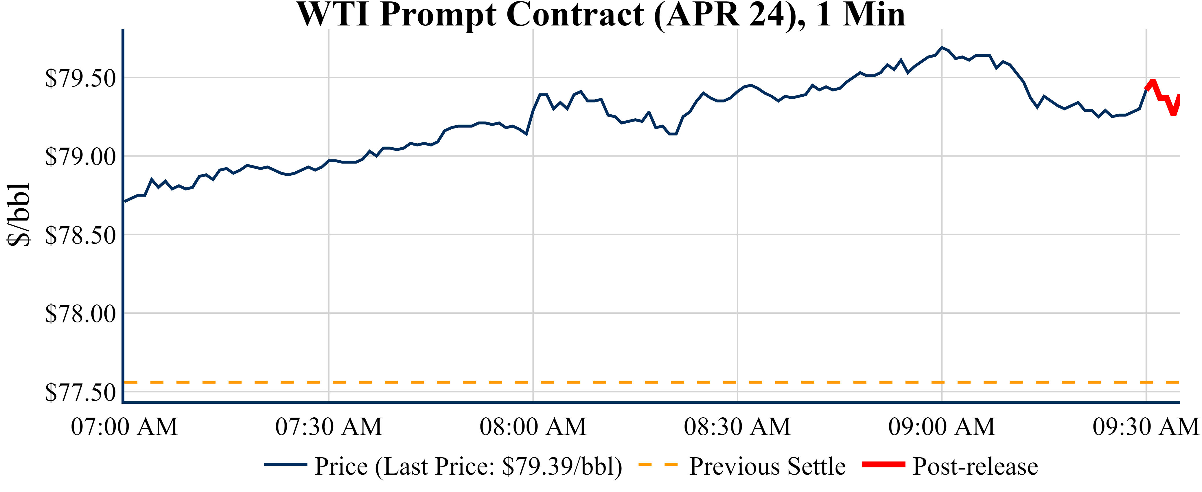 Prices were down in the five minutes following the announcement, to $79.39 from $79.42 just before 09:30 AM.