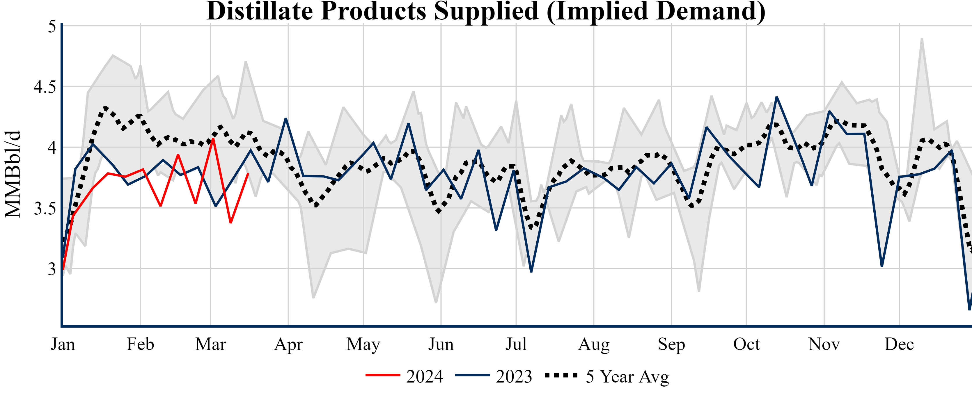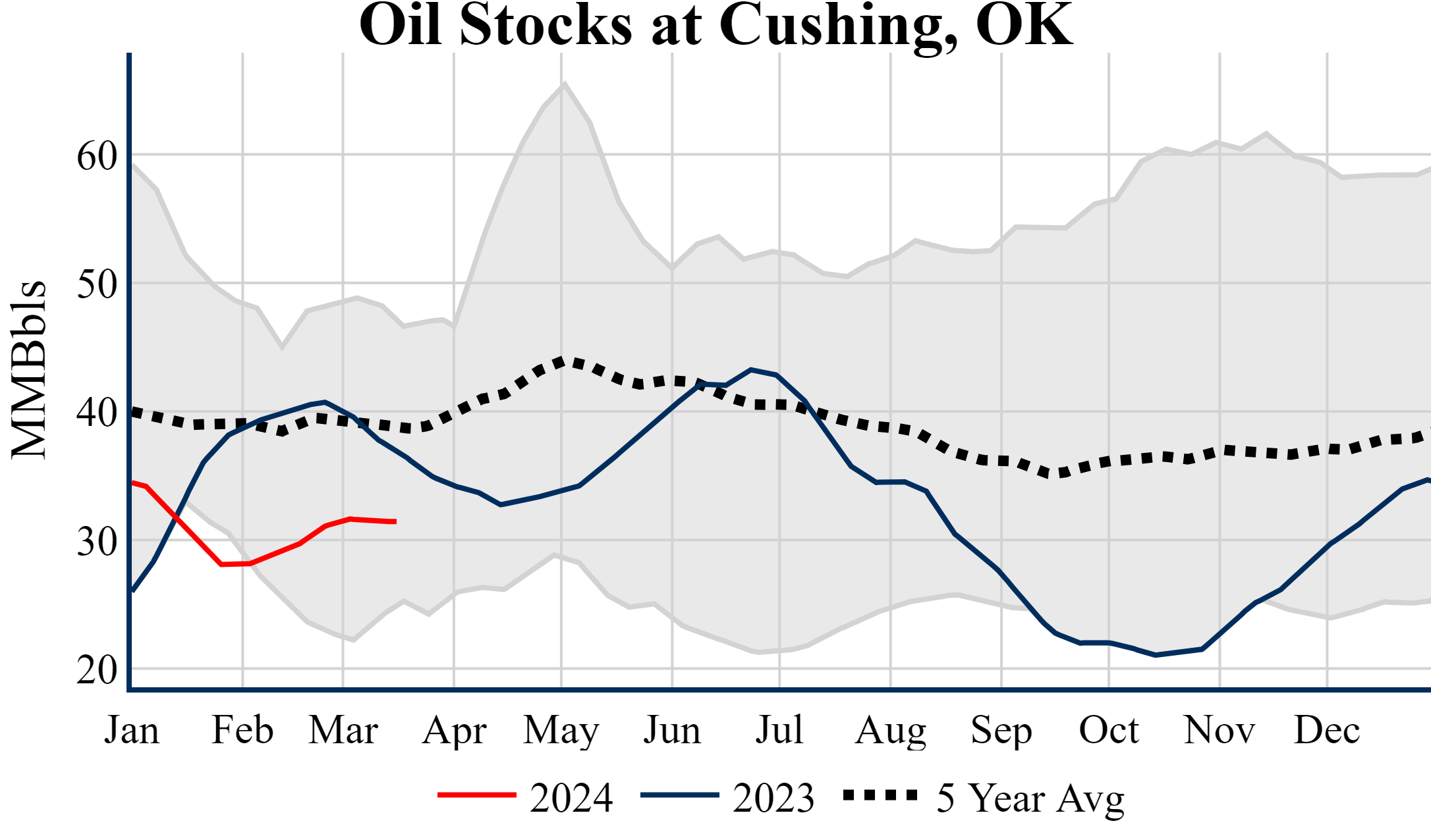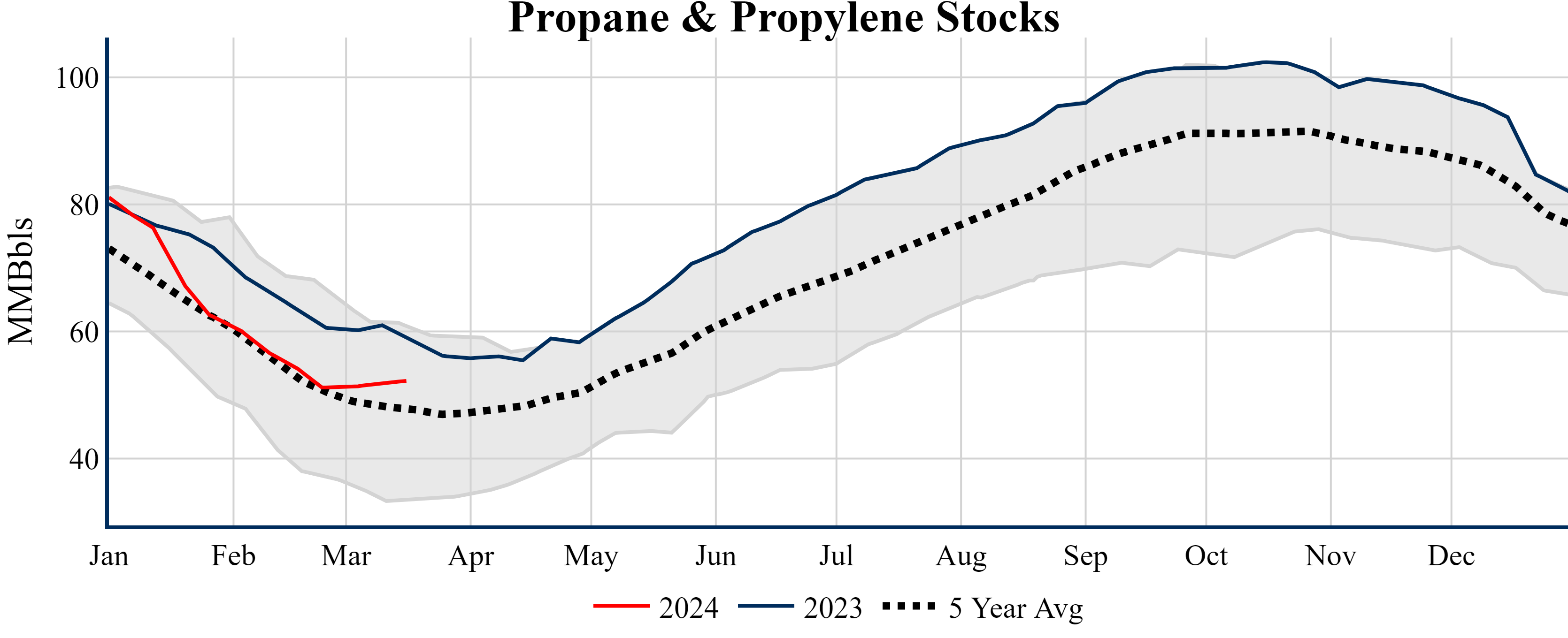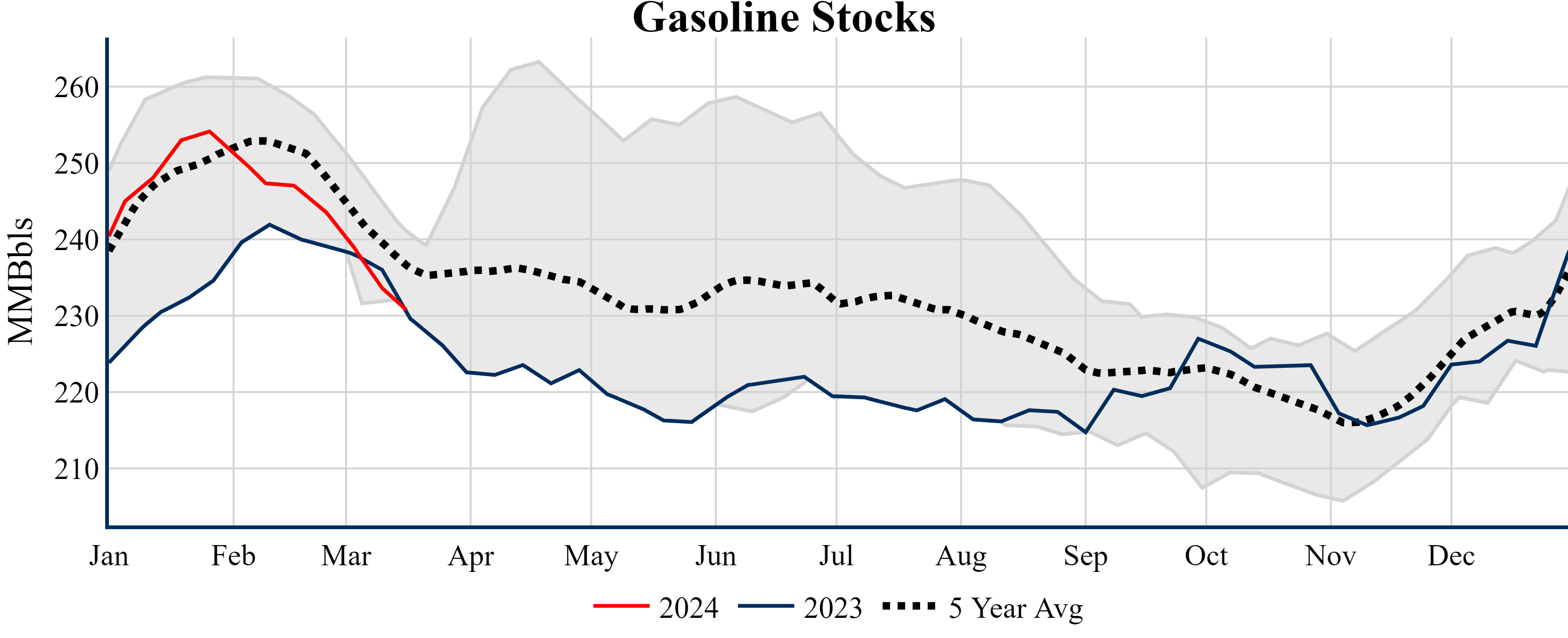 Inventories for the U.S. are now at a deficit of 36.00 MMBbls (-7.5%) to last year, and a deficit of 13.20 MMBbls (-2.9%) to the five-year average.
