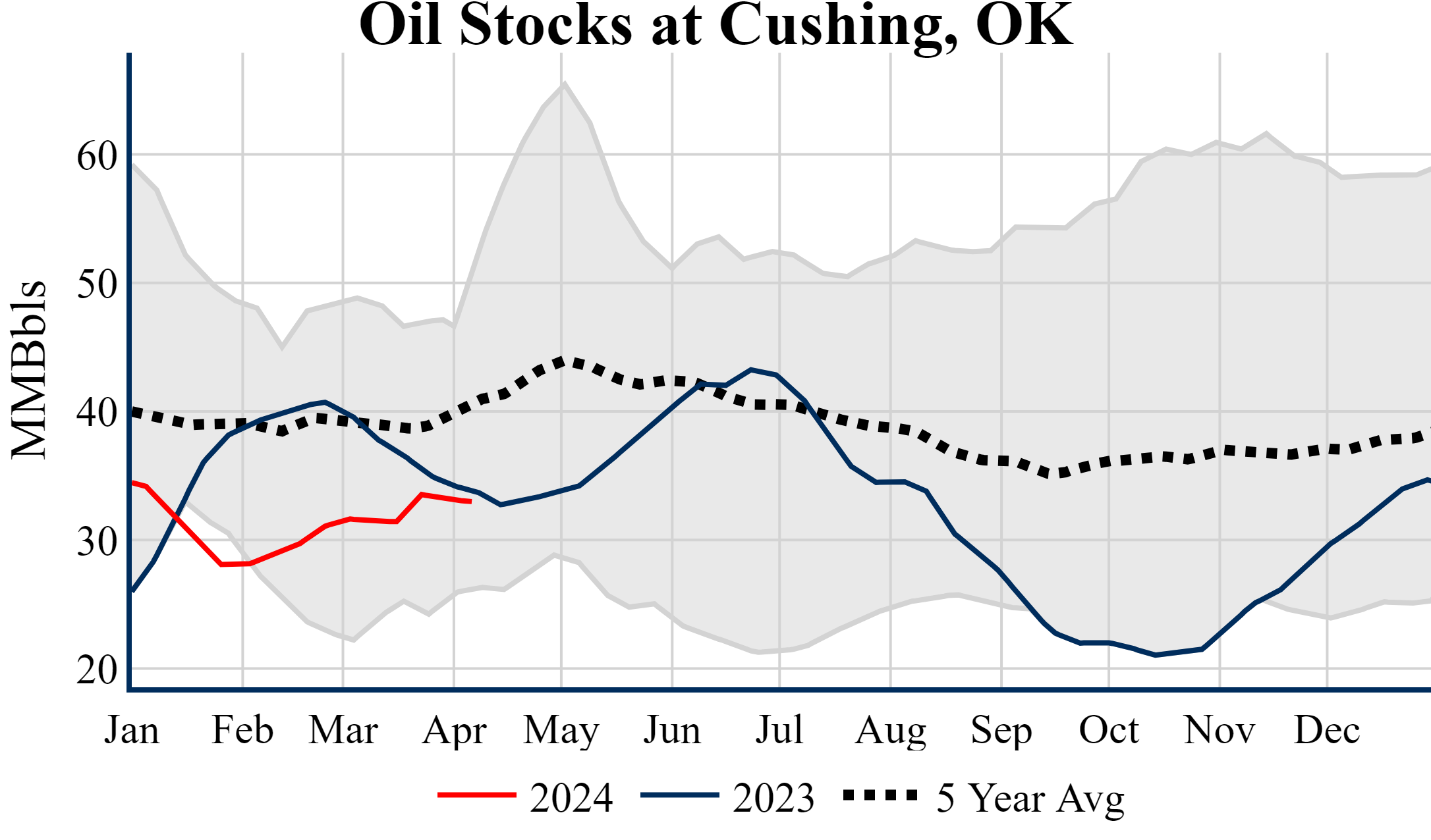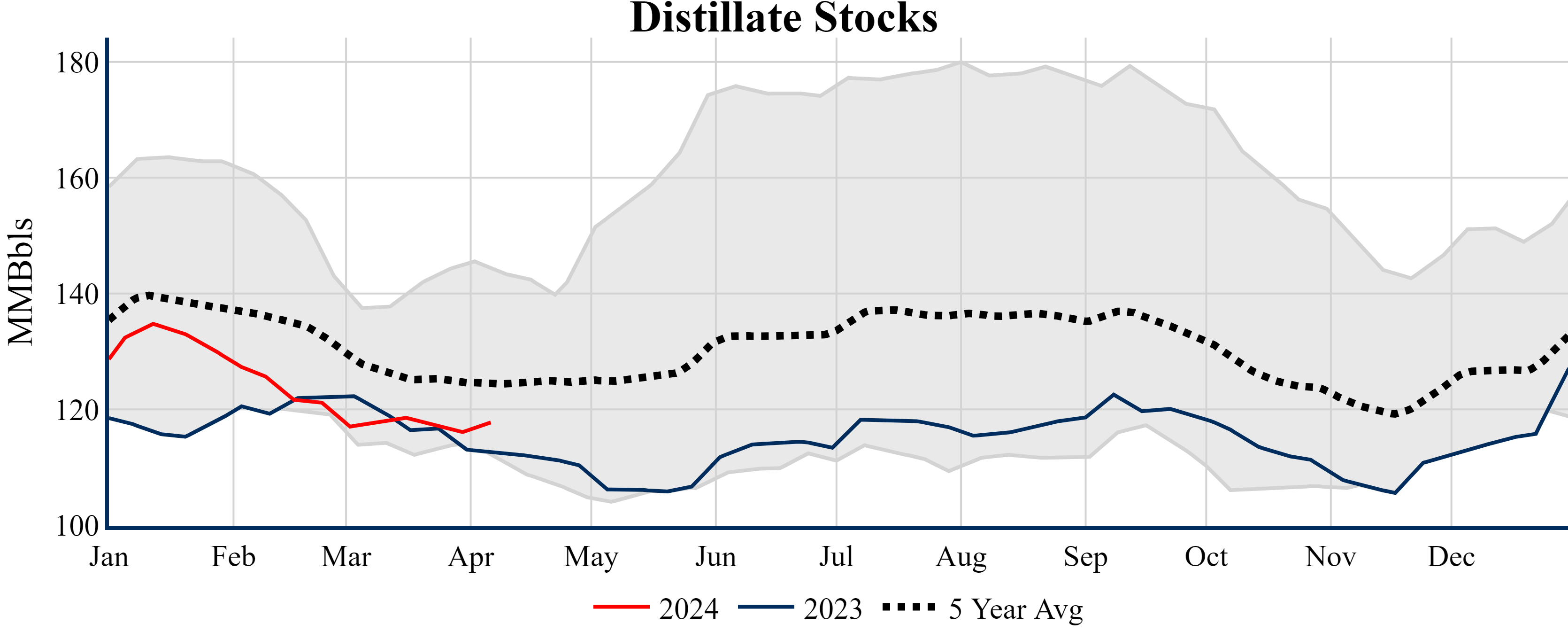 Inventories for the U.S. are now at a deficit of 13.20 MMBbls (-2.8%) to last year, and a deficit of 8.90 MMBbls (-1.9%) to the five-year average.