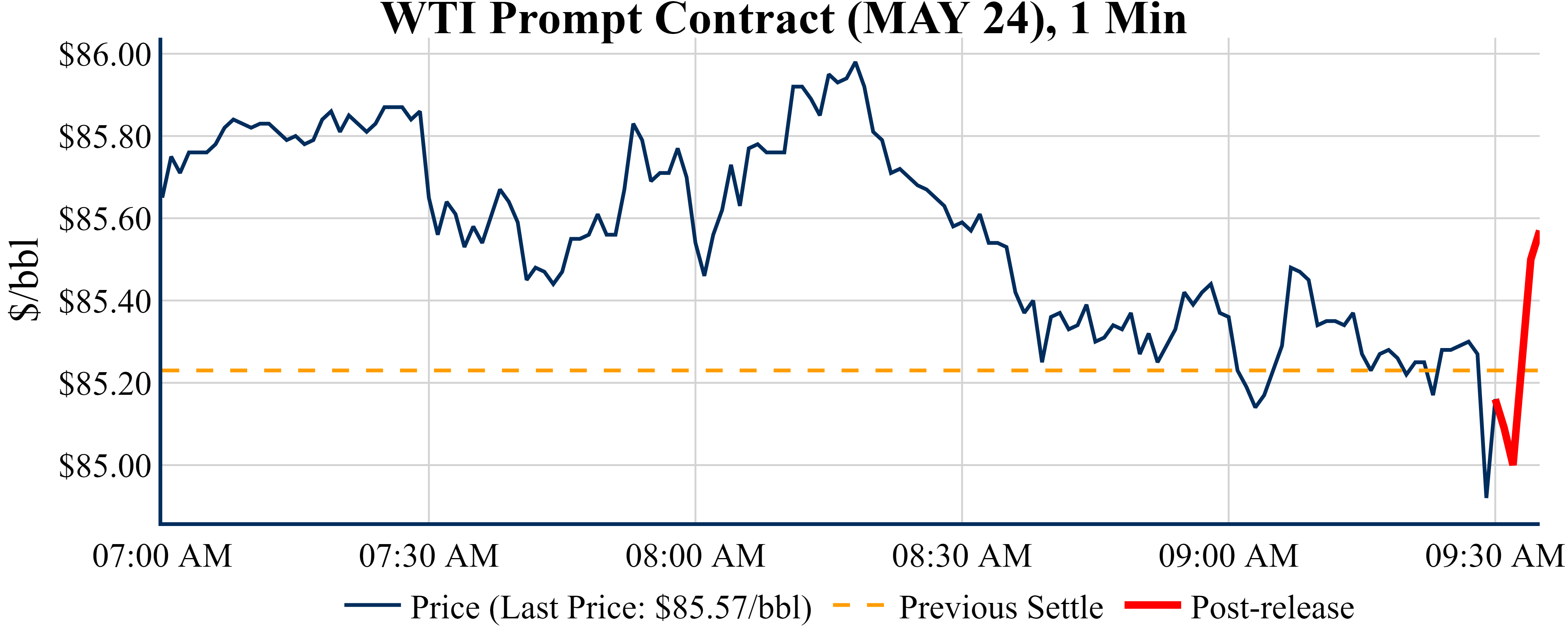 Prices were up in the five minutes following the announcement, to $85.57 from $85.16 just before 09:30 AM.