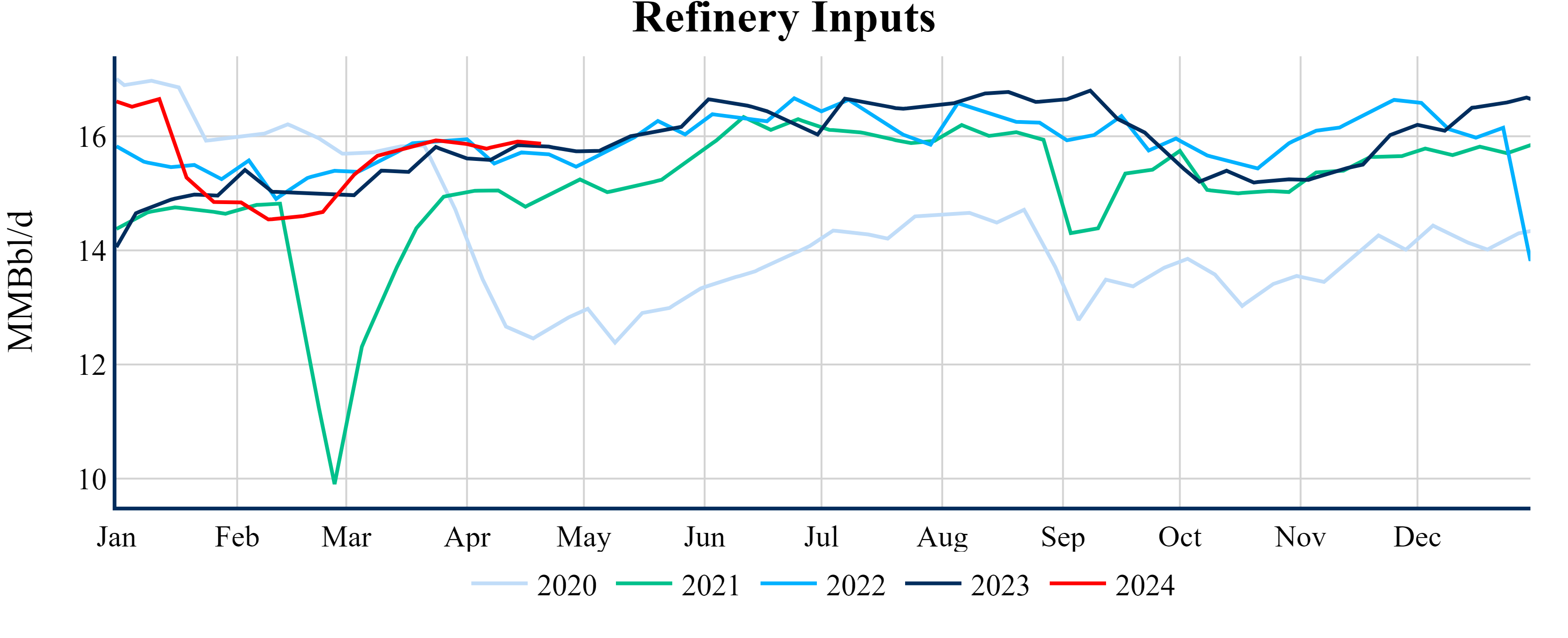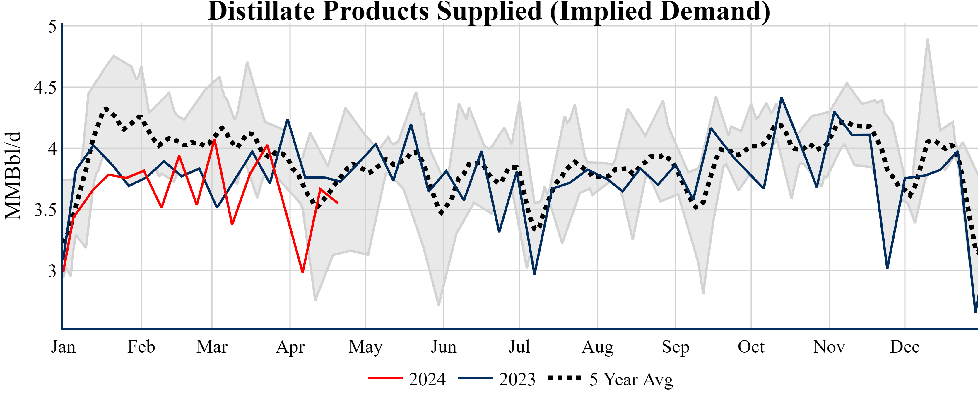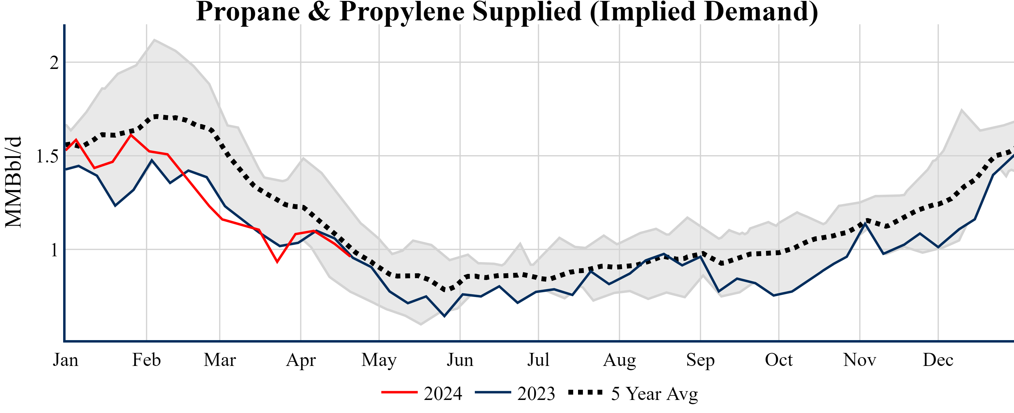 Inventories for the U.S. are now at a deficit of 8.00 MMBbls (-1.7%) to last year, and a deficit of 16.80 MMBbls (-3.6%) to the five-year average.
