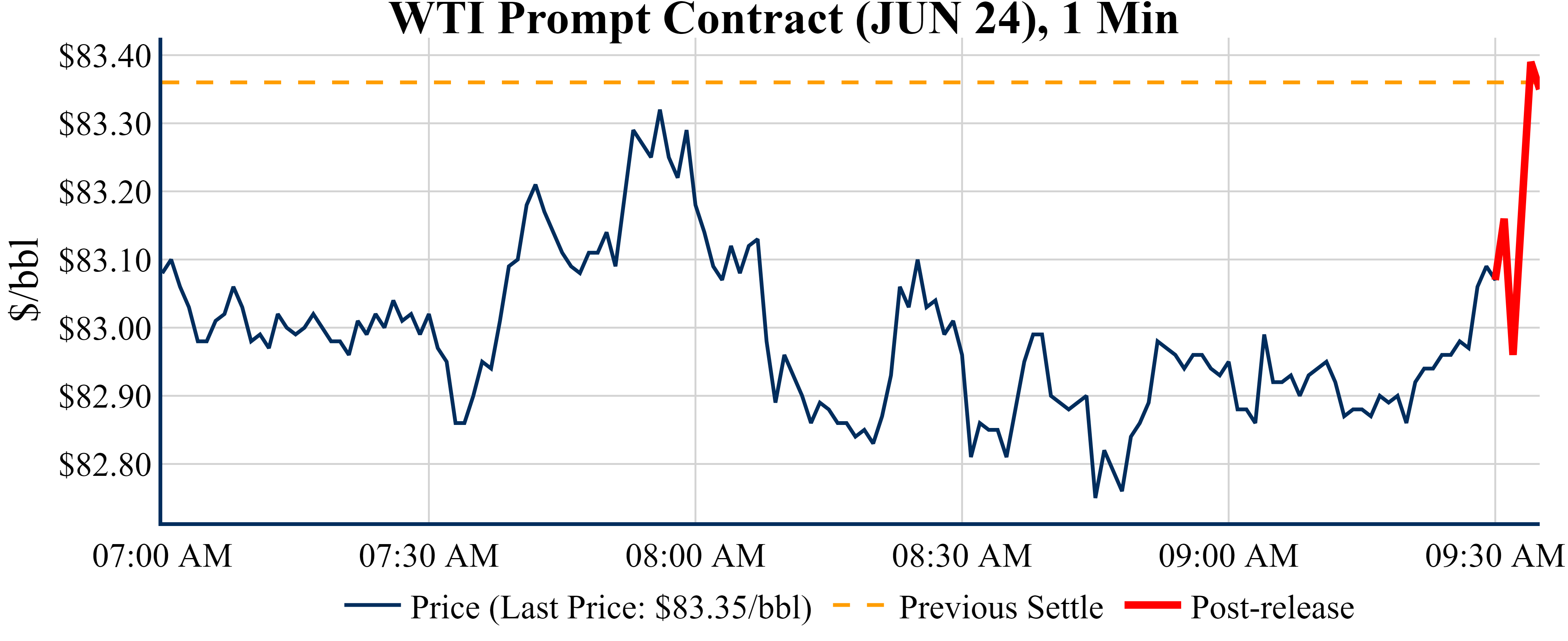 Prices were up in the five minutes following the announcement, to $83.35 from $83.07 just before 09:30 AM.