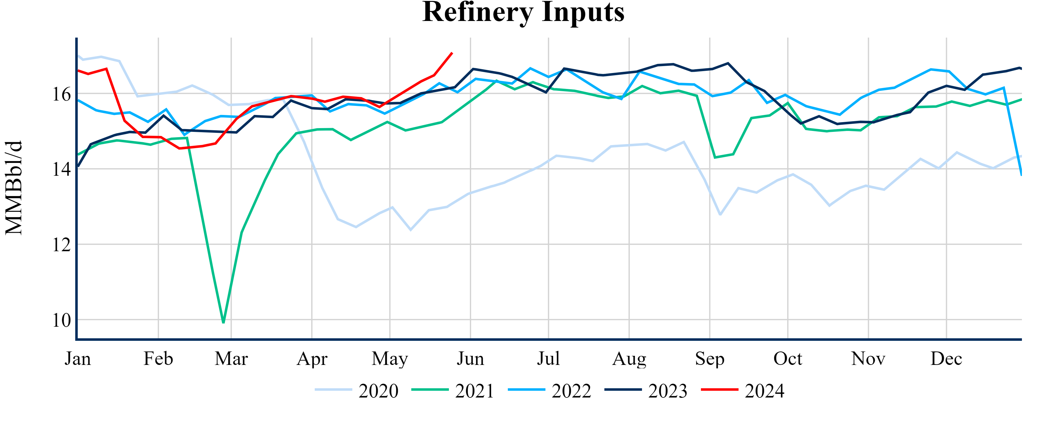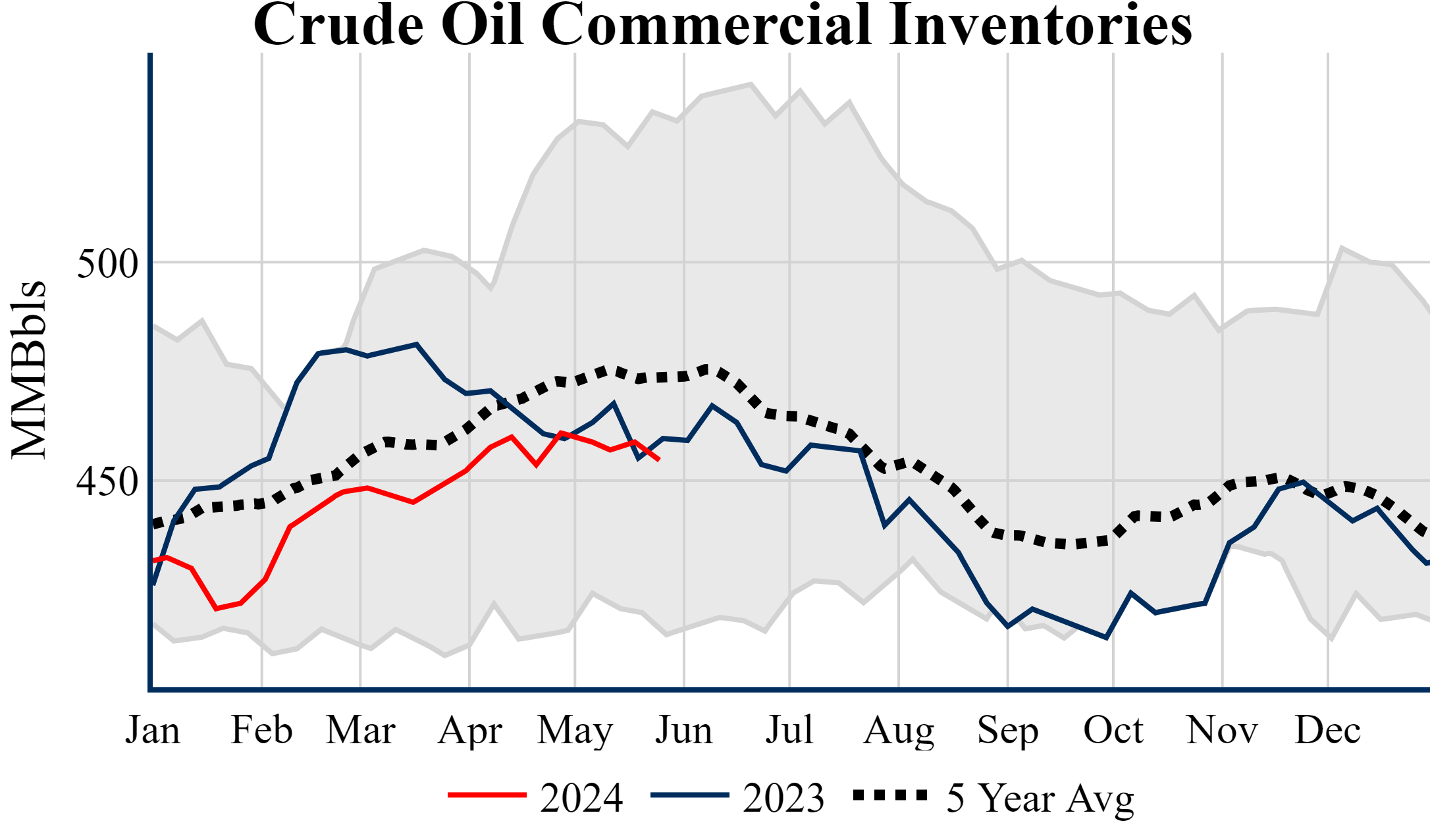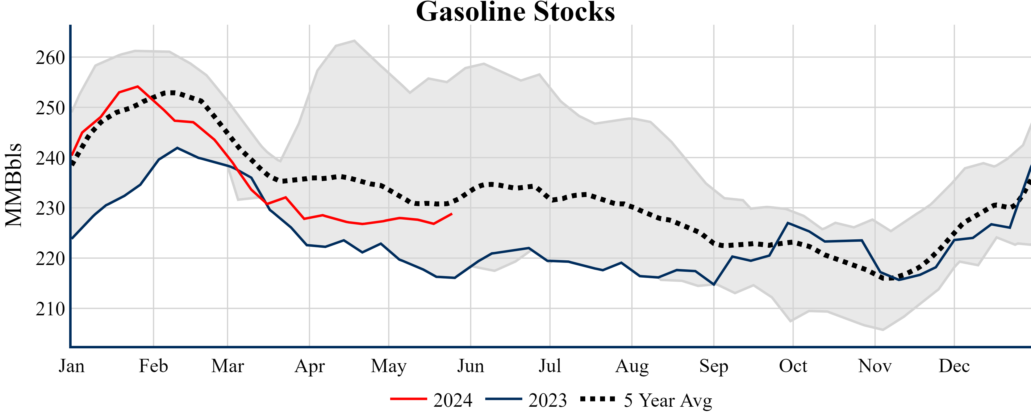 Inventories for the U.S. are now at a deficit of 4.30 MMBbls (-0.9%) to last year, and a deficit of 18.90 MMBbls (-4.0%) to the five-year average.