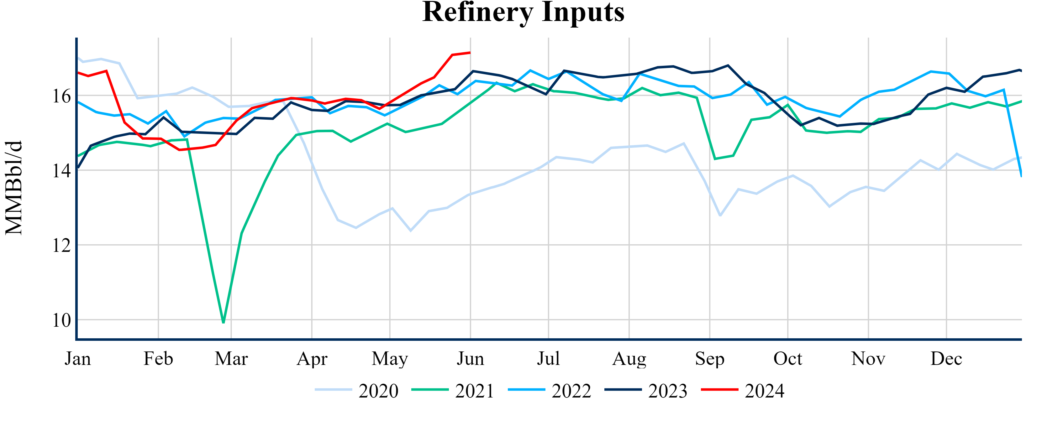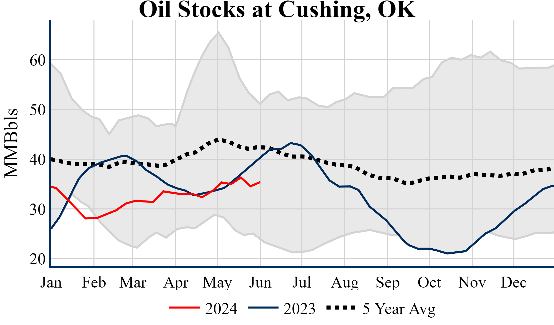 Inventories for the U.S. are now at a deficit of 3.30 MMBbls (-0.7%) to last year, and a deficit of 17.90 MMBbls (-3.8%) to the five-year average.