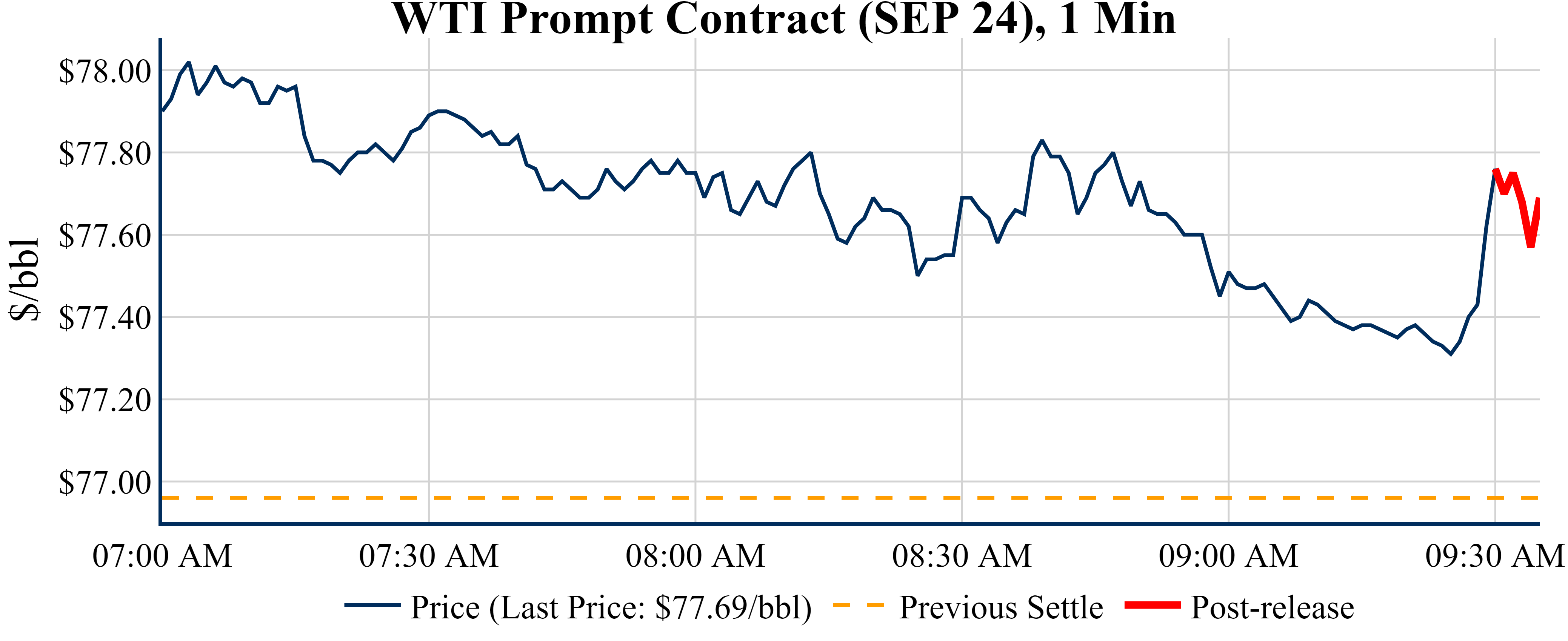 Prices were slightly down in the five minutes following the announcement, to $77.69 from $77.76 just before 09:30 AM.