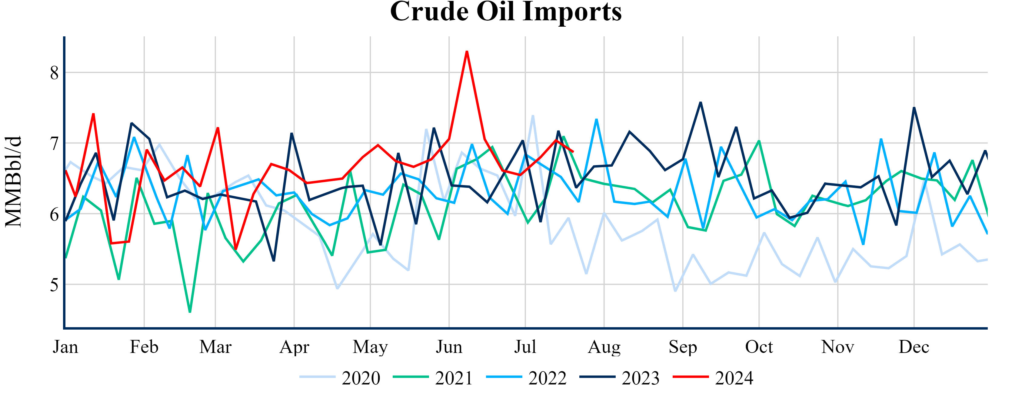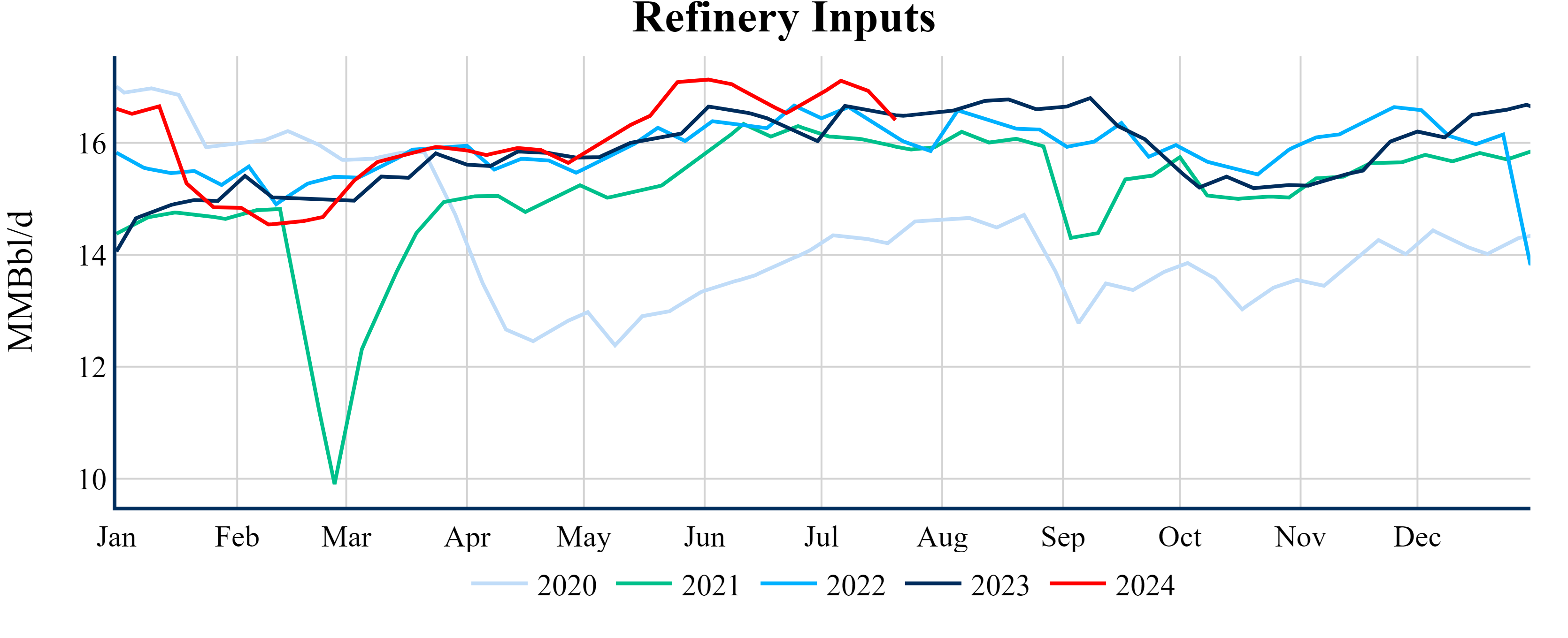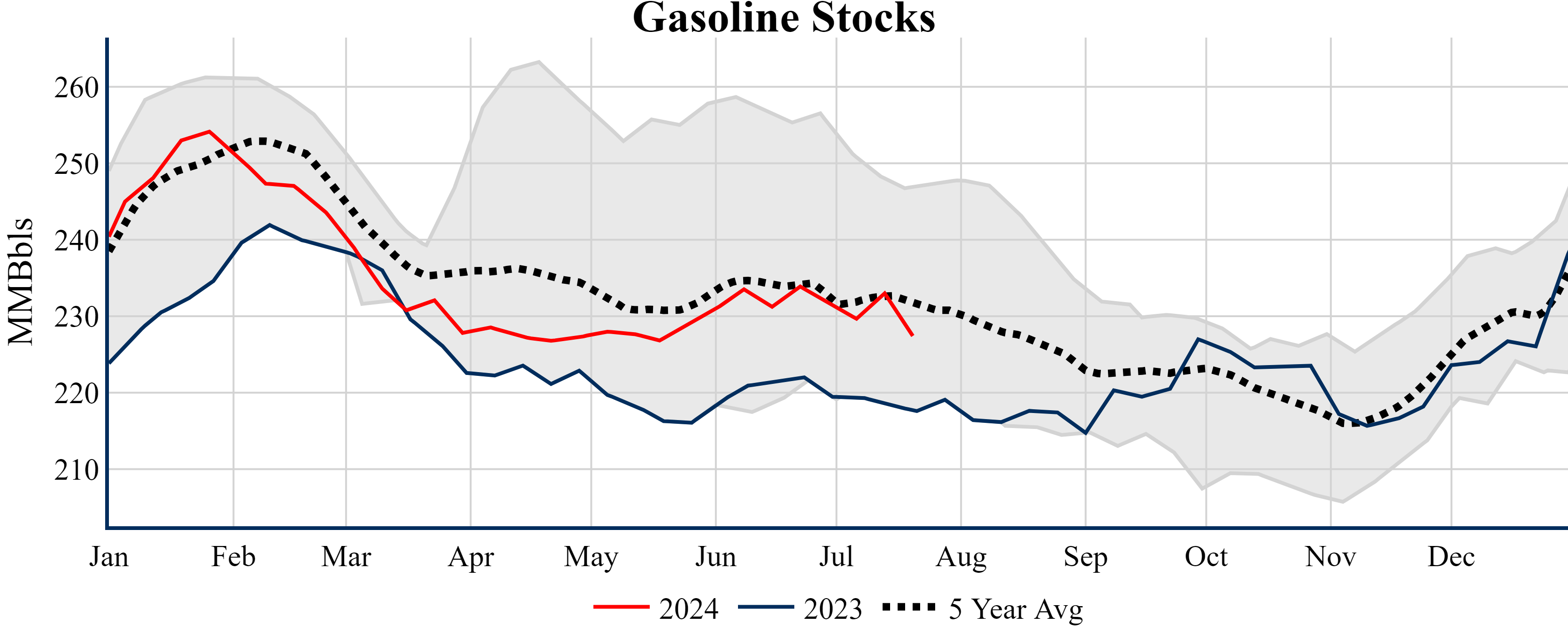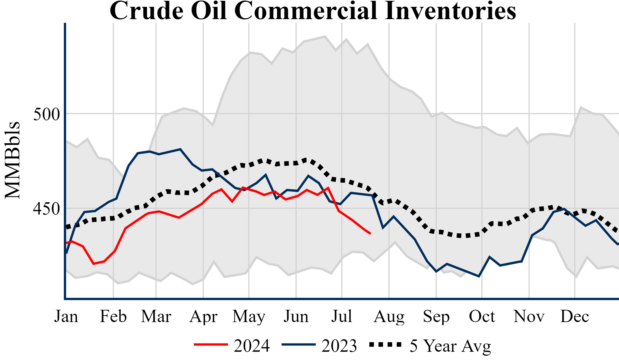 Inventories for the U.S. are now at a deficit of 20.40 MMBbls (-4.5%) to last year, and a deficit of 22.50 MMBbls (-4.9%) to the five-year average.