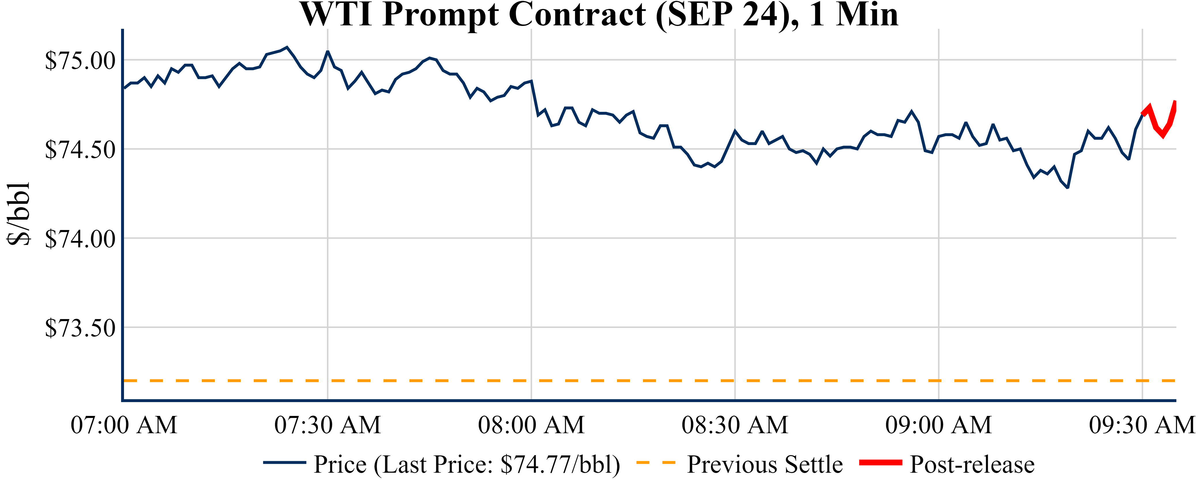 Prices were up in the five minutes following the announcement, to $74.77 from $74.69 just before 09:30 AM.