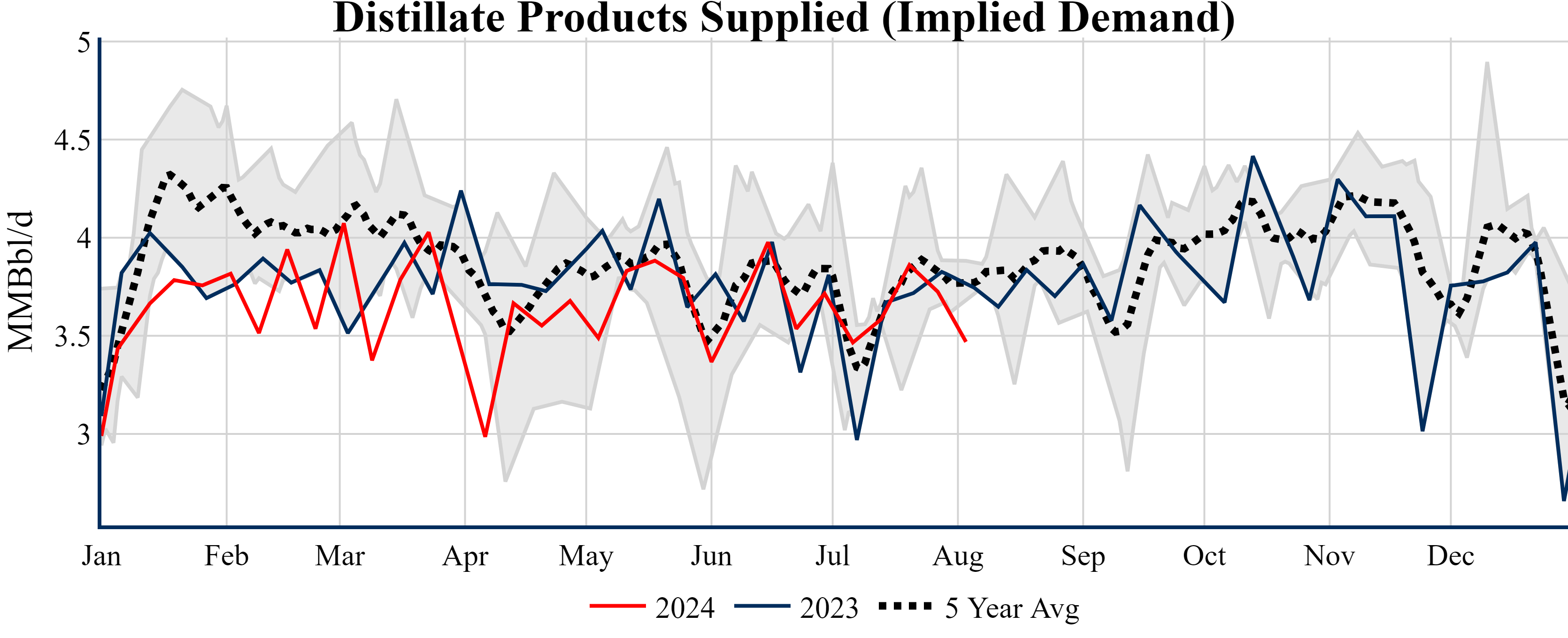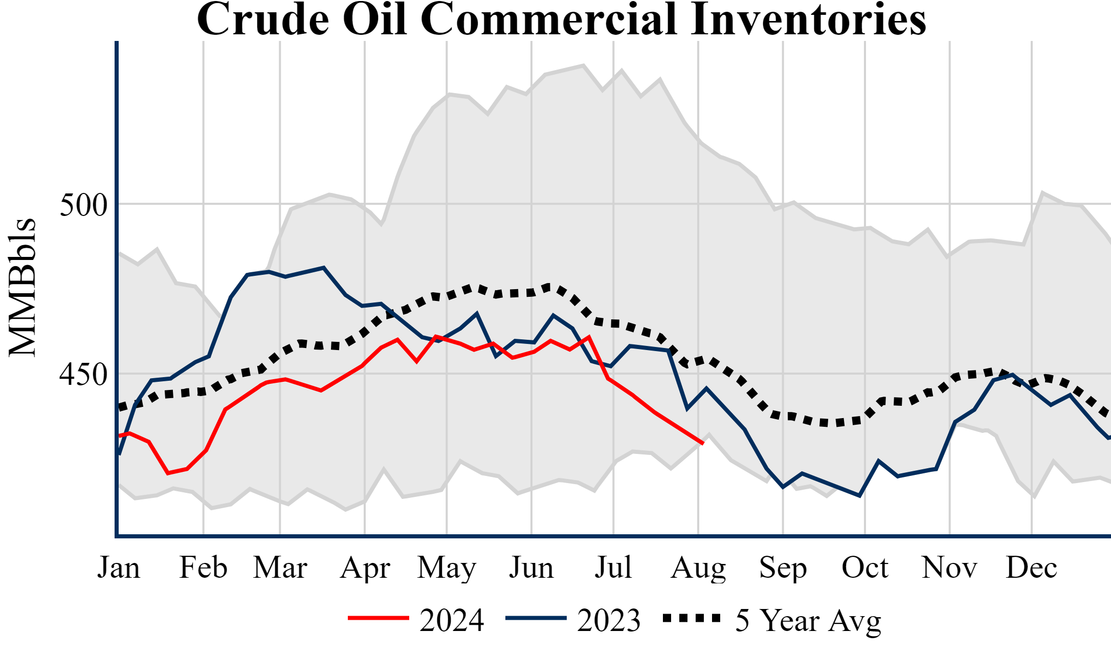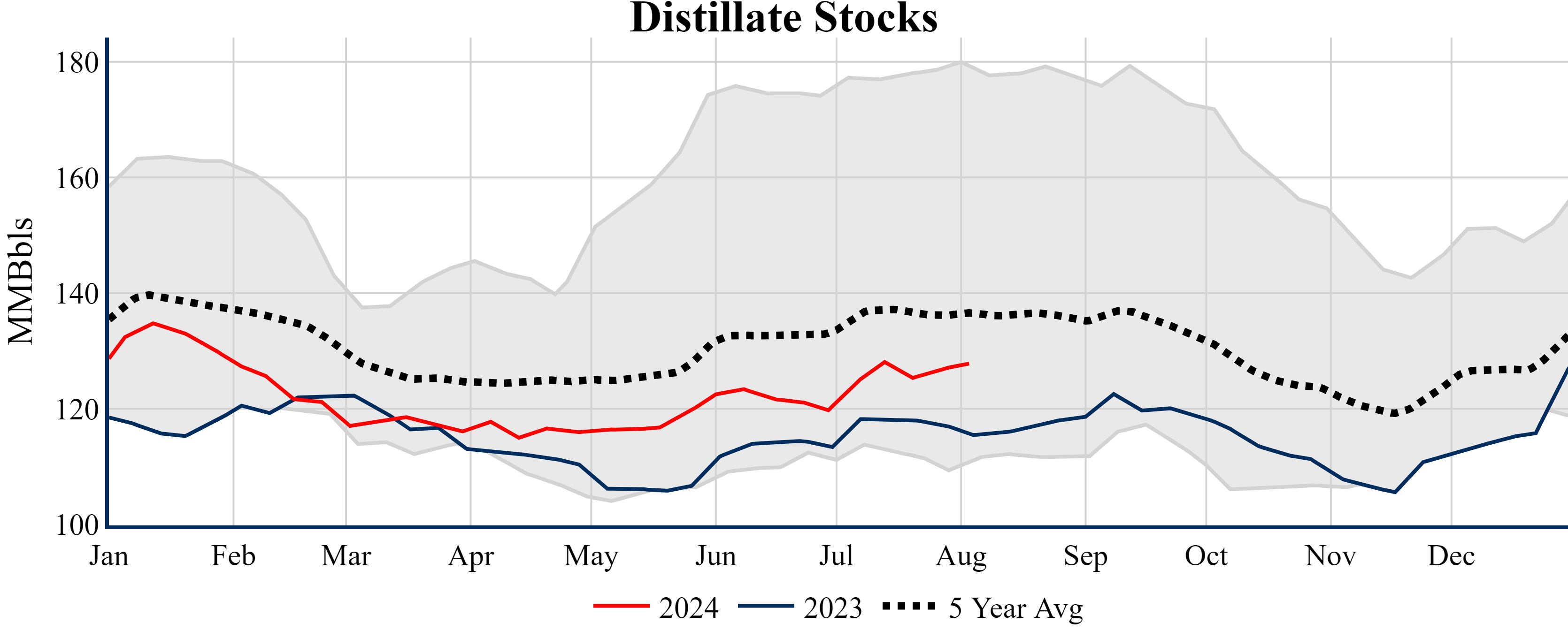 Inventories for the U.S. are now at a deficit of 15.50 MMBbls (-3.5%) to last year, and a deficit of 24.80 MMBbls (-5.5%) to the five-year average.