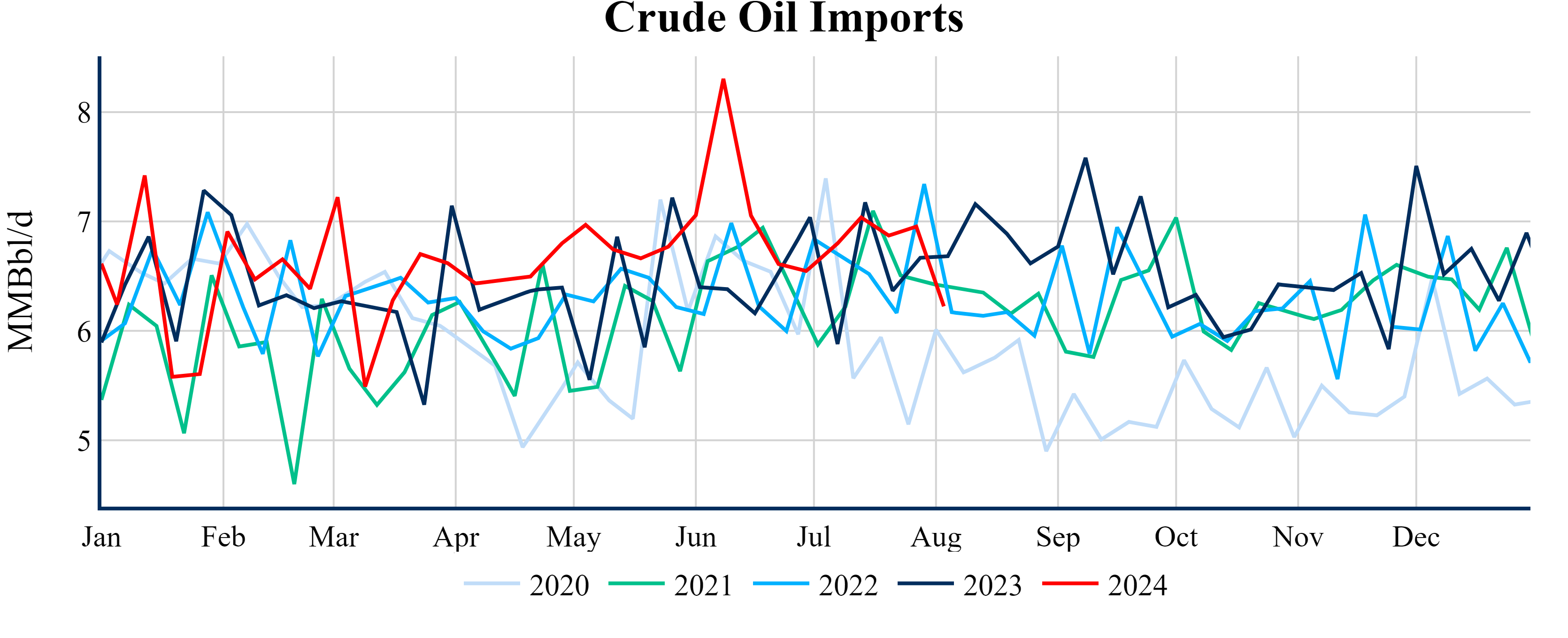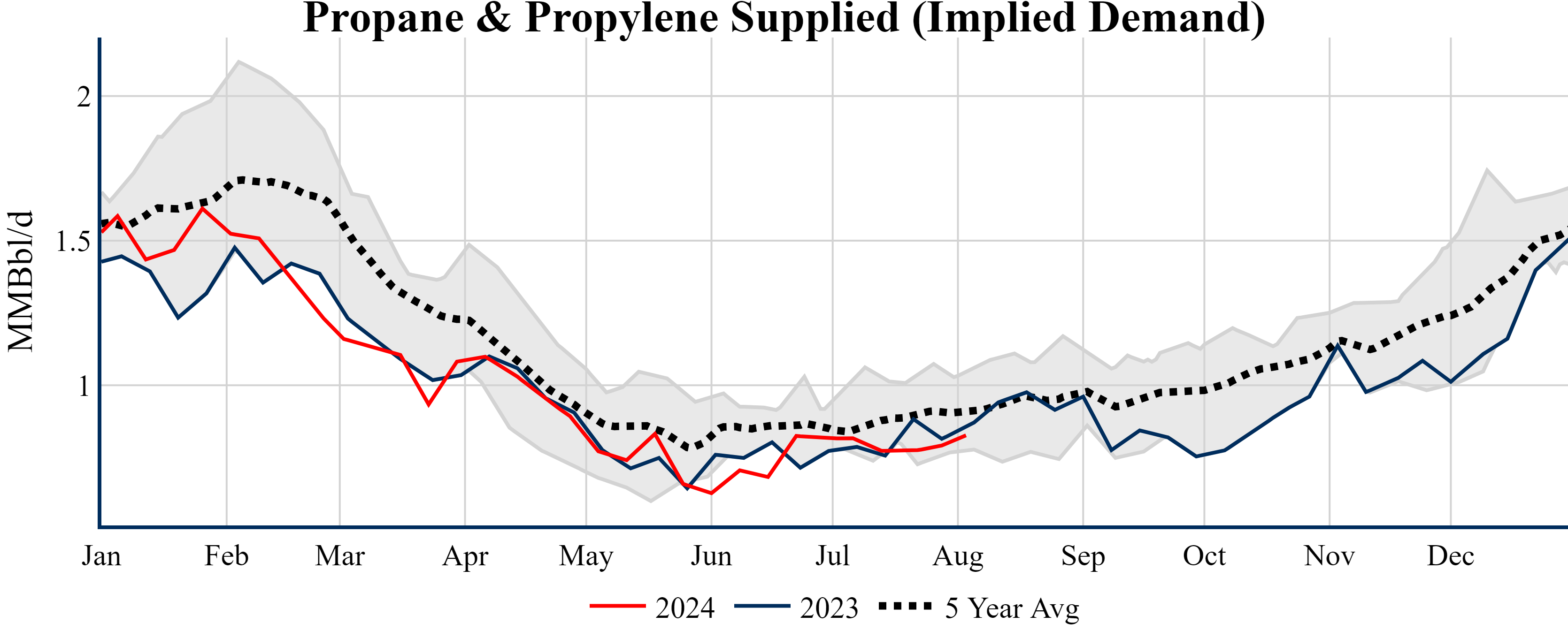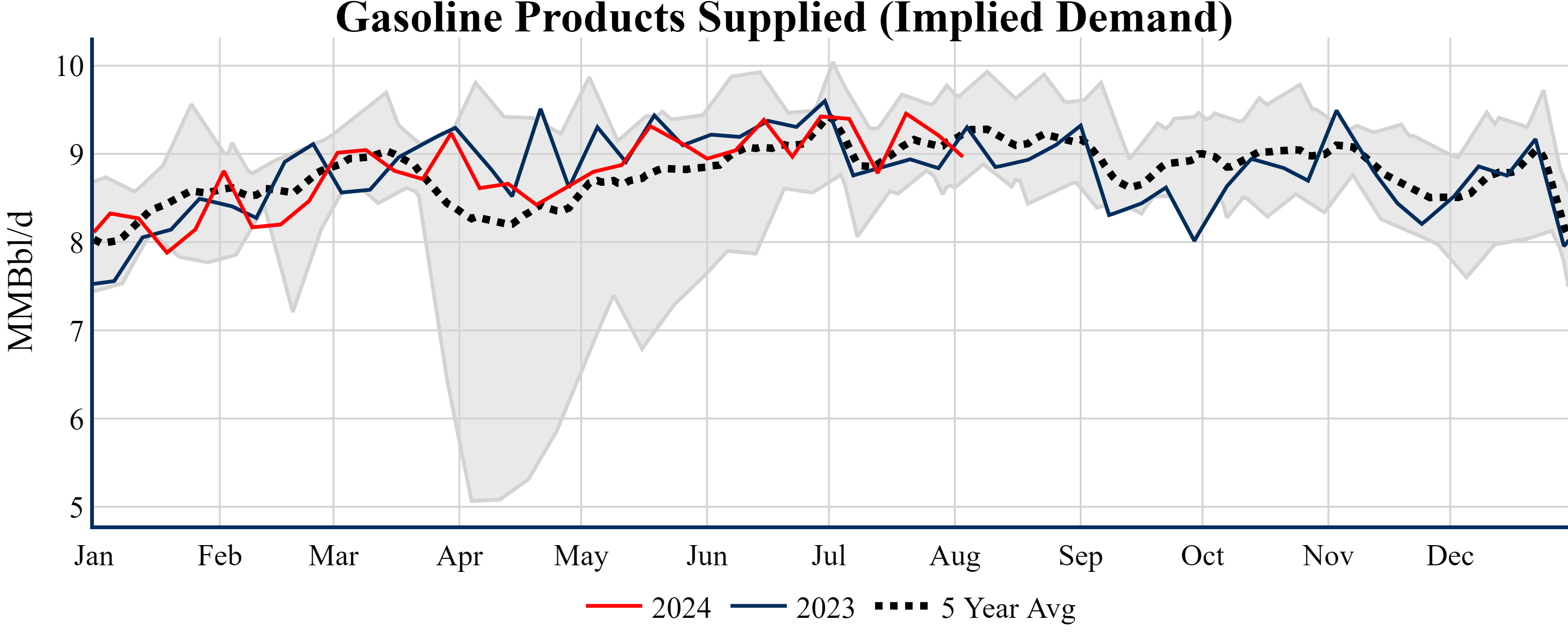Inventories for the U.S. are now at a deficit of 15.50 MMBbls (-3.5%) to last year, and a deficit of 24.80 MMBbls (-5.5%) to the five-year average.
