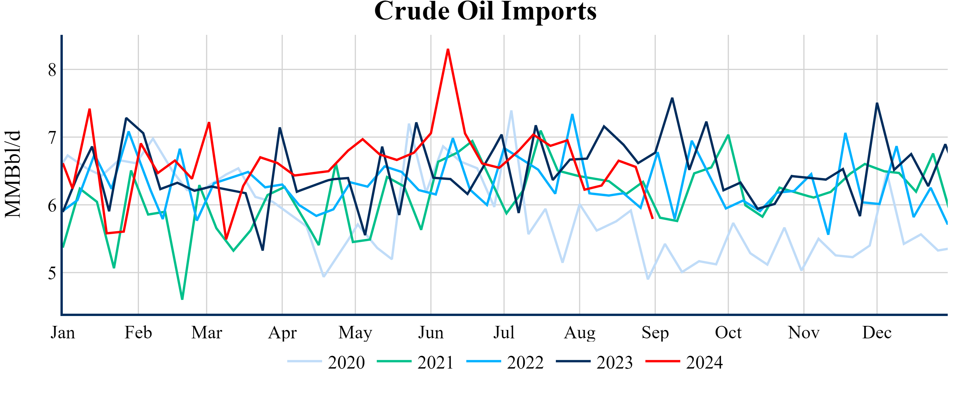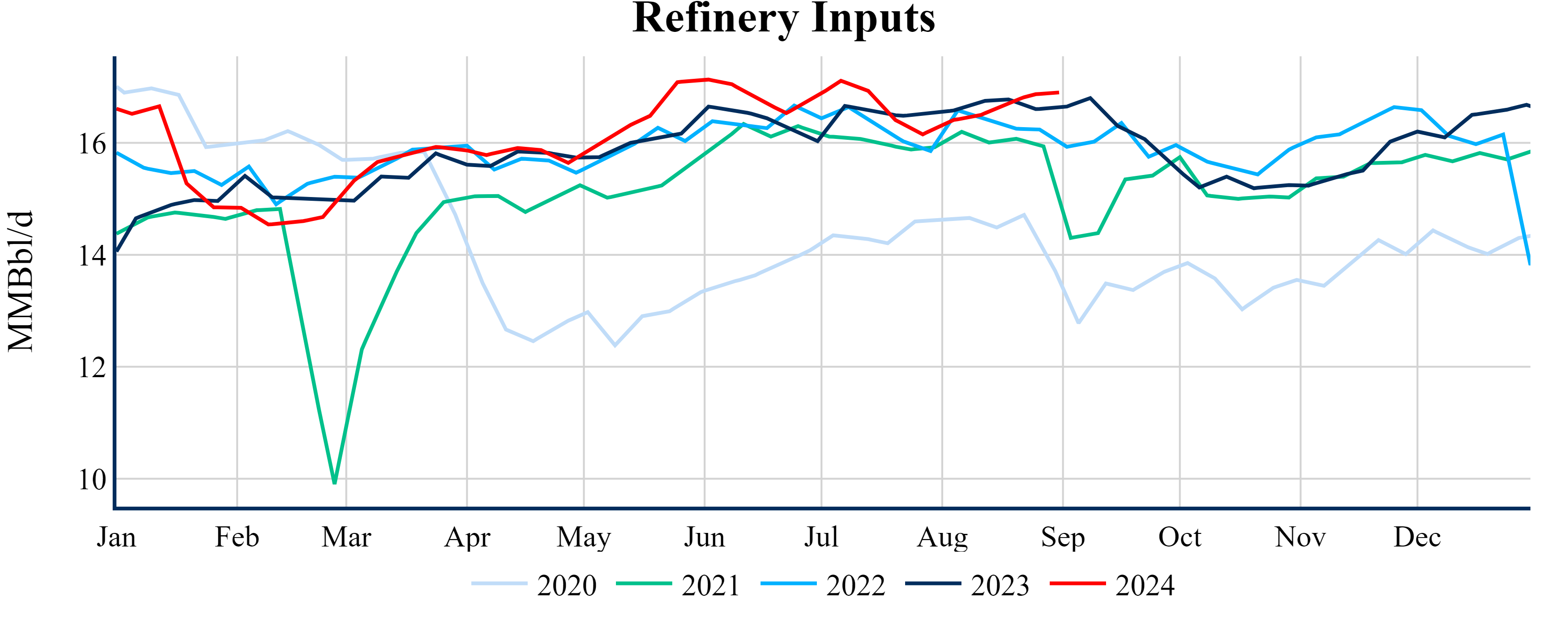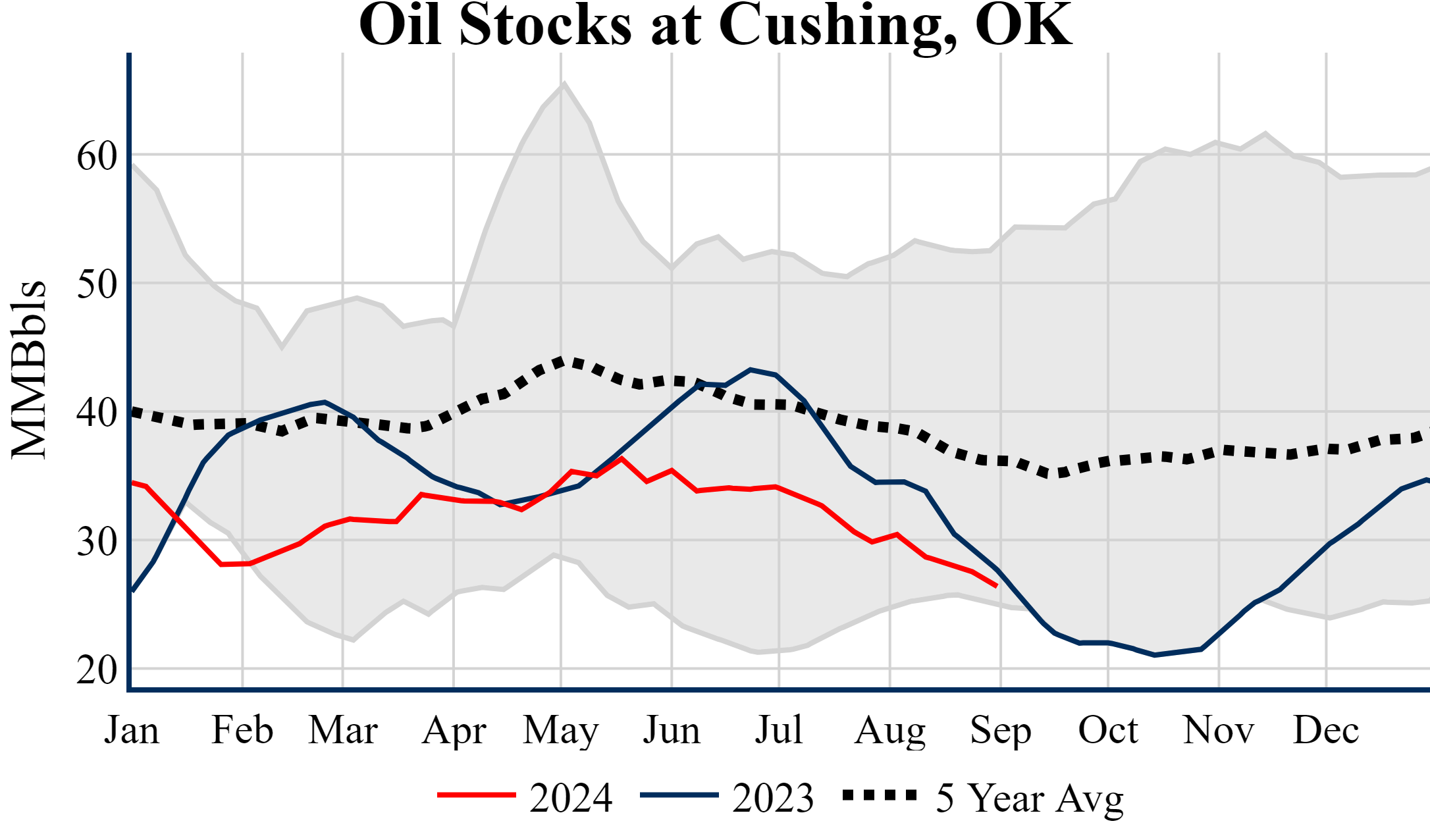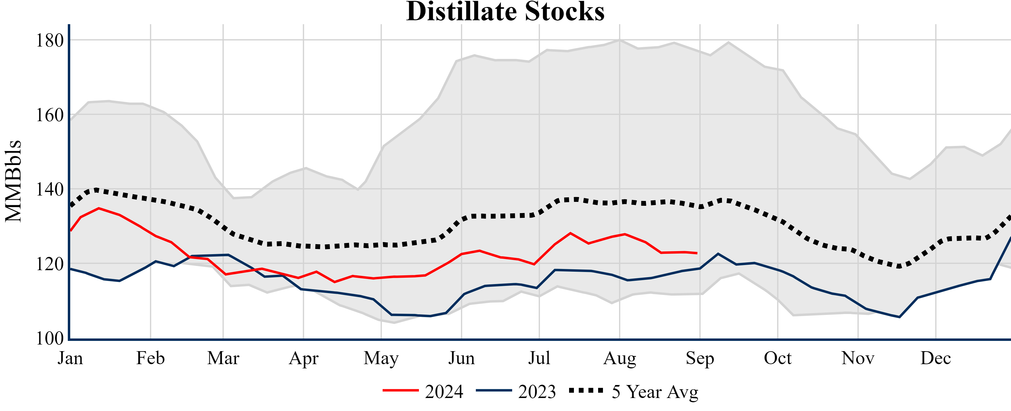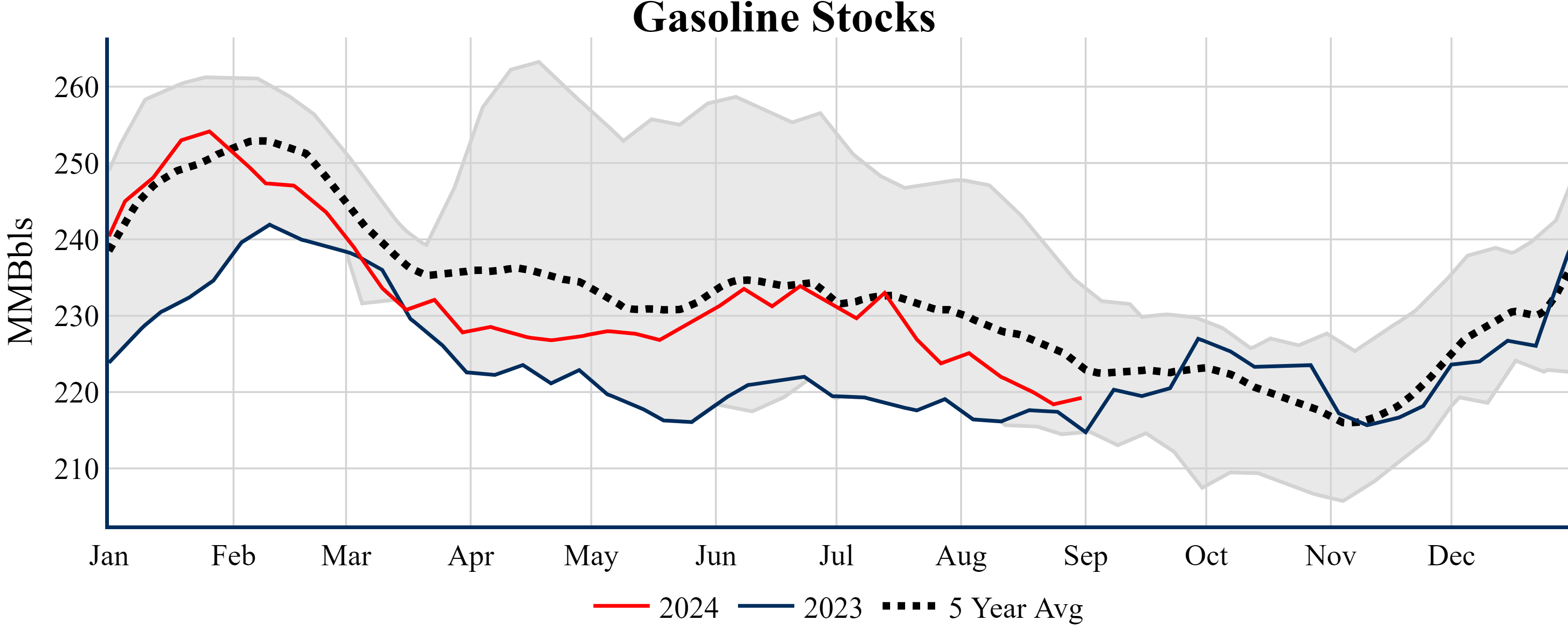 Inventories for the U.S. are now at a surplus of 0.80 MMBbls (0.2%) to last year, and a deficit of 19.20 MMBbls (-4.4%) to the five-year average.