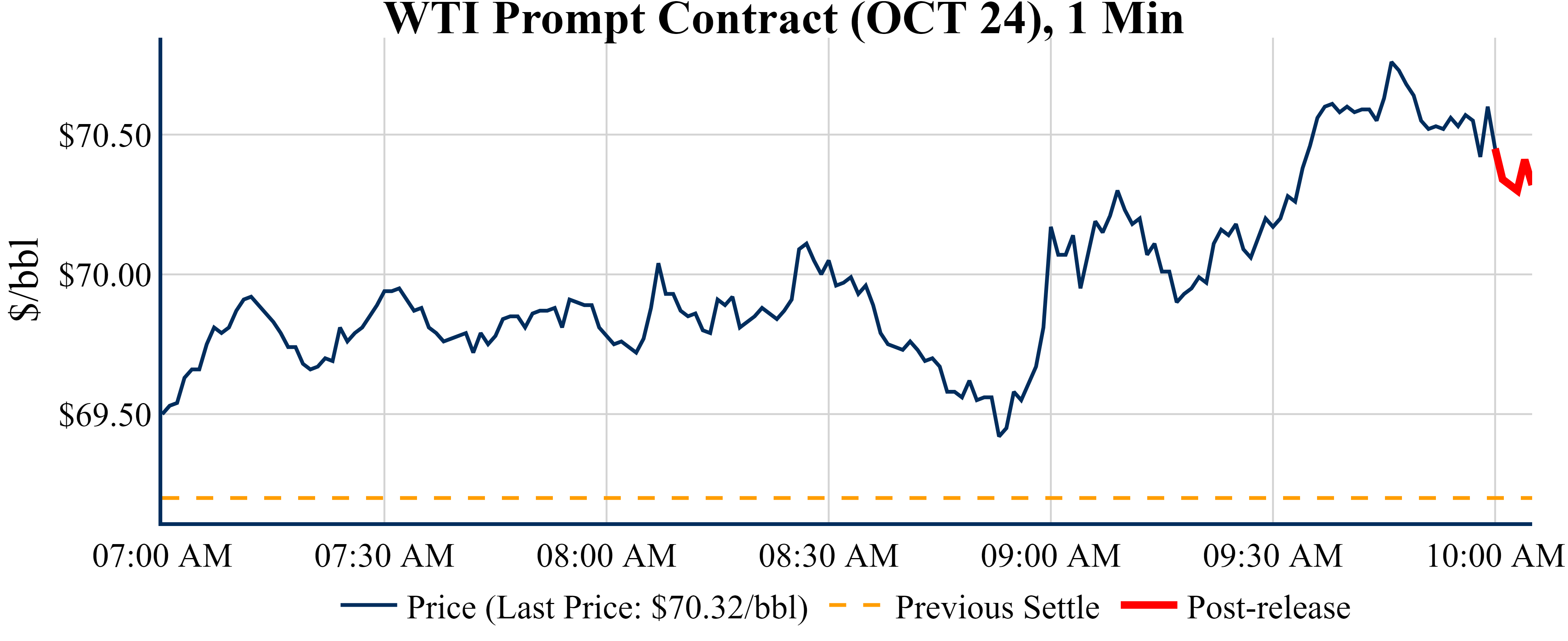 Prices were down in the five minutes following the announcement, to $70.32 from $70.45 just before 10:00 AM.