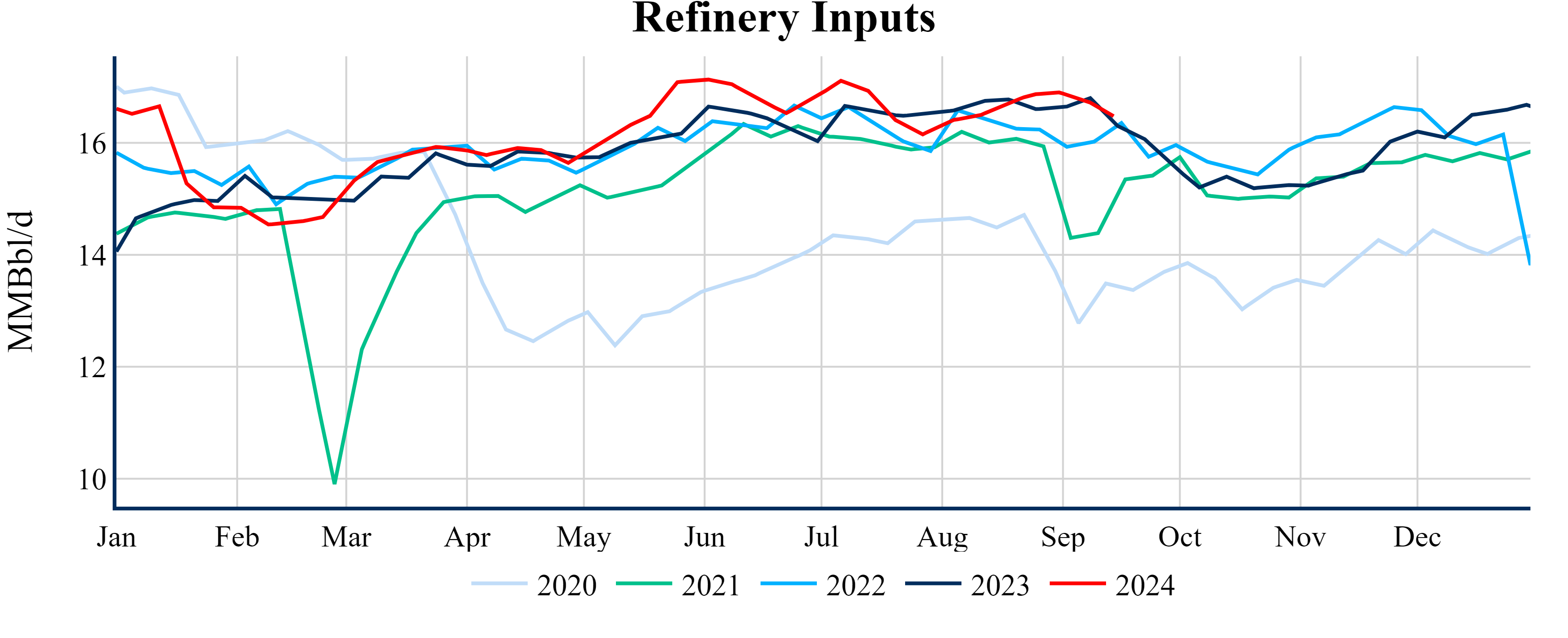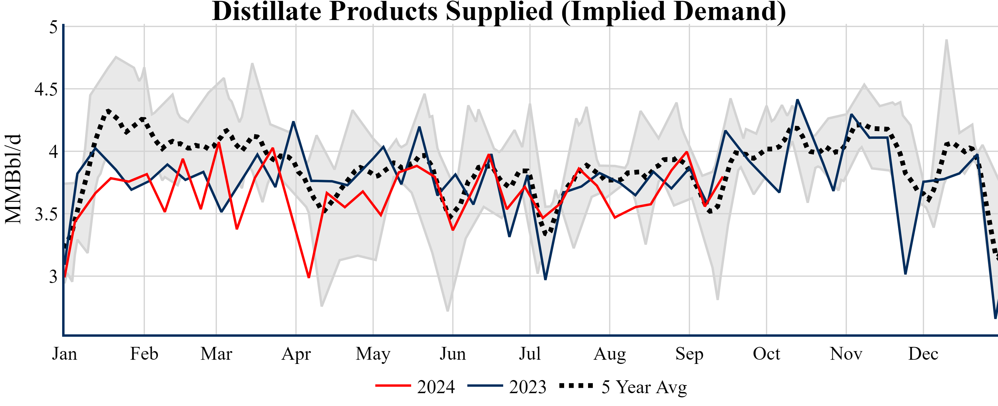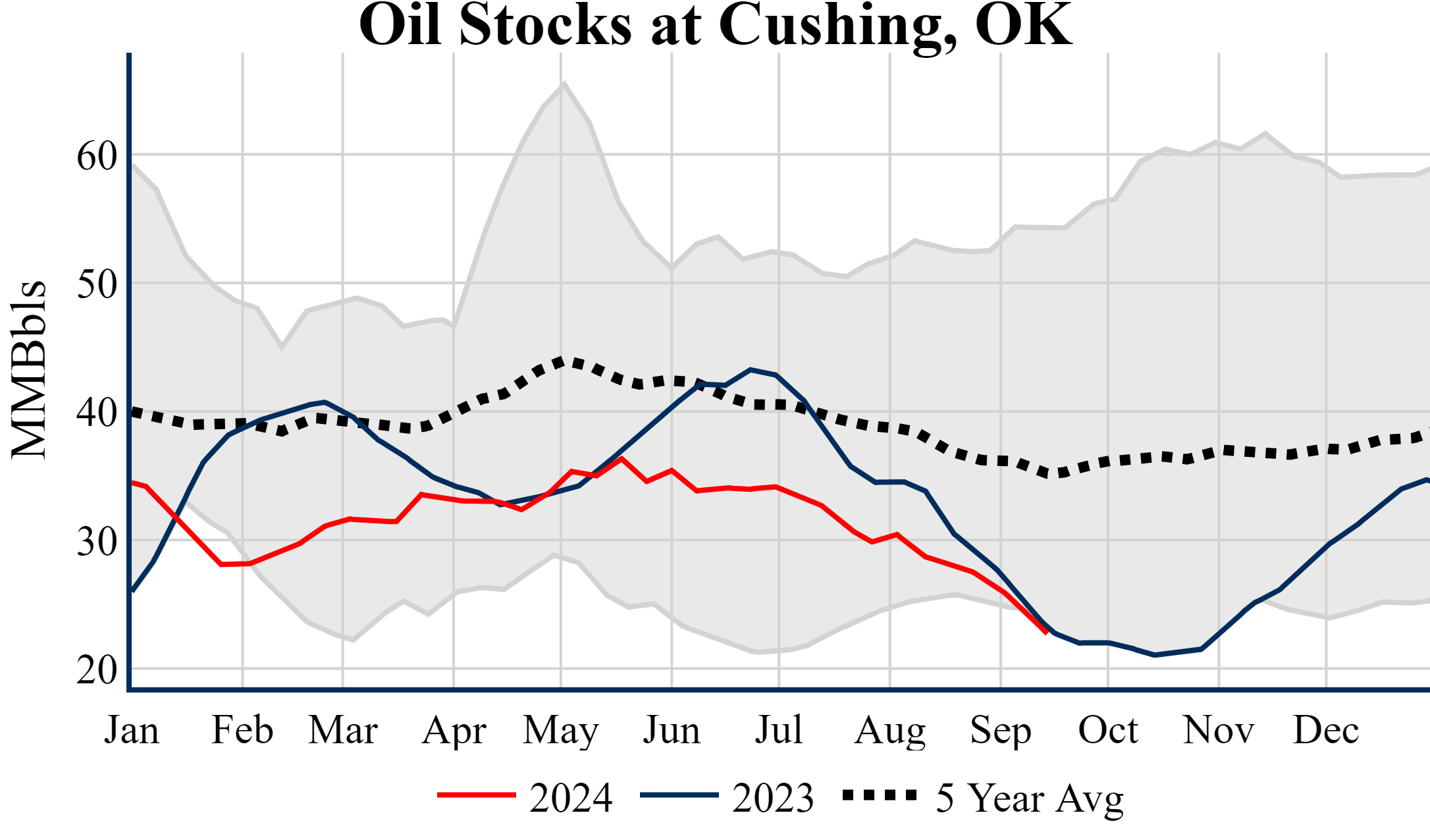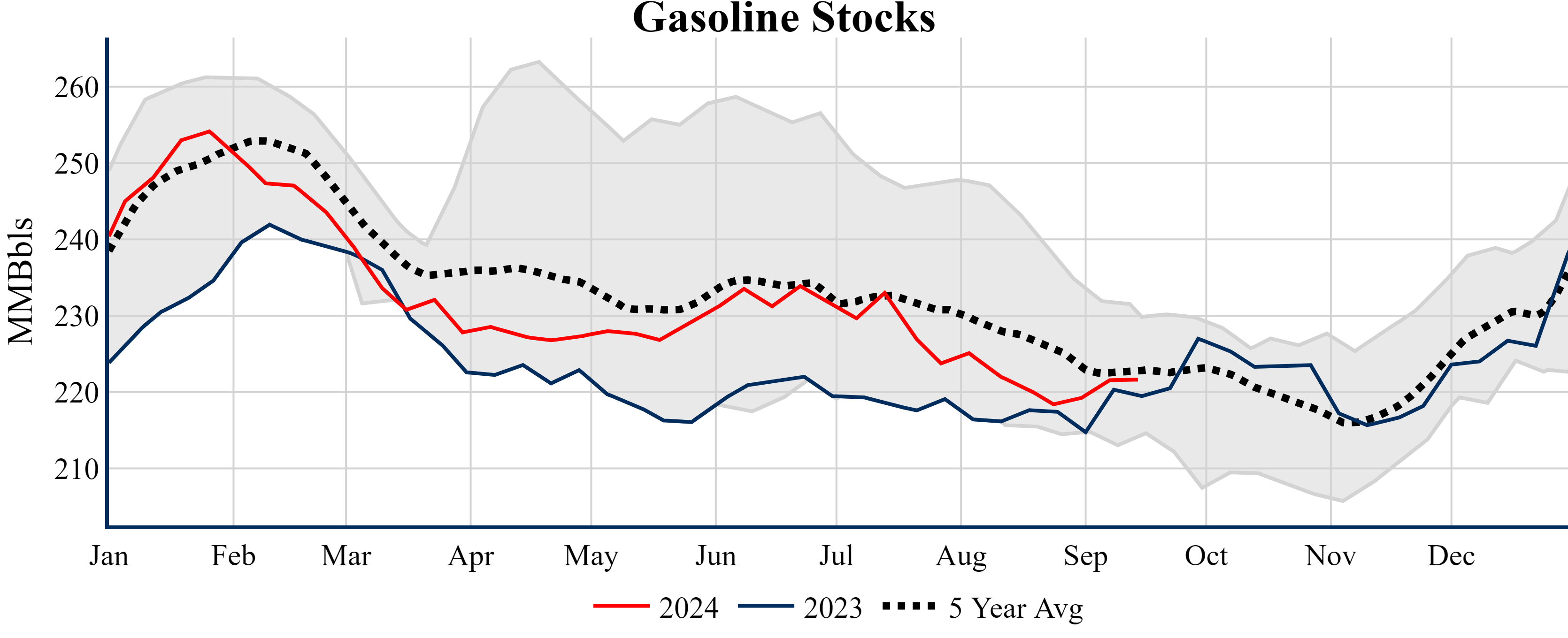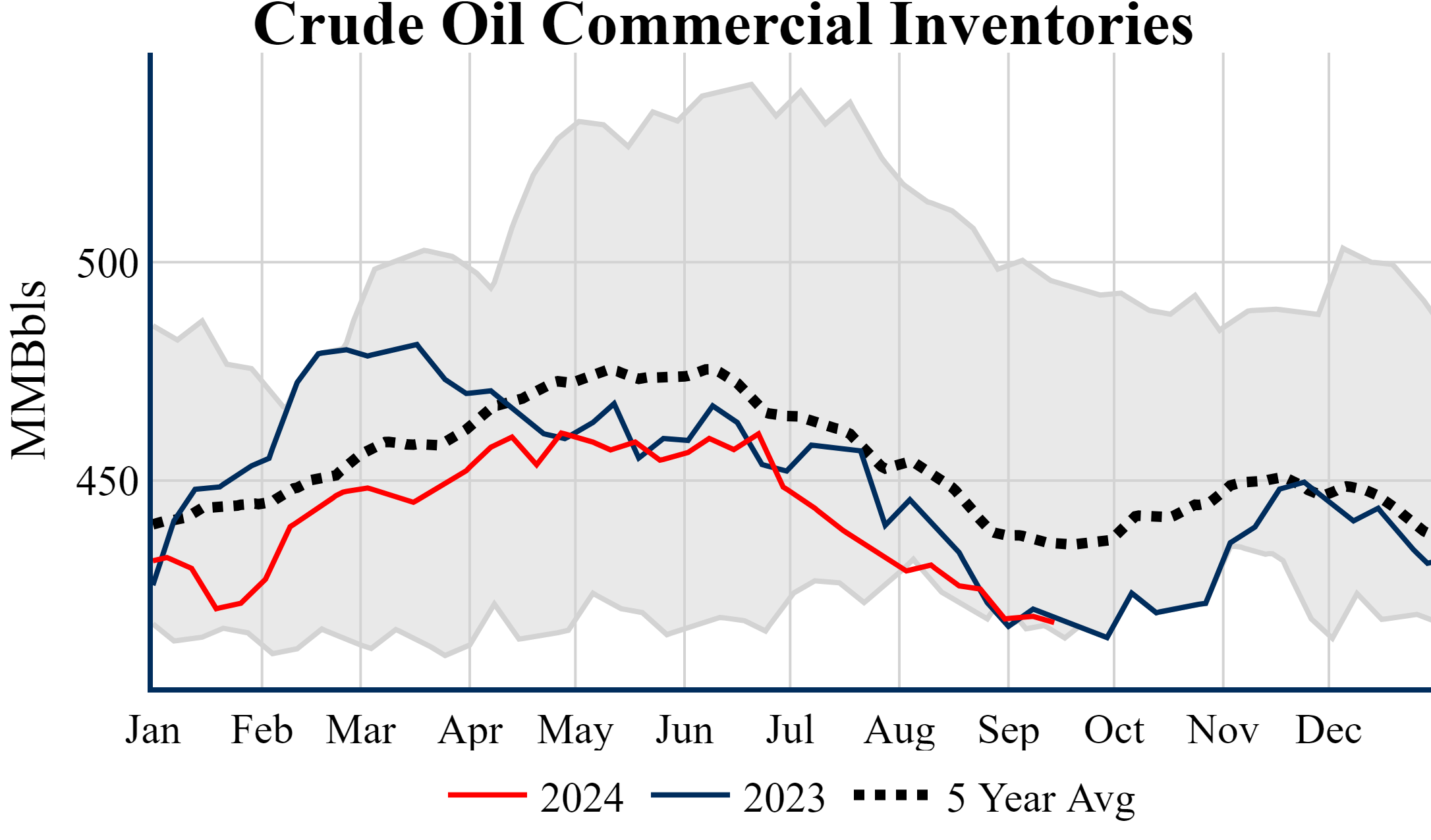 Inventories for the U.S. are now at a deficit of 1.20 MMBbls (-0.3%) to last year, and a deficit of 18.00 MMBbls (-4.1%) to the five-year average.