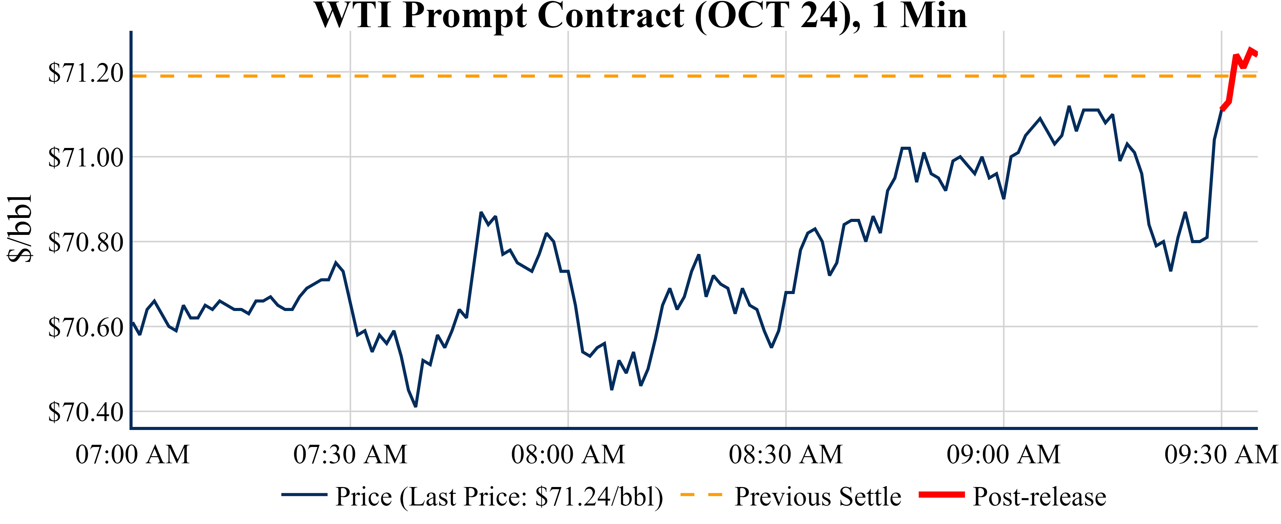 Prices were modestly up in the five minutes following the announcement, to $71.24 from $71.11 just before 09:30 AM.