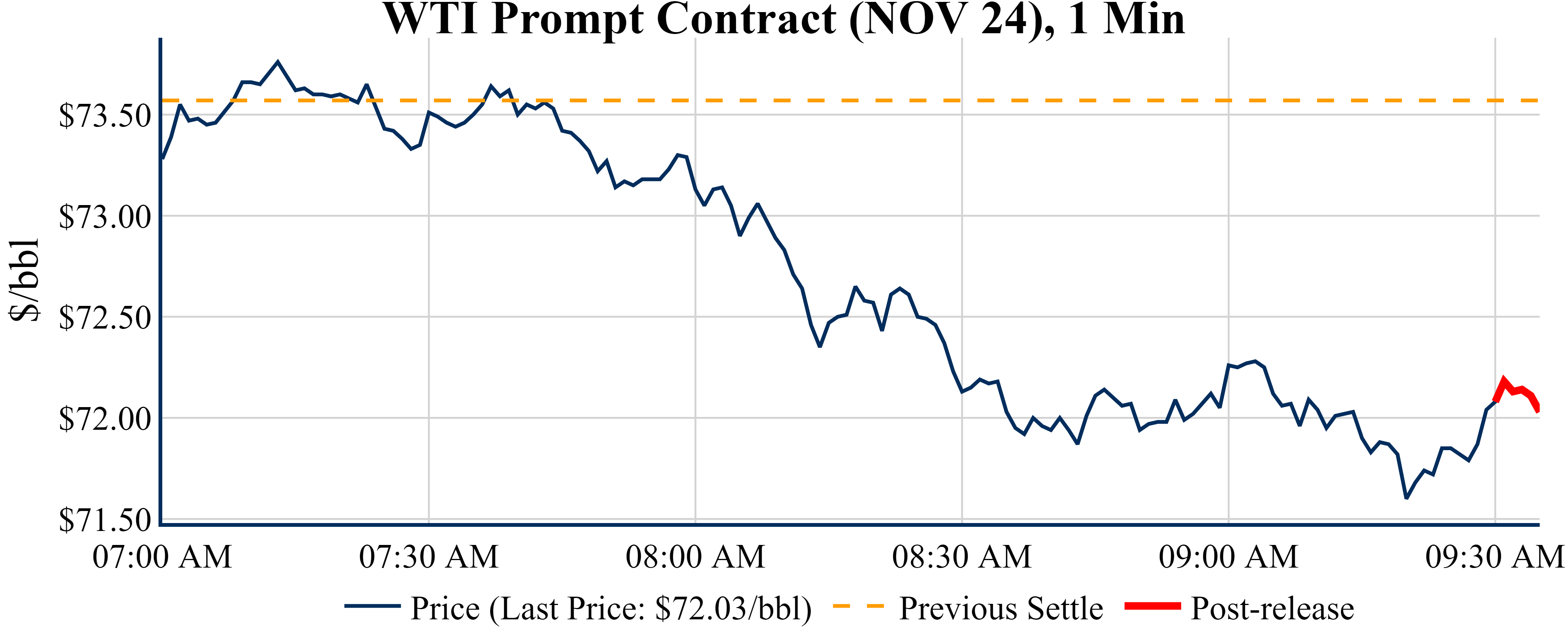 Prices were modestly down in the five minutes following the announcement, to $72.03 from $72.04 just before 09:30 AM.