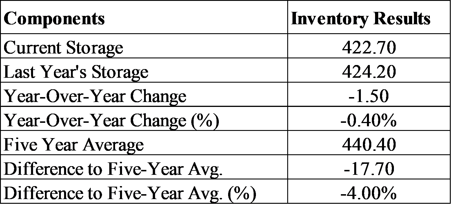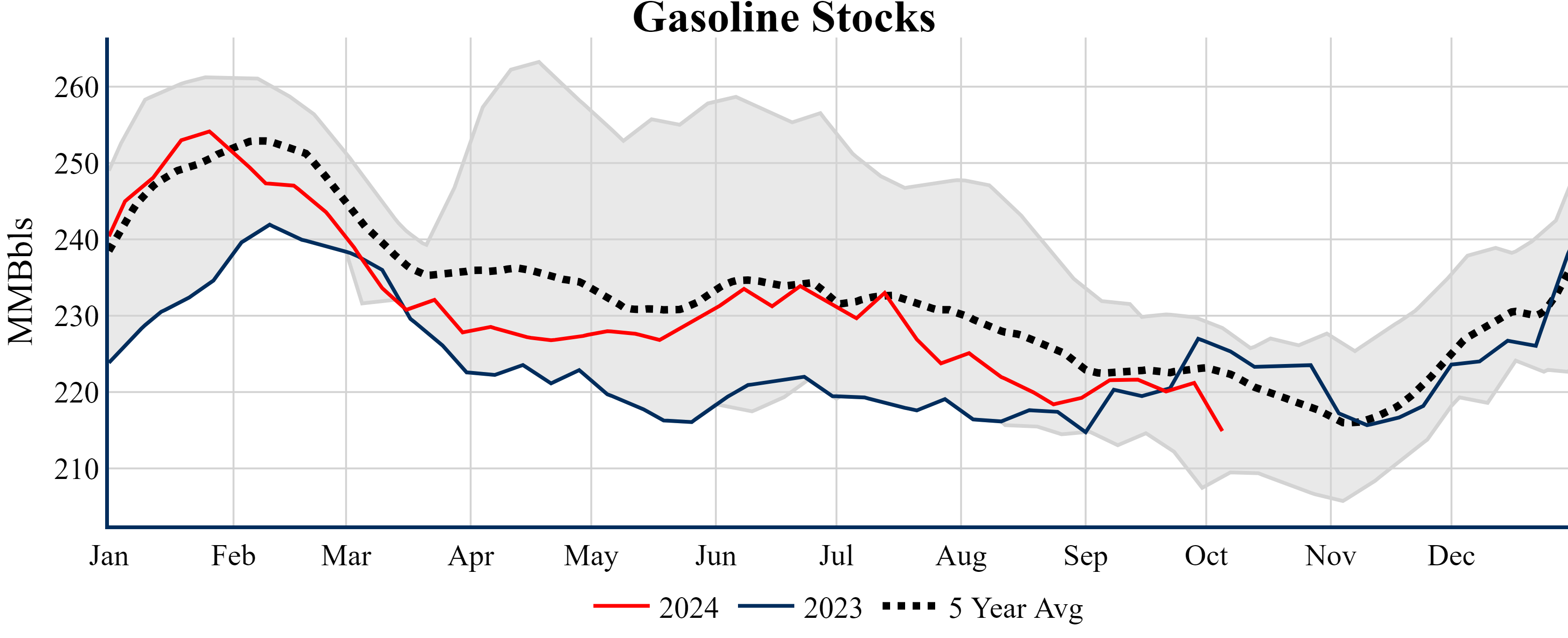 Inventories for the U.S. are now at a deficit of 1.50 MMBbls (-0.4%) to last year, and a deficit of 17.70 MMBbls (-4.0%) to the five-year average.