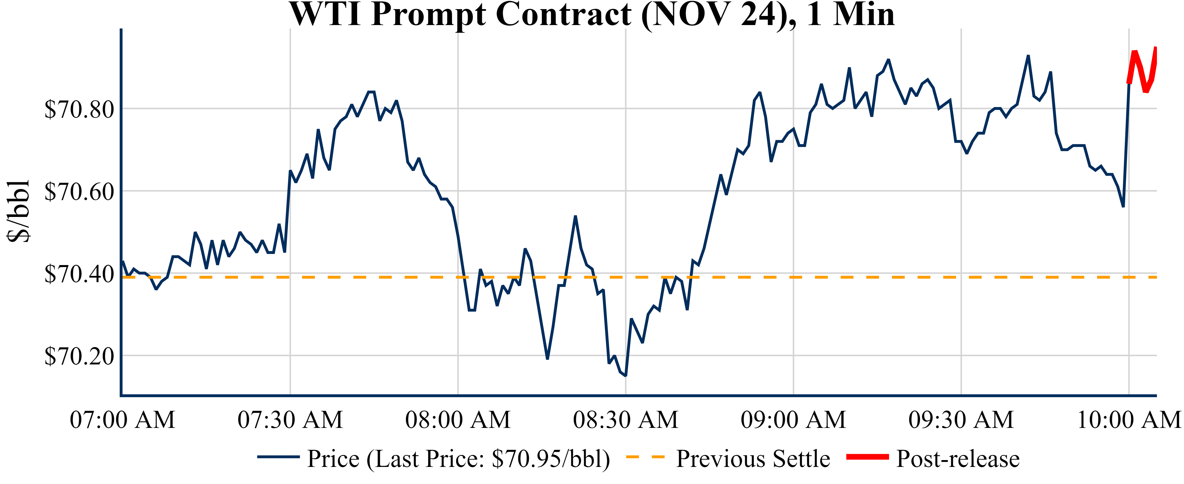 Prices were up in the five minutes following the announcement, to $70.95 from $70.86 just before 10:00 AM.