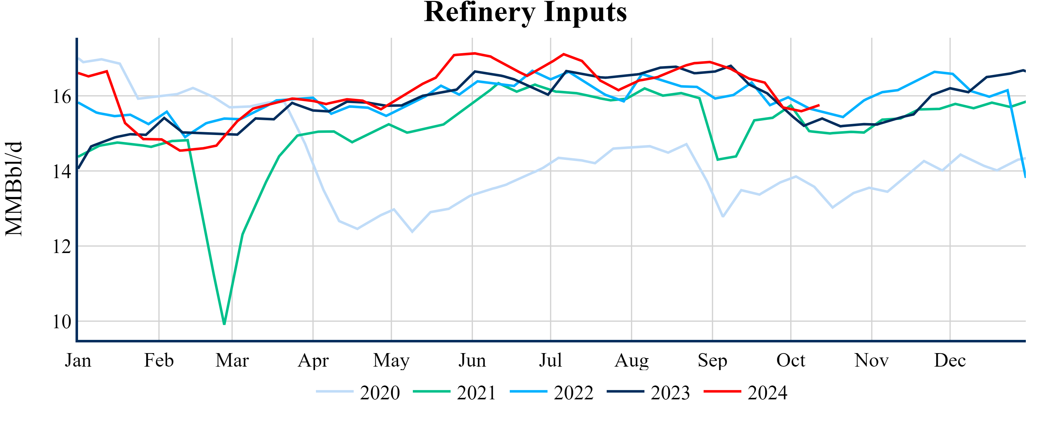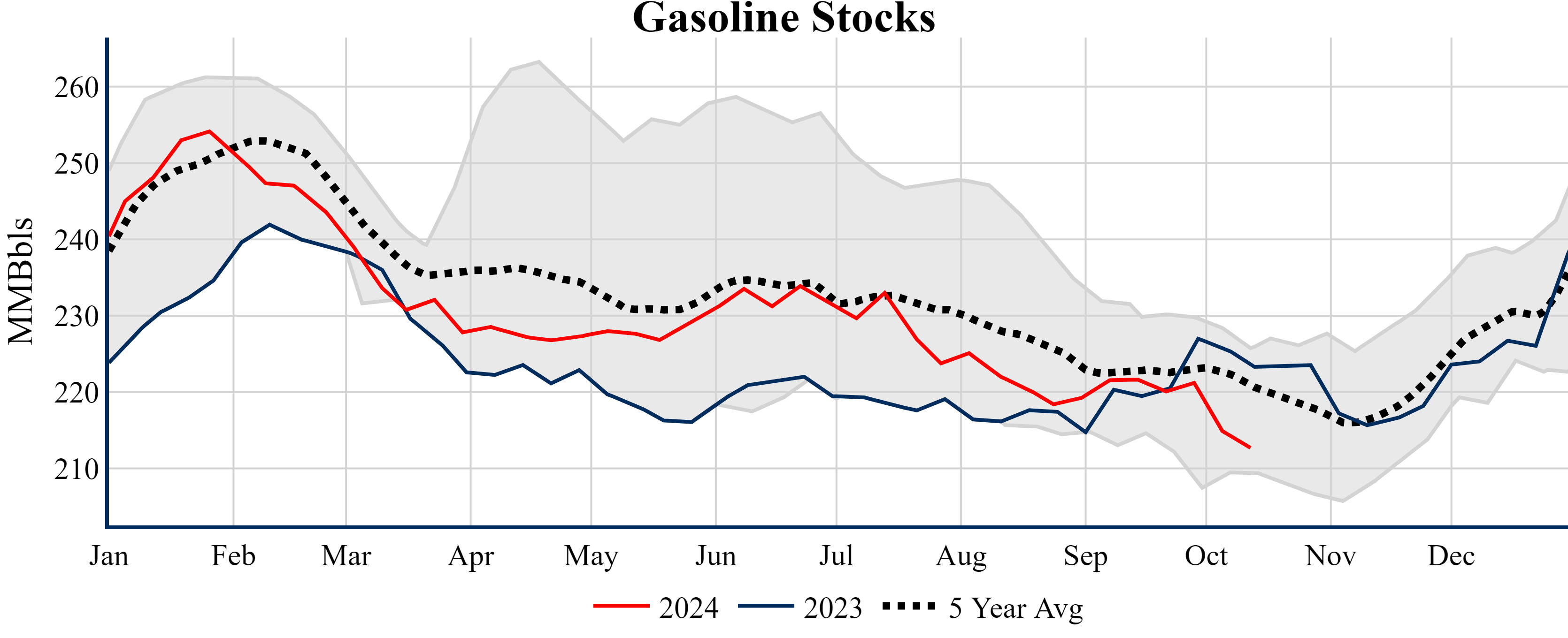 Inventories for the U.S. are now at a surplus of 0.20 MMBbls (0.0%) to last year, and a deficit of 21.10 MMBbls (-4.8%) to the five-year average.