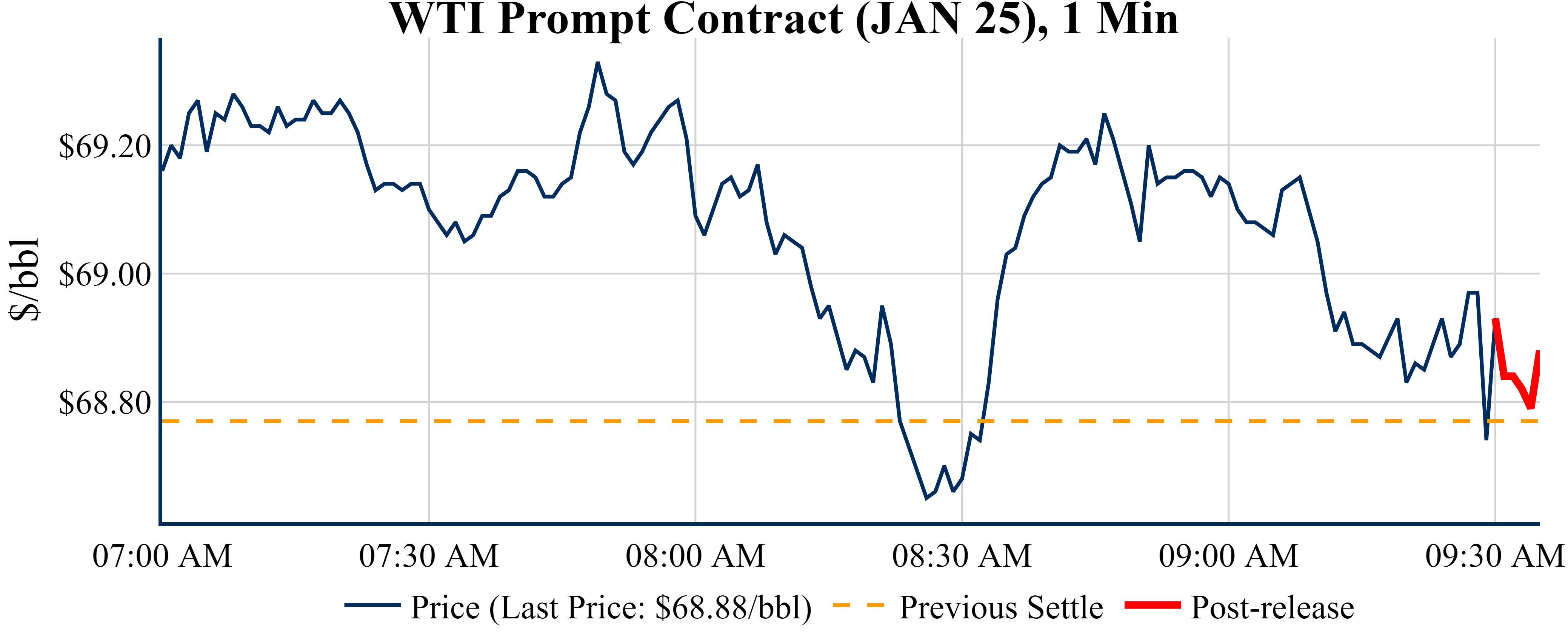 Prices were down in the five minutes following the announcement, to $68.88 from $68.93 just before 09:30 AM.