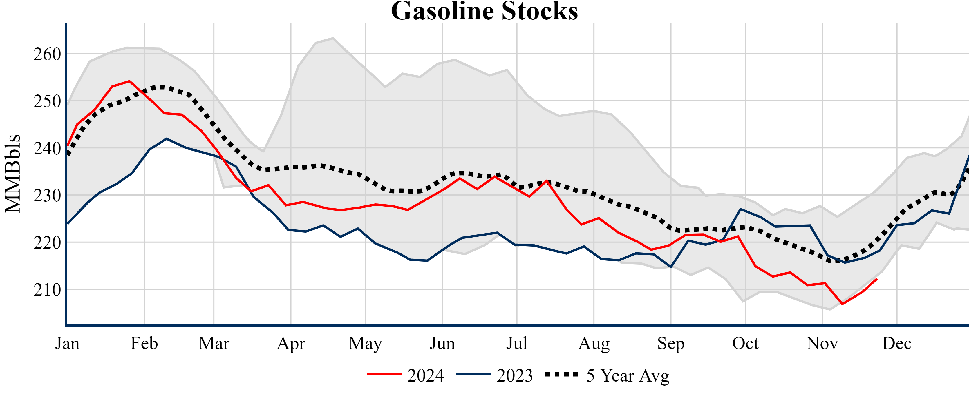 Inventories for the U.S. are now at a deficit of 21.00 MMBbls (-4.7%) to last year, and a deficit of 20.60 MMBbls (-4.6%) to the five-year average.