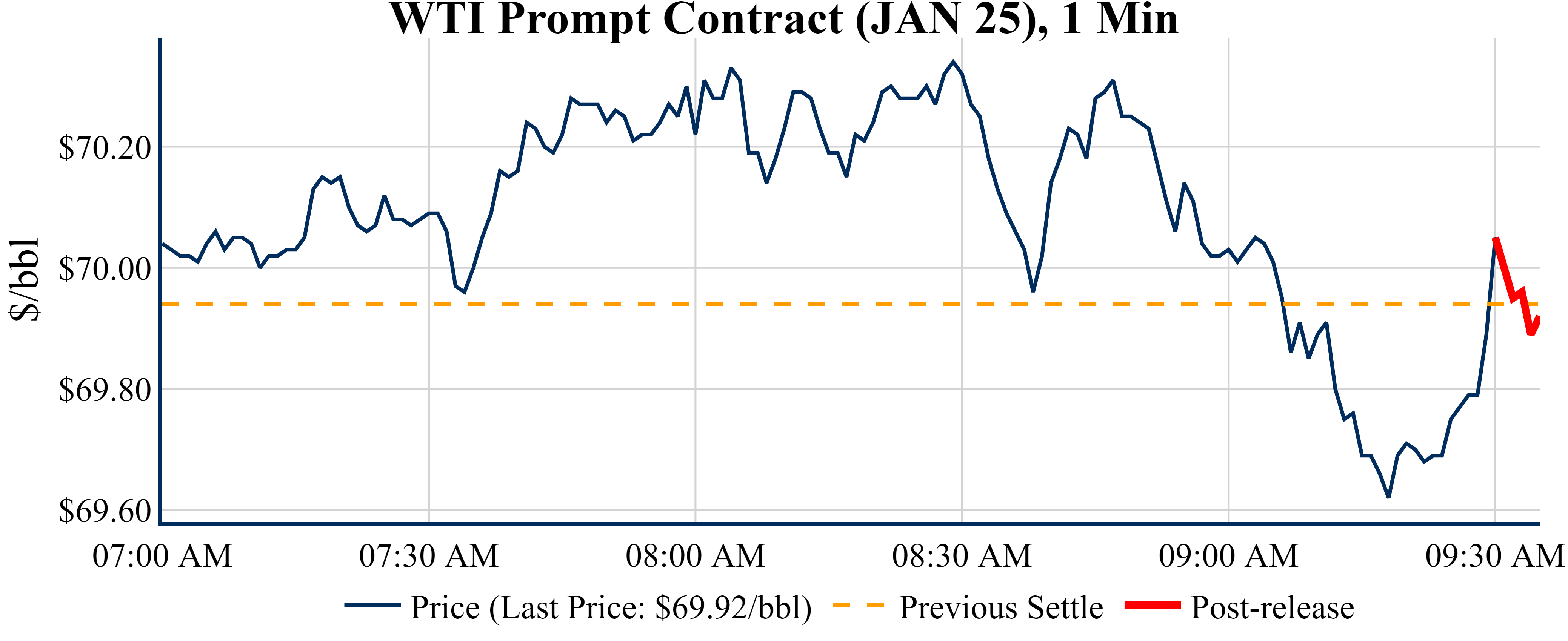 Prices were down in the five minutes following the announcement, to $69.92 from $70.05 just before 09:30 AM.