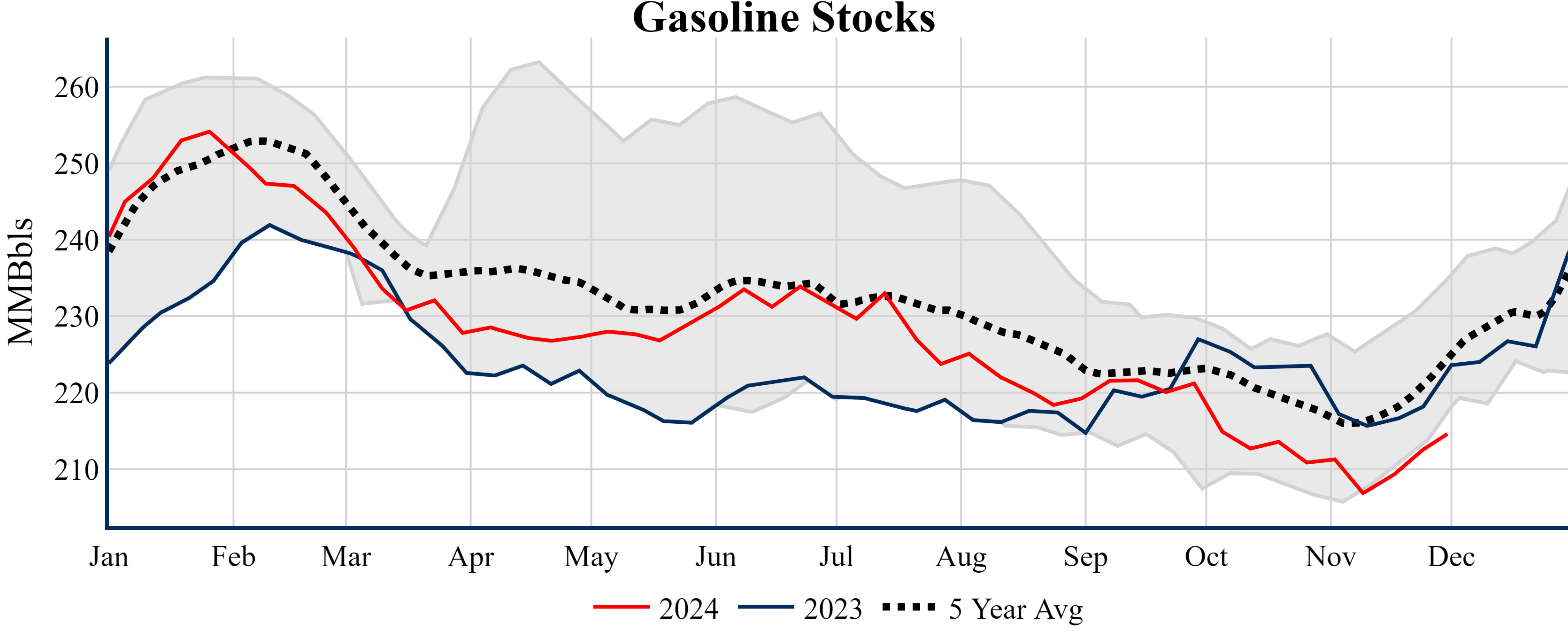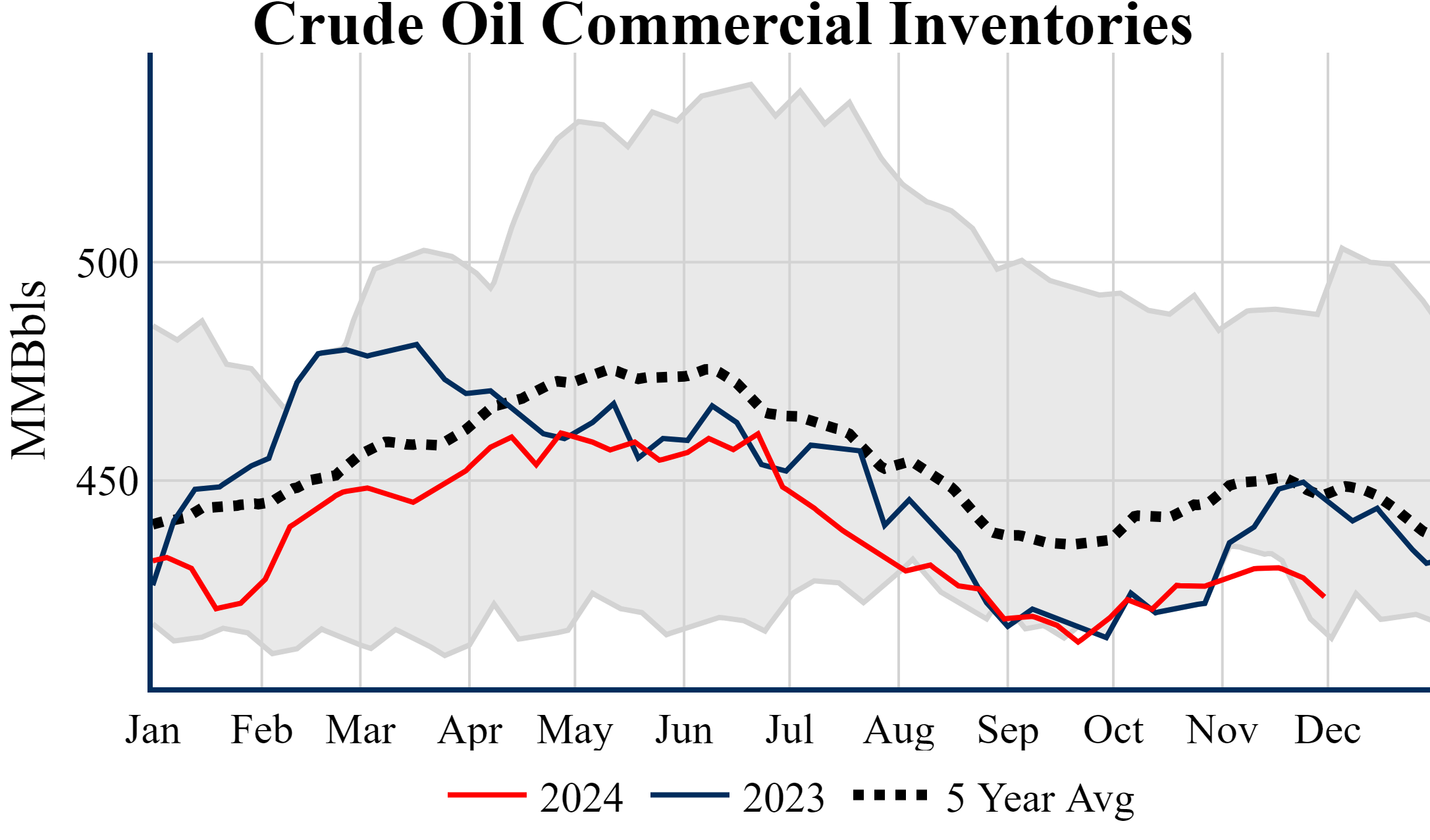 Inventories for the U.S. are now at a deficit of 22.30 MMBbls (-5.0%) to last year, and a deficit of 23.40 MMBbls (-5.2%) to the five-year average.