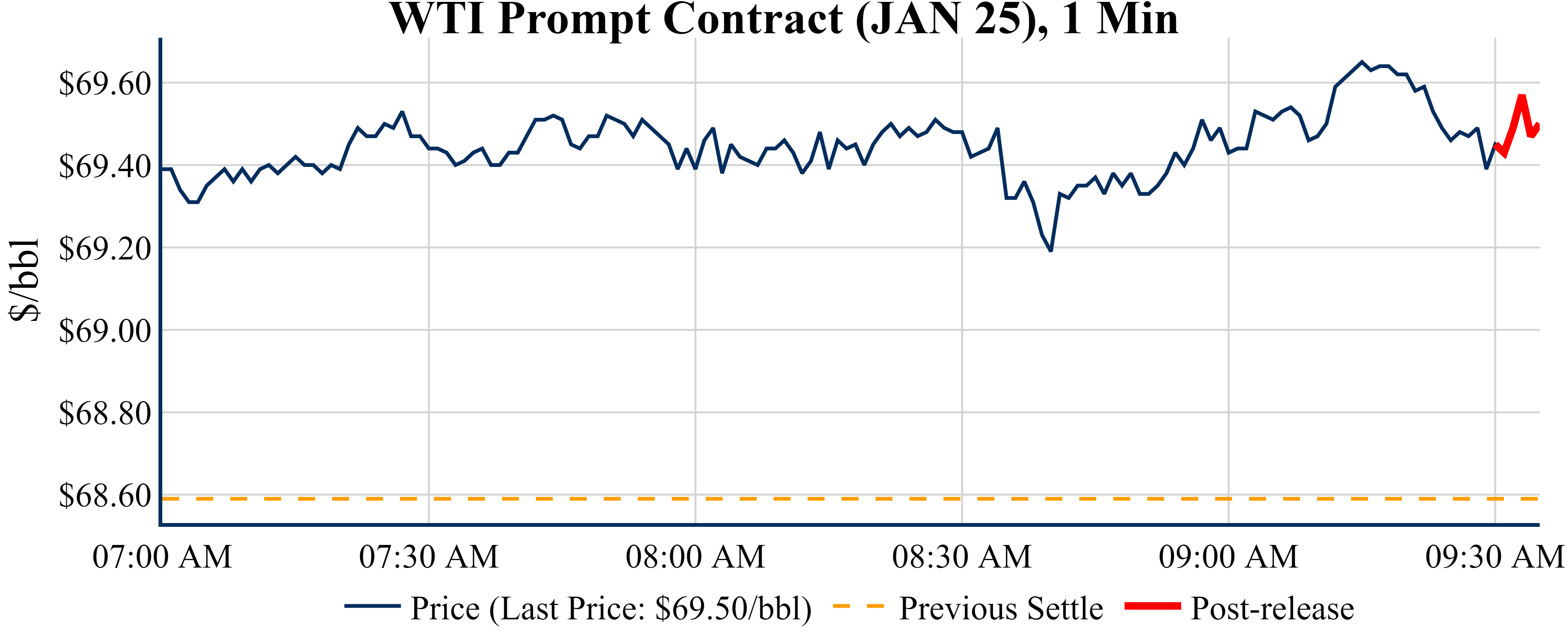 Prices were up in the five minutes following the announcement, to $69.50 from $69.45 just before 09:30 AM.