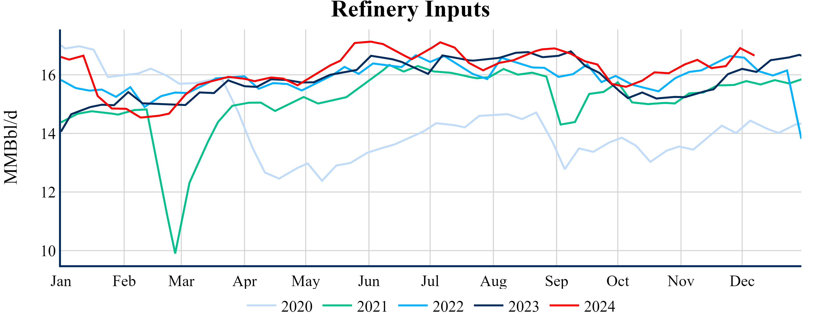 Inventories for the U.S. are now at a deficit of 19.40 MMBbls (-4.4%) to last year, and a deficit of 26.60 MMBbls (-5.9%) to the five-year average.