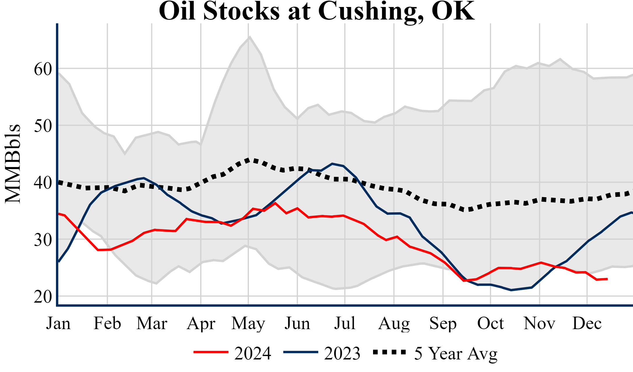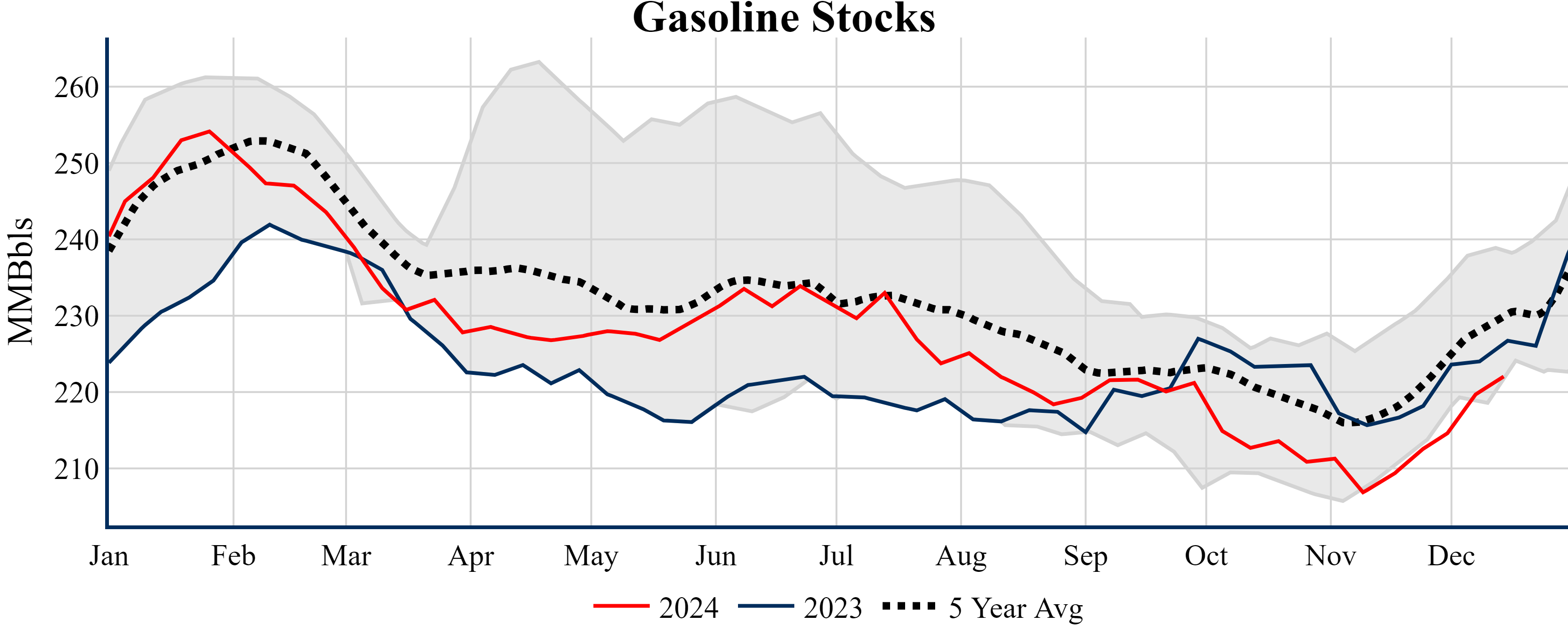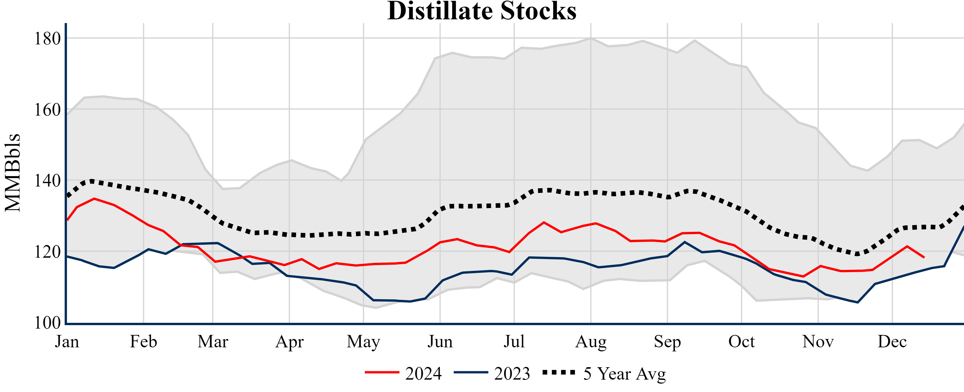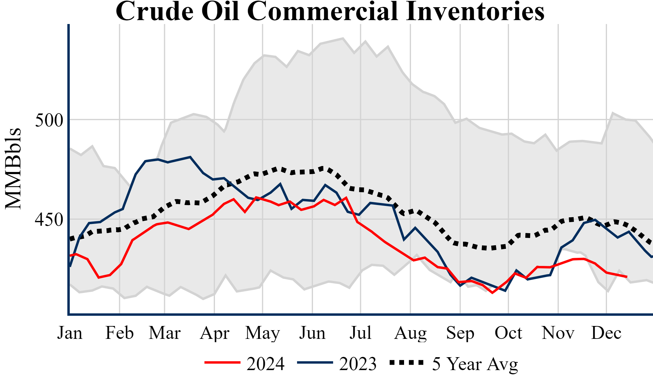 Inventories for the U.S. are now at a deficit of 22.30 MMBbls (-5.0%) to last year, and a deficit of 25.90 MMBbls (-5.8%) to the five-year average.