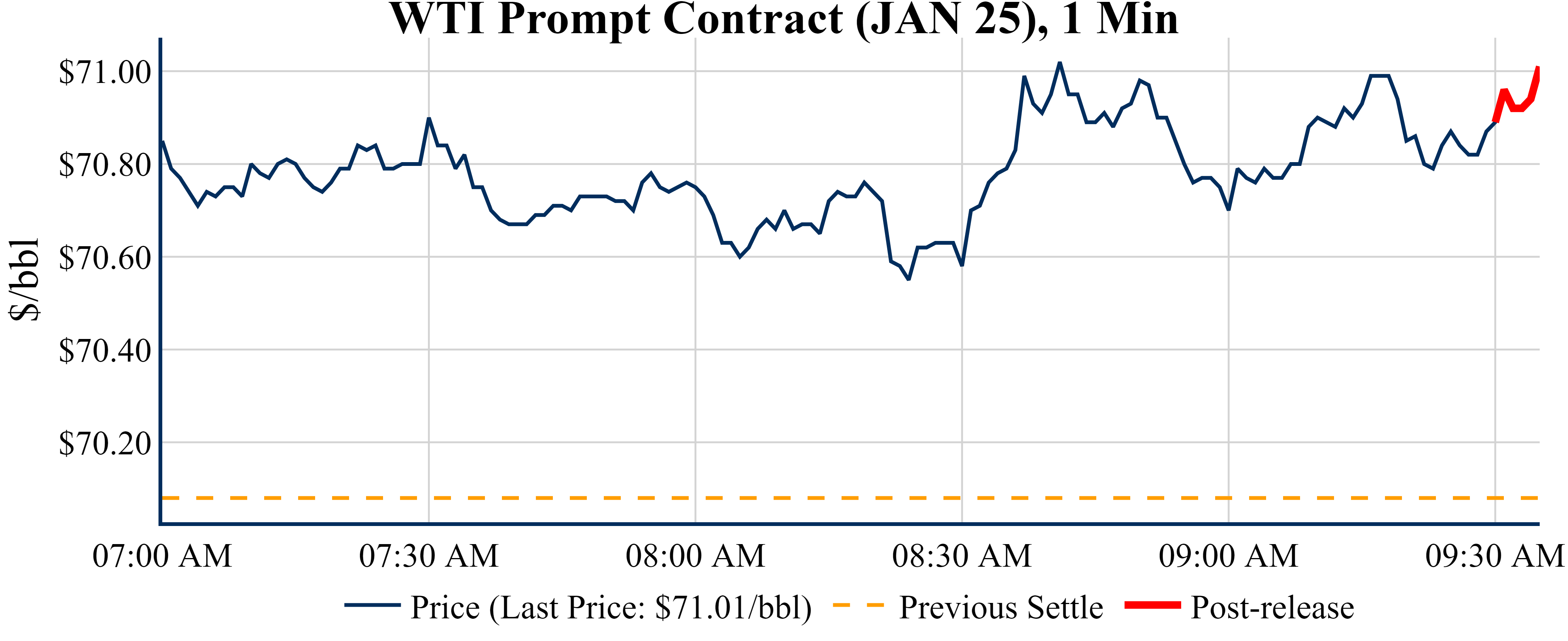 Prices were up in the five minutes following the announcement, to $71.01 from $70.89 just before 09:30 AM.