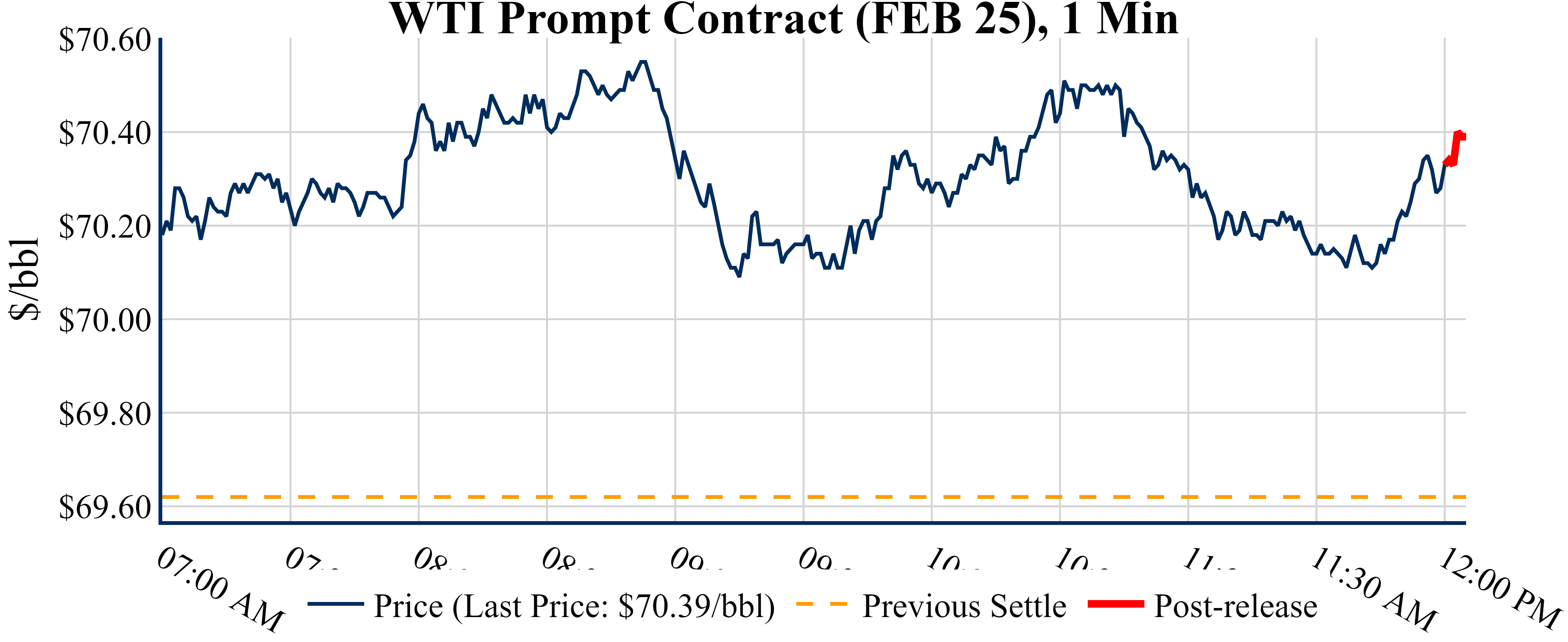 The EIA reported a draw of -4,237 MBbls in U.S. crude-oil inventories. The draw was larger than the average estimate of -600 as reported by Bloomberg. Prices were up in the five minutes following the announcement, to $70.39 from $70.33 just before 12:00 PM. Inventories for the U.S. are now at a deficit of 20.80 MMBbls (-4.8%) to last year, and a deficit of 26.30 MMBbls (-5.9%) to the five-year average.