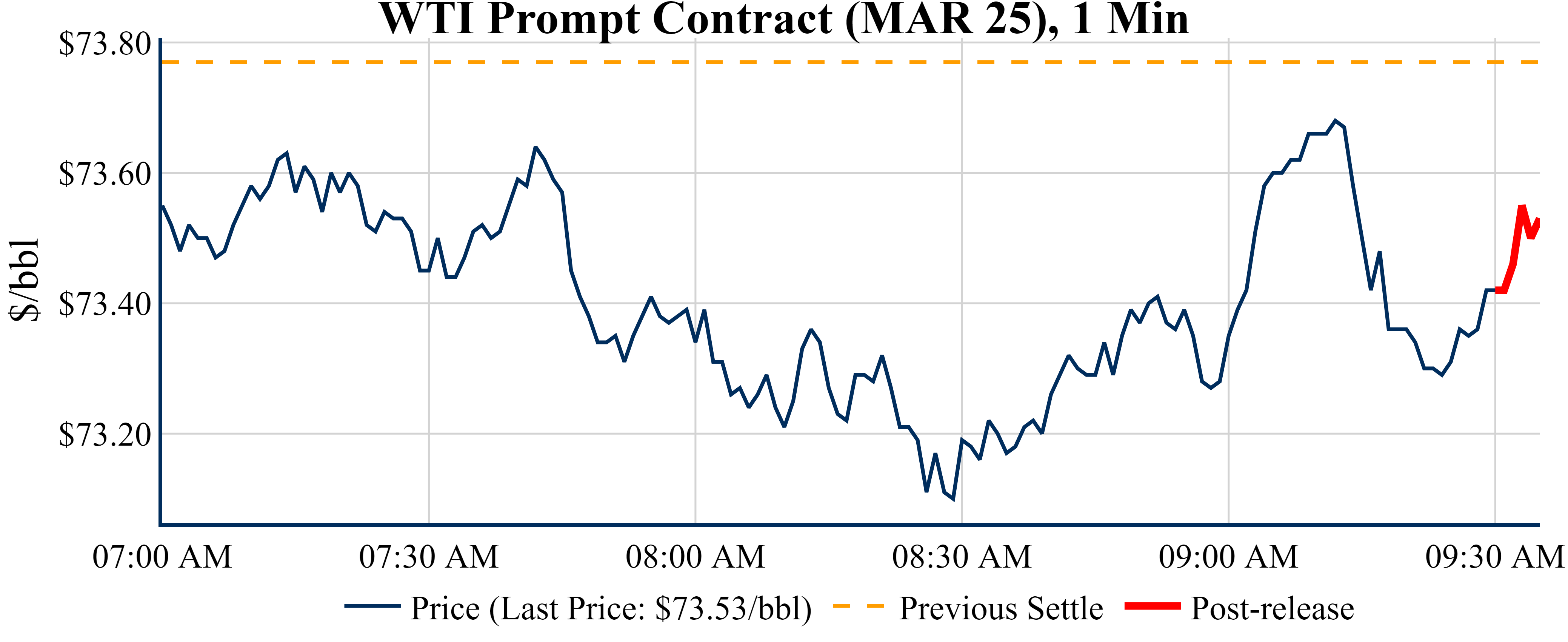 Prices were up in the five minutes following the announcement, to $73.53 from $73.42 just before 09:30 AM.