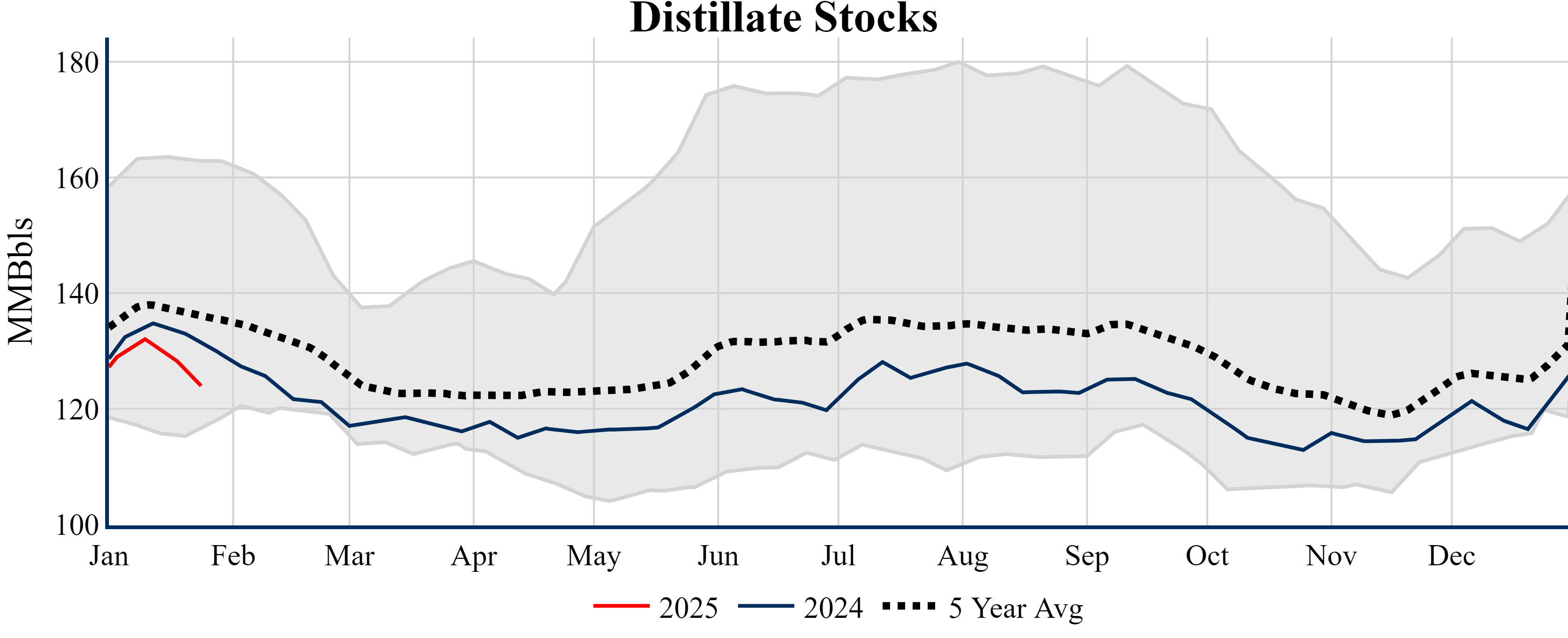 Inventories for the U.S. are now at a deficit of 6.40 MMBbls (-1.5%) to last year, and a deficit of 24.10 MMBbls (-5.5%) to the five-year average.