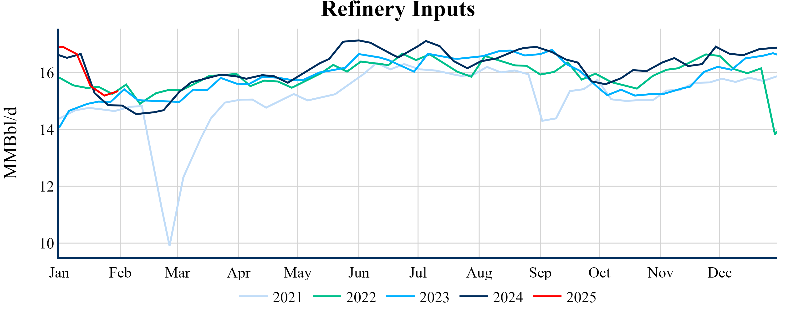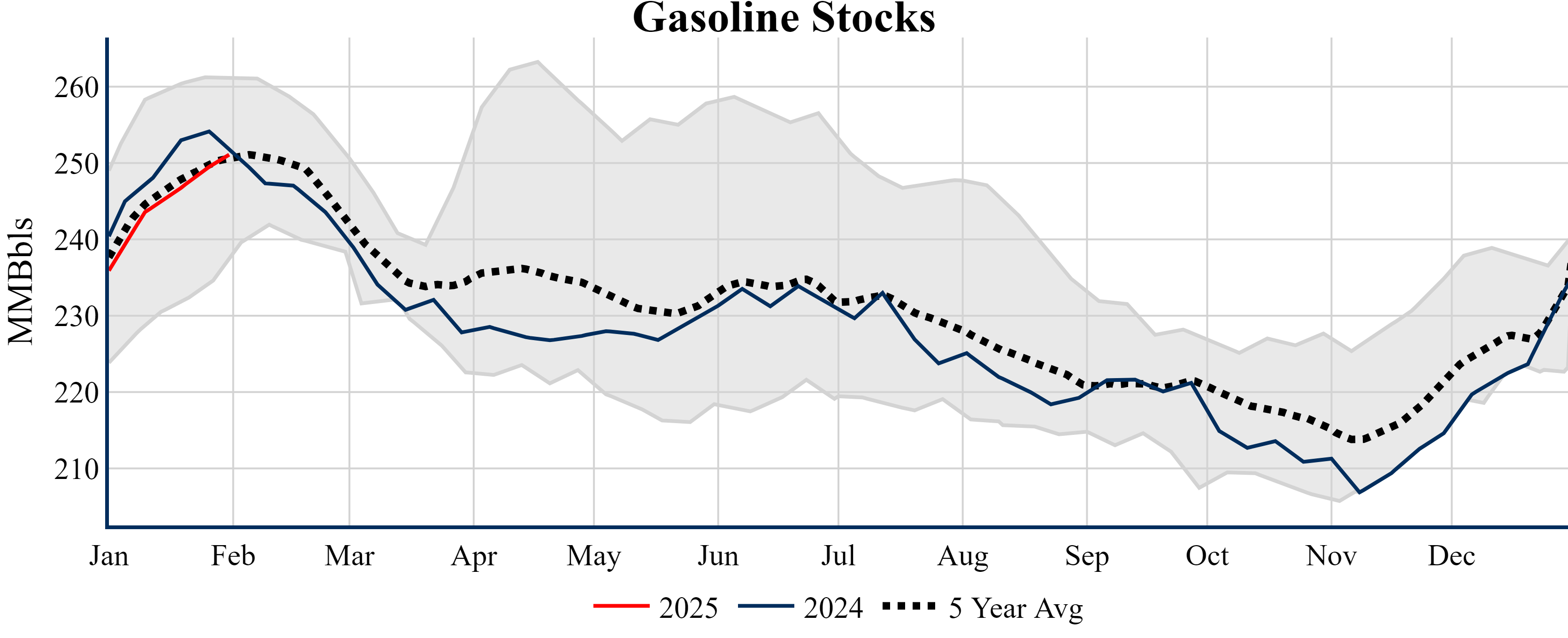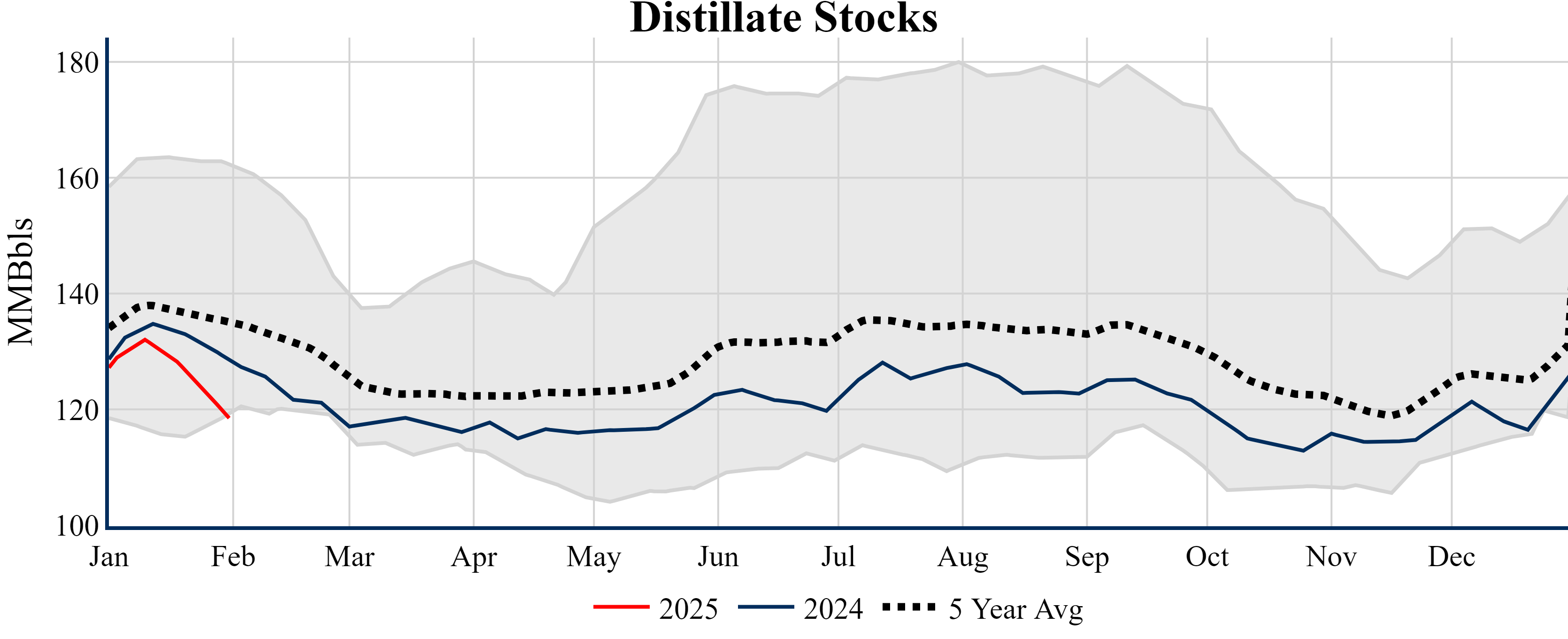 Inventories for the U.S. are now at a surplus of 2.10 MMBbls (-0.5%) to last year, and a deficit of 16.60 MMBbls (-3.8%) to the five-year average.
