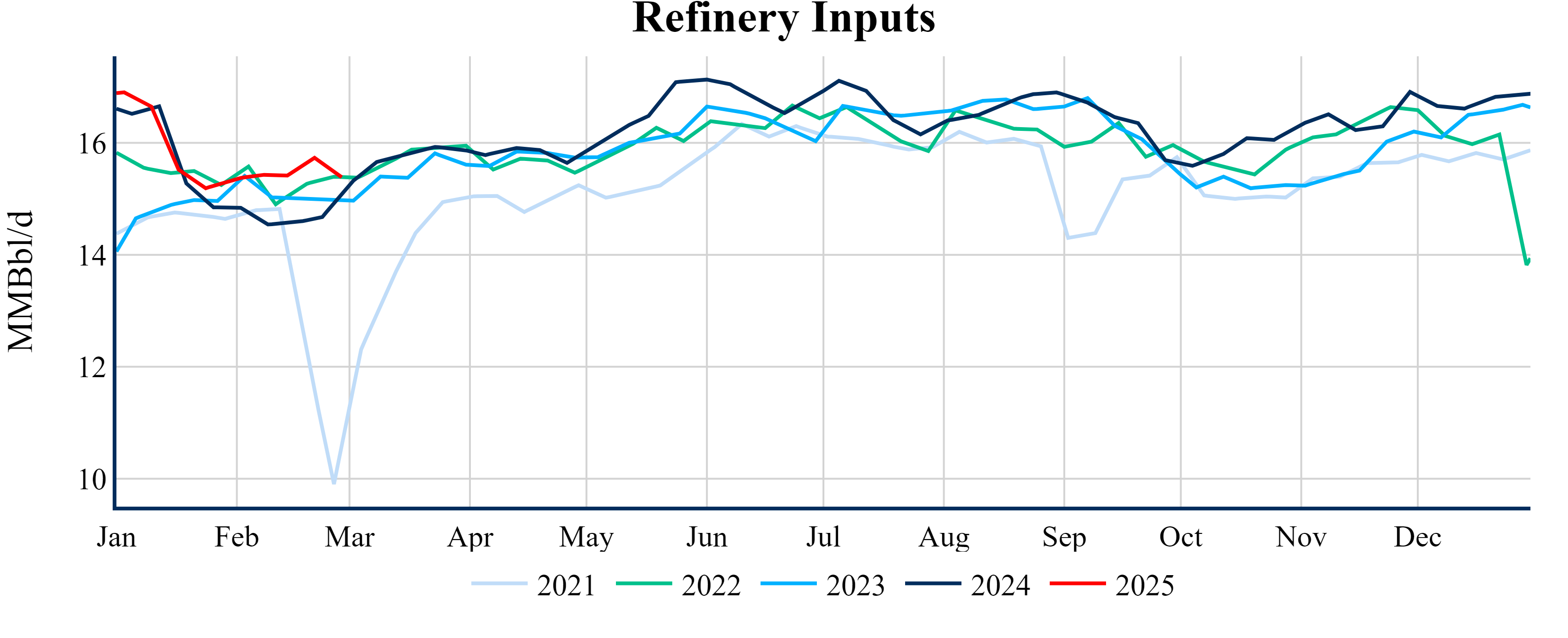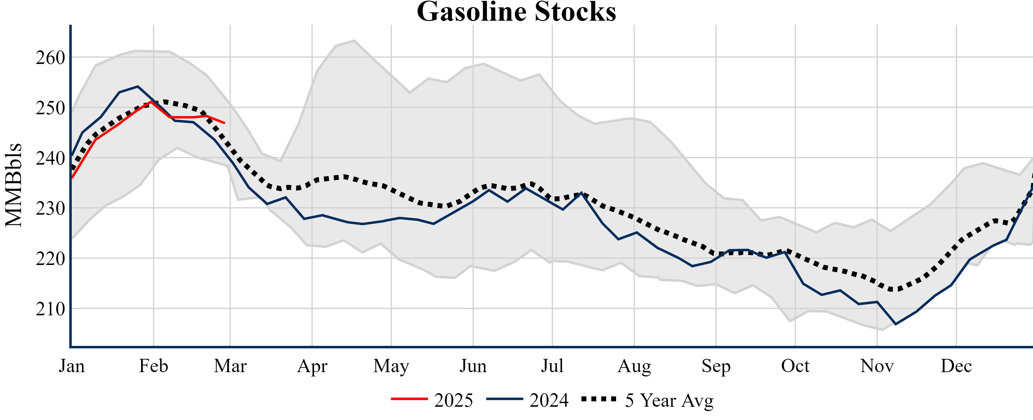 Inventories for the U.S. are now at a deficit of 14.40 MMBbls (-3.2%) to last year, and a deficit of 20.80 MMBbls (-4.6%) to the five-year average.