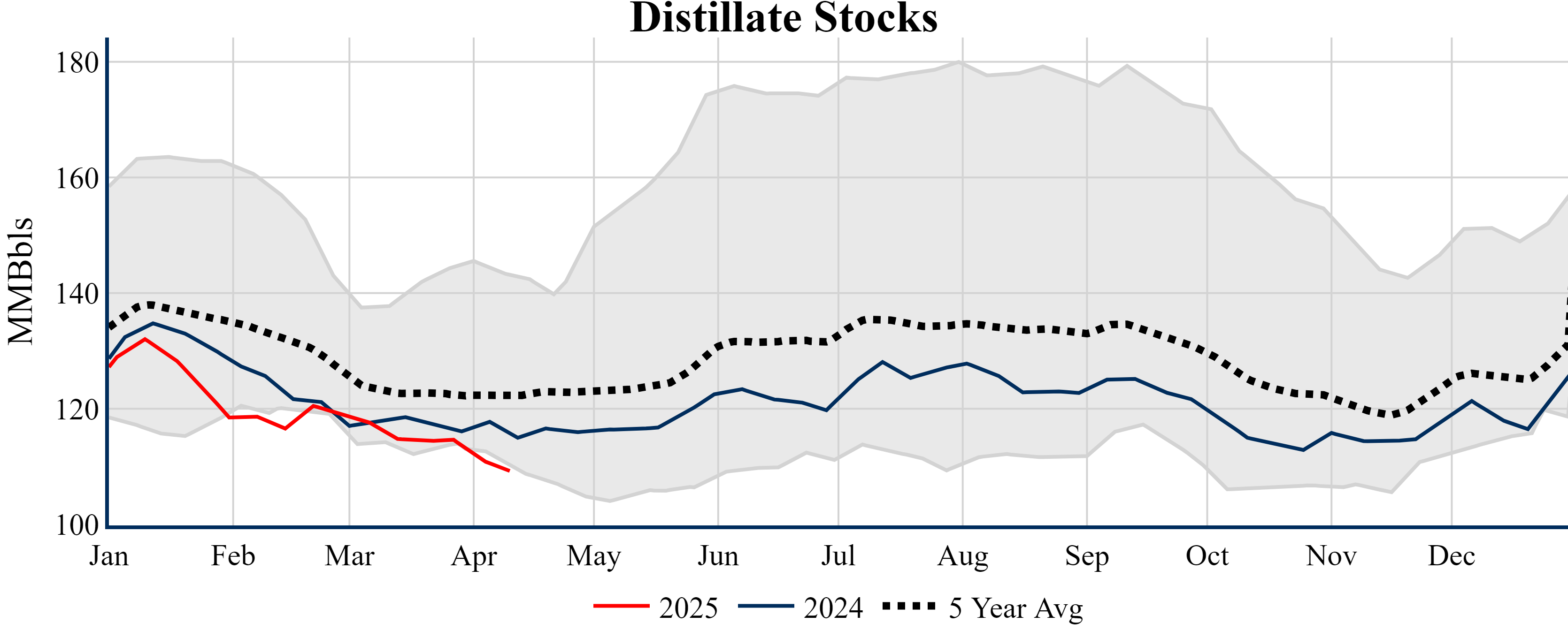 Inventories for the U.S. are now at a deficit of 16.40 MMBbls (-3.6%) to last year, and a deficit of 25.50 MMBbls (-5.4%) to the five-year average.