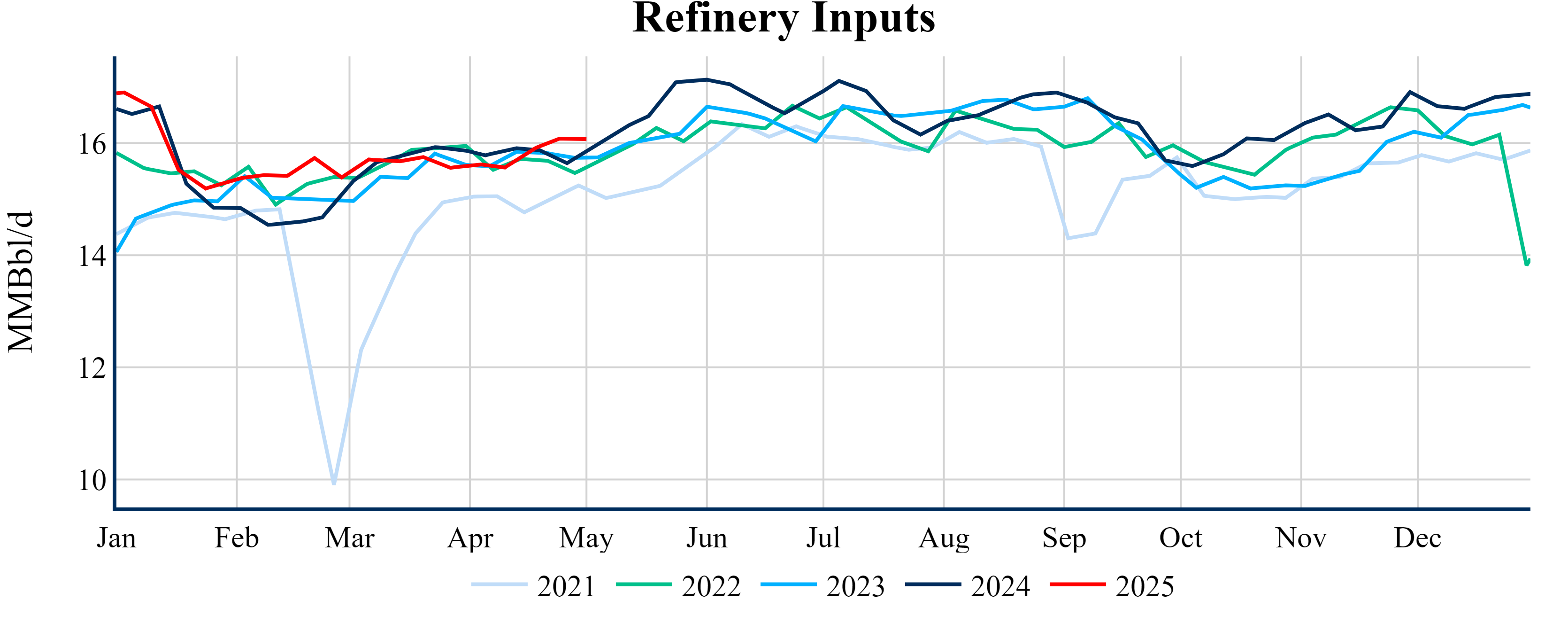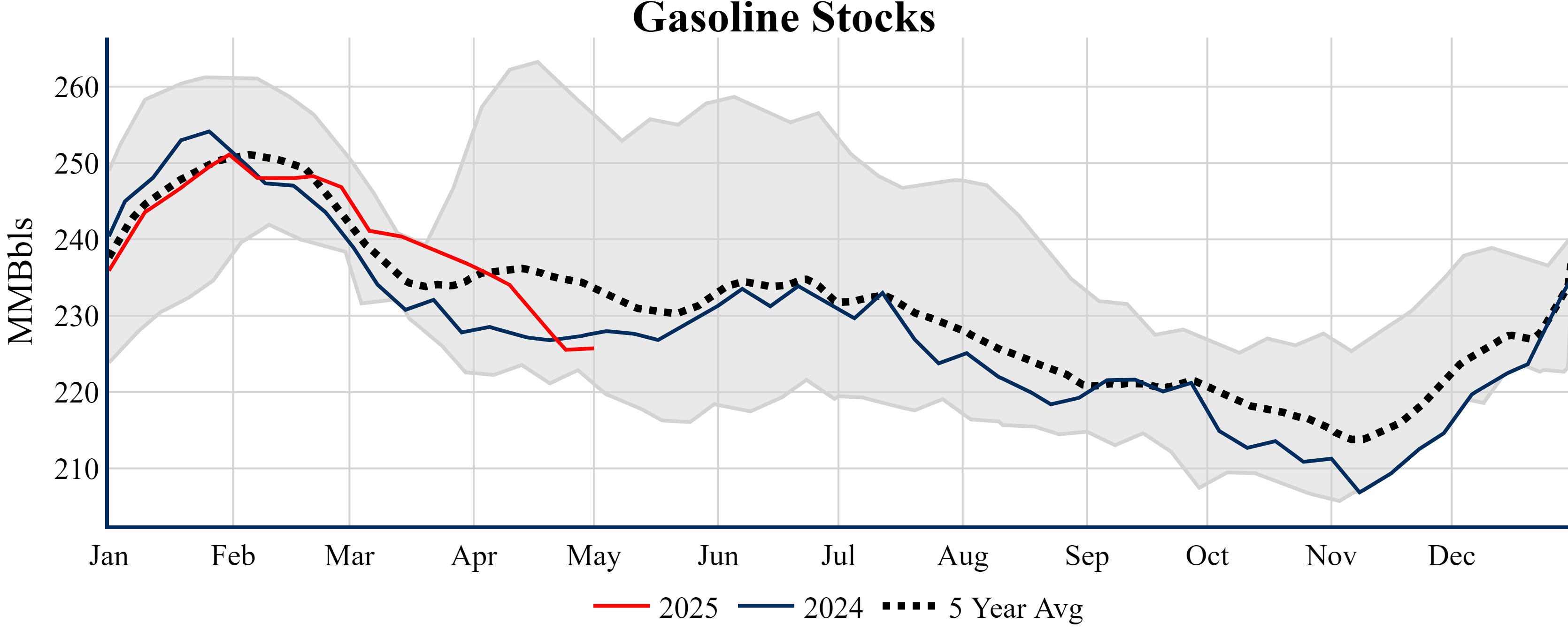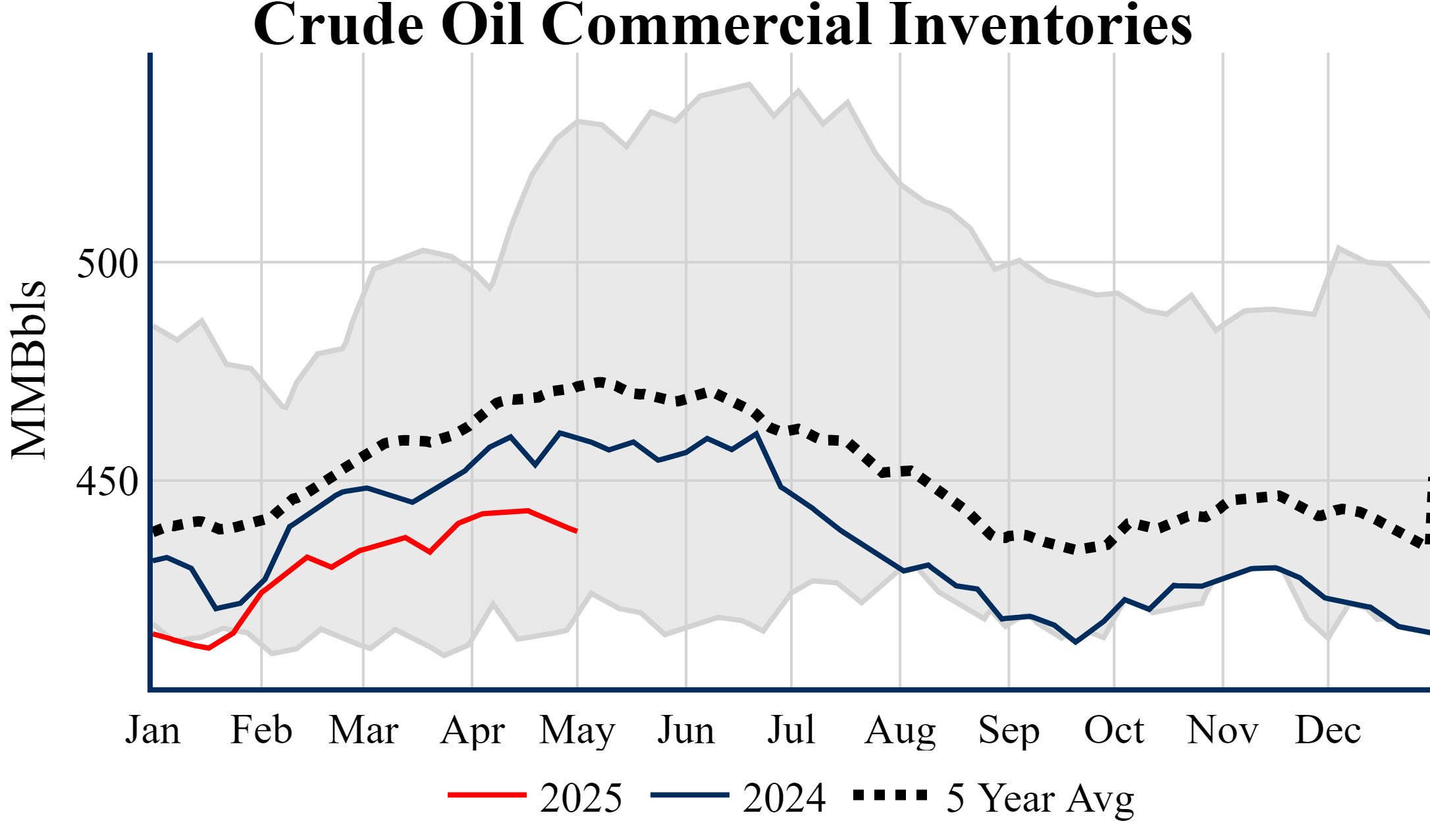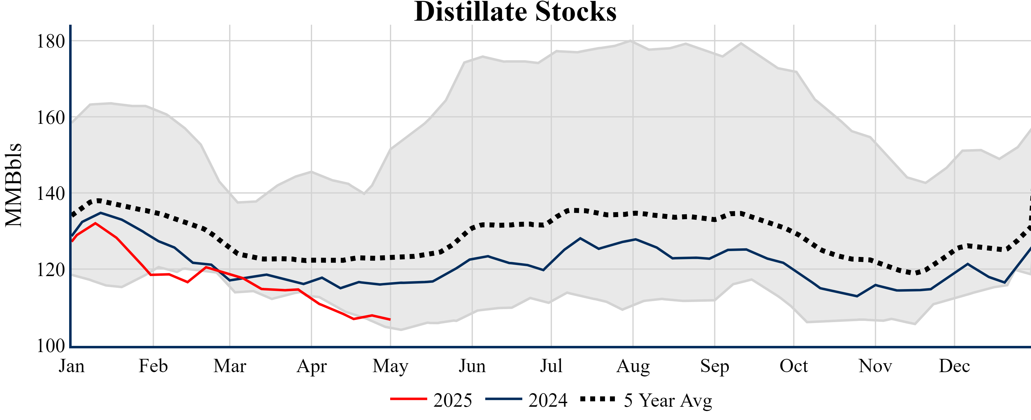 Inventories for the U.S. are now at a deficit of 21.50 MMBbls (-4.7%) to last year, and a deficit of 33.20 MMBbls (-7.0%) to the five-year average.