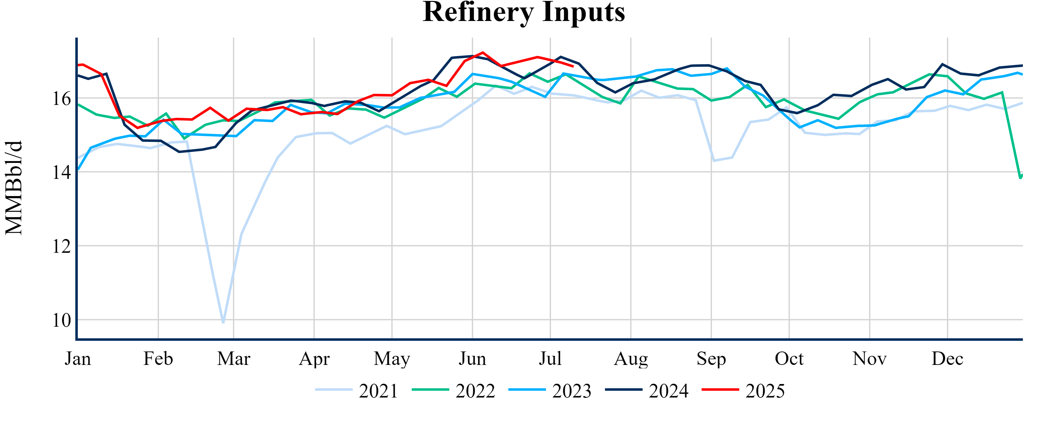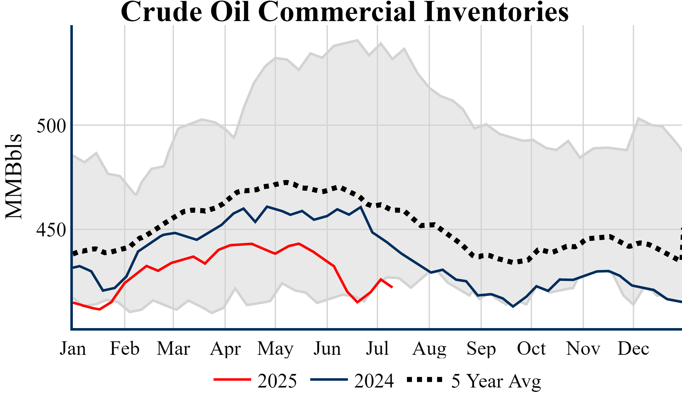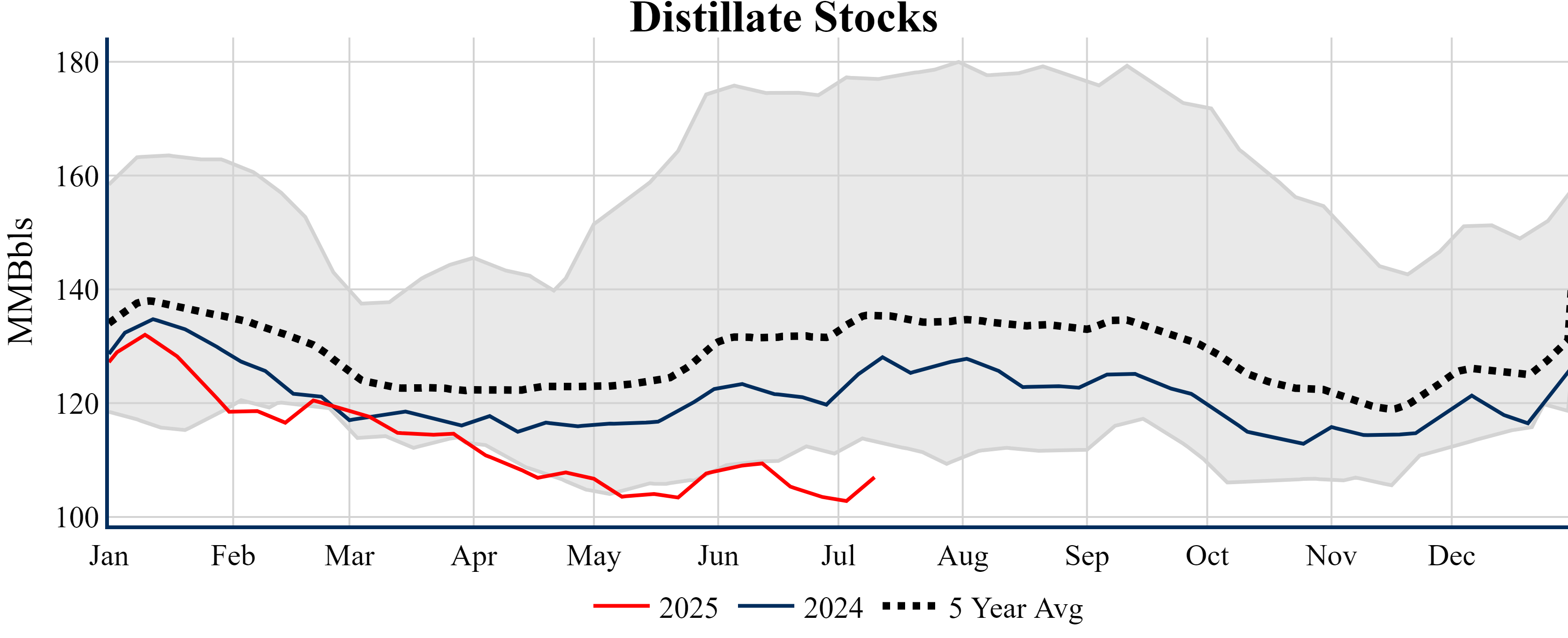 Inventories for the U.S. are now at a deficit of 19.50 MMBbls (-4.4%) to last year, and a deficit of 37.10 MMBbls (-8.1%) to the five-year average.