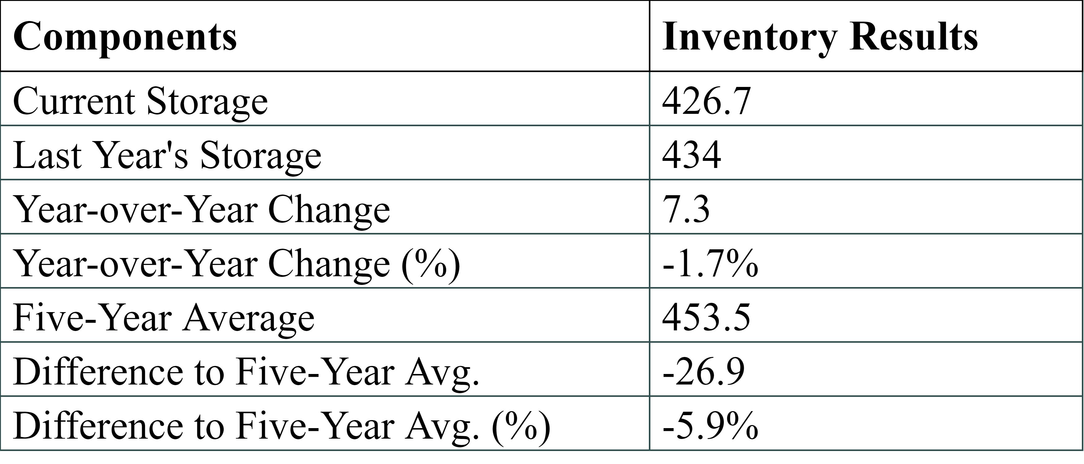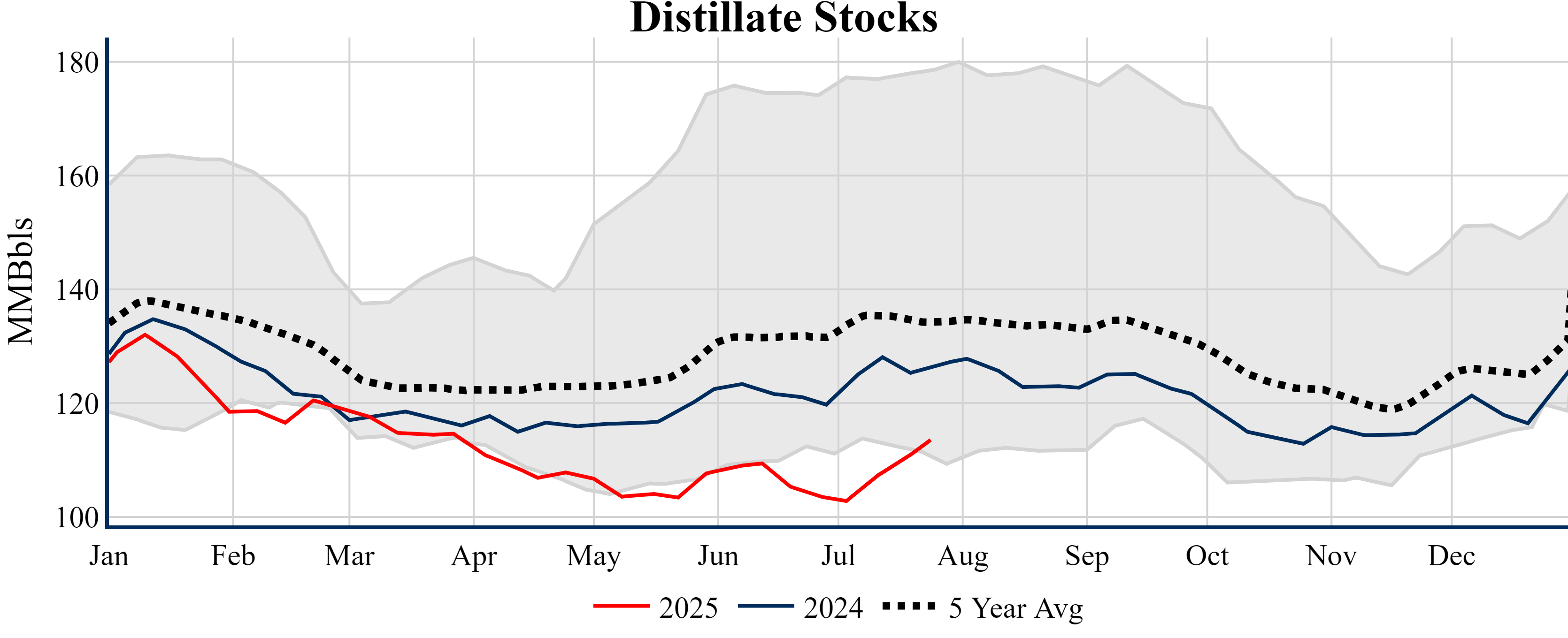 Inventories for the U.S. are now at a deficit of 7.30 MMBbls (-1.7%) to last year, and a deficit of 26.90 MMBbls (-5.9%) to the five-year average.