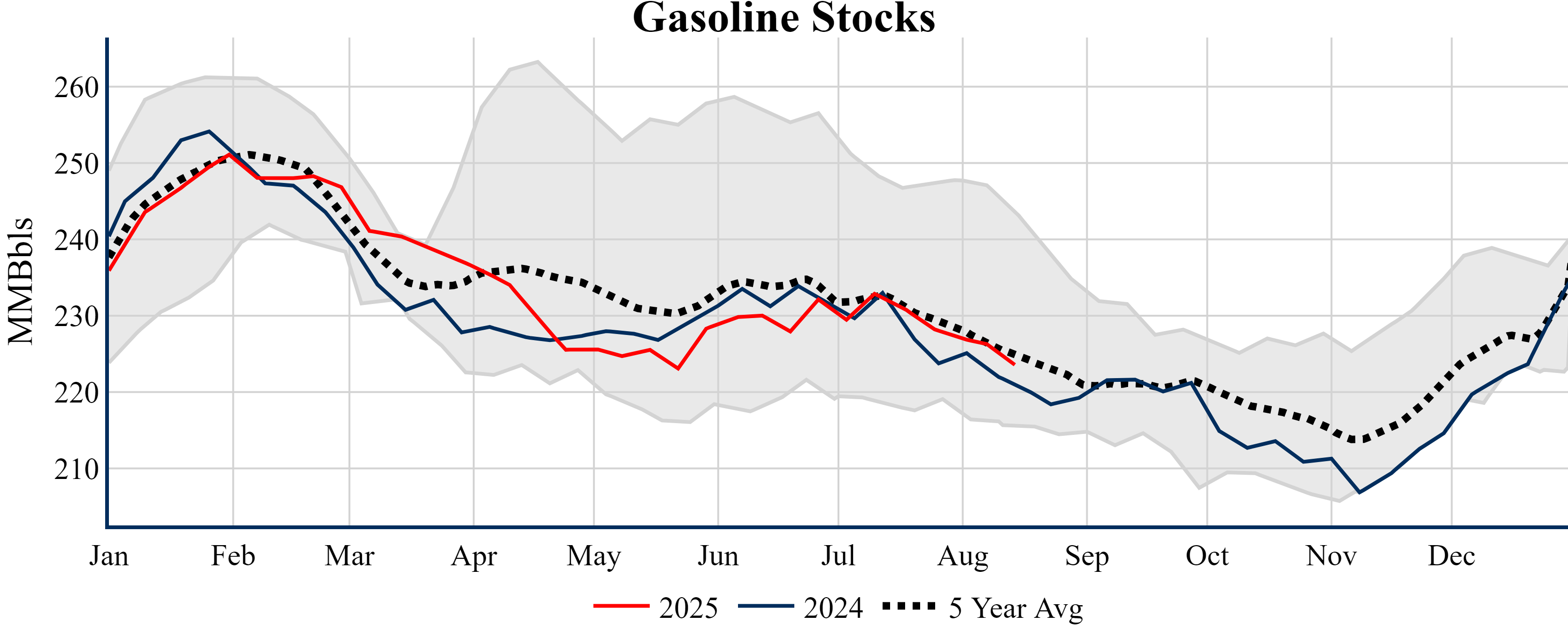 Inventories for the U.S. are now at a deficit of 6.70 MMBbls (-1.6%) to last year, and a deficit of 26.20 MMBbls (-5.9%) to the five-year average.