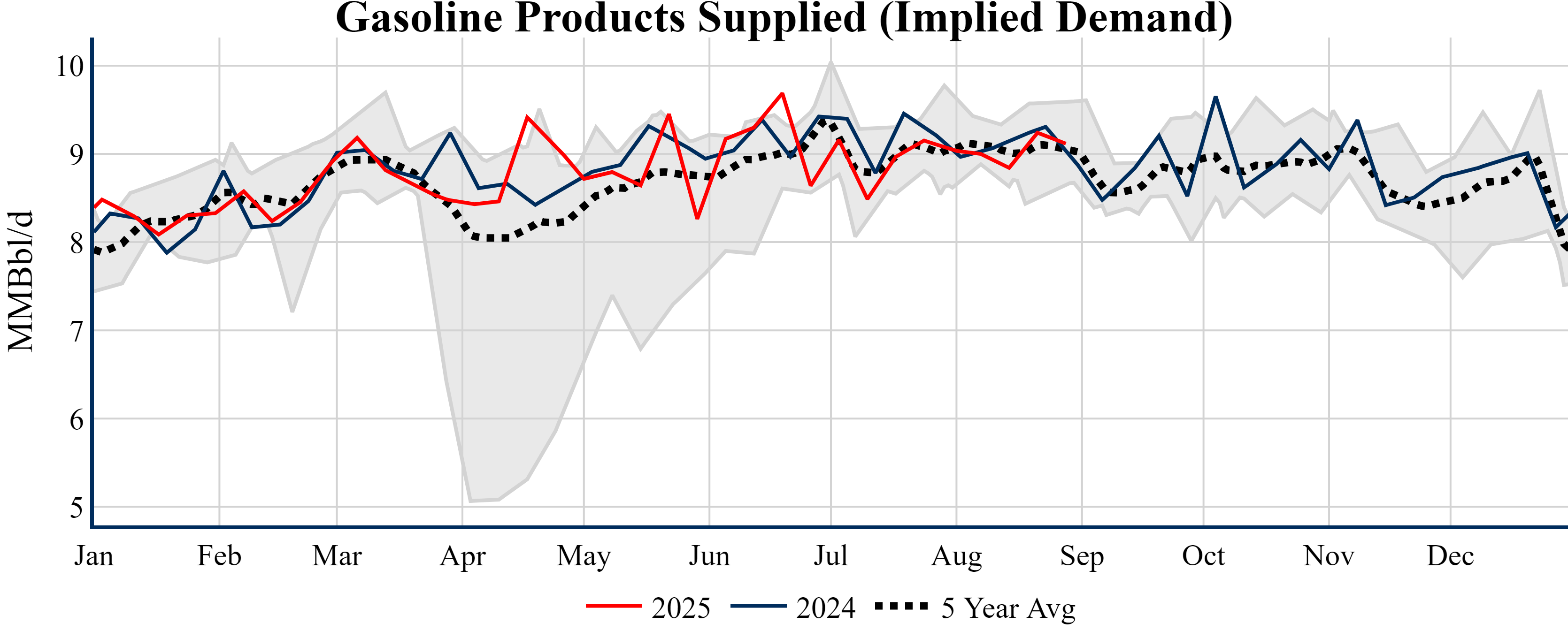 Inventories for the U.S. are now at a deficit of 0.40 MMBbls (-0.1%) to last year, and a deficit of 16.30 MMBbls (-3.7%) to the five-year average.