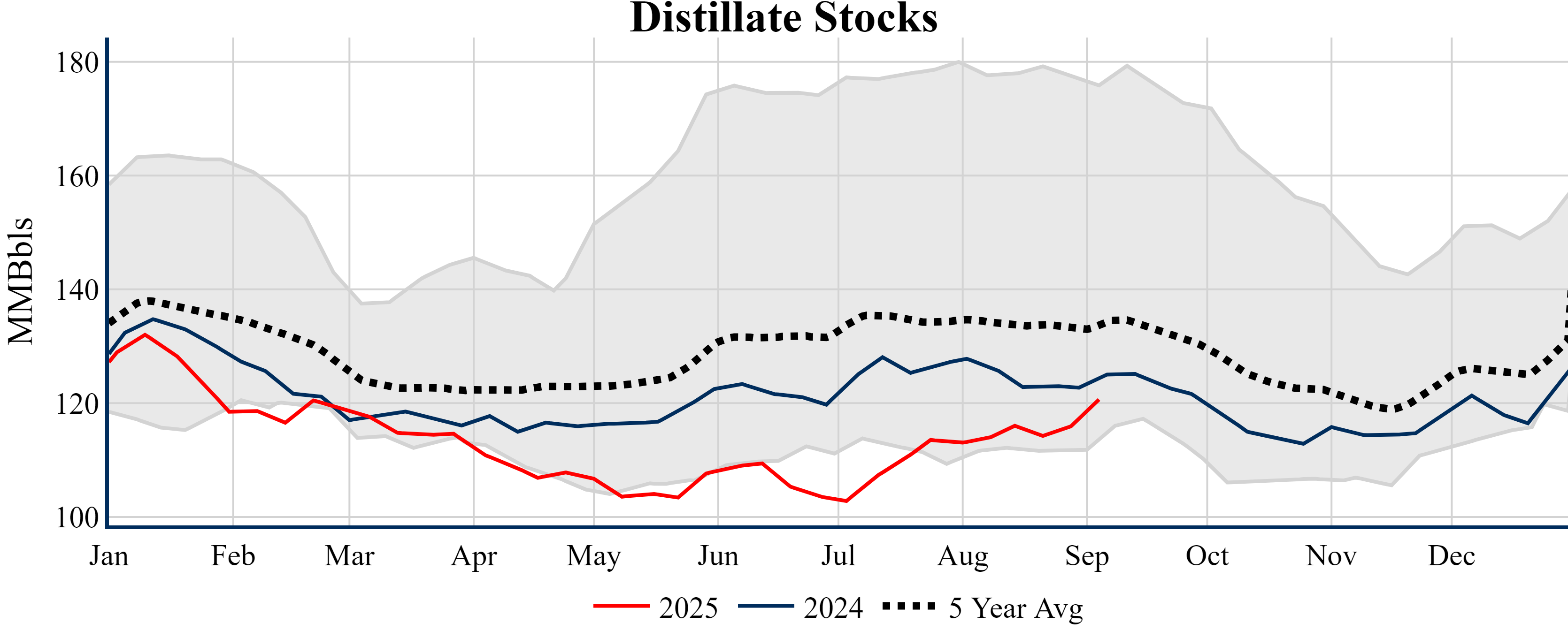 Inventories for the U.S. are now at a deficit of 5.70 MMBbls (-1.4%) to last year, and a deficit of 13.10 MMBbls (-3.0%) to the five-year average.